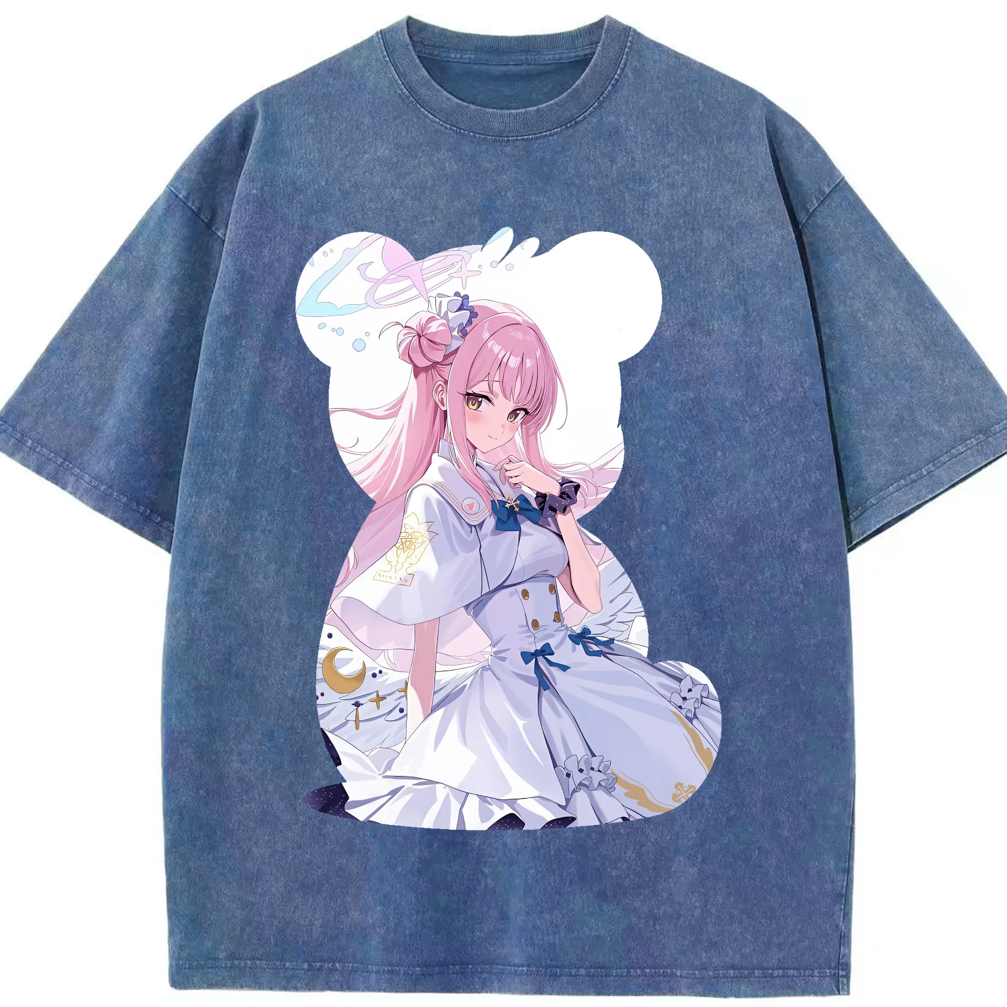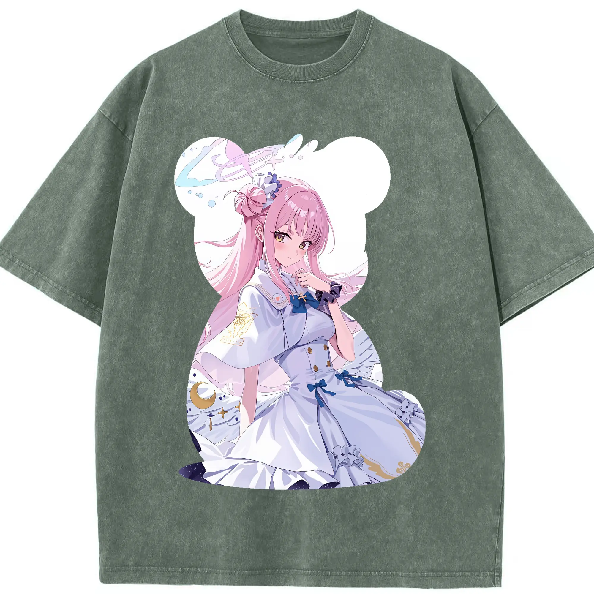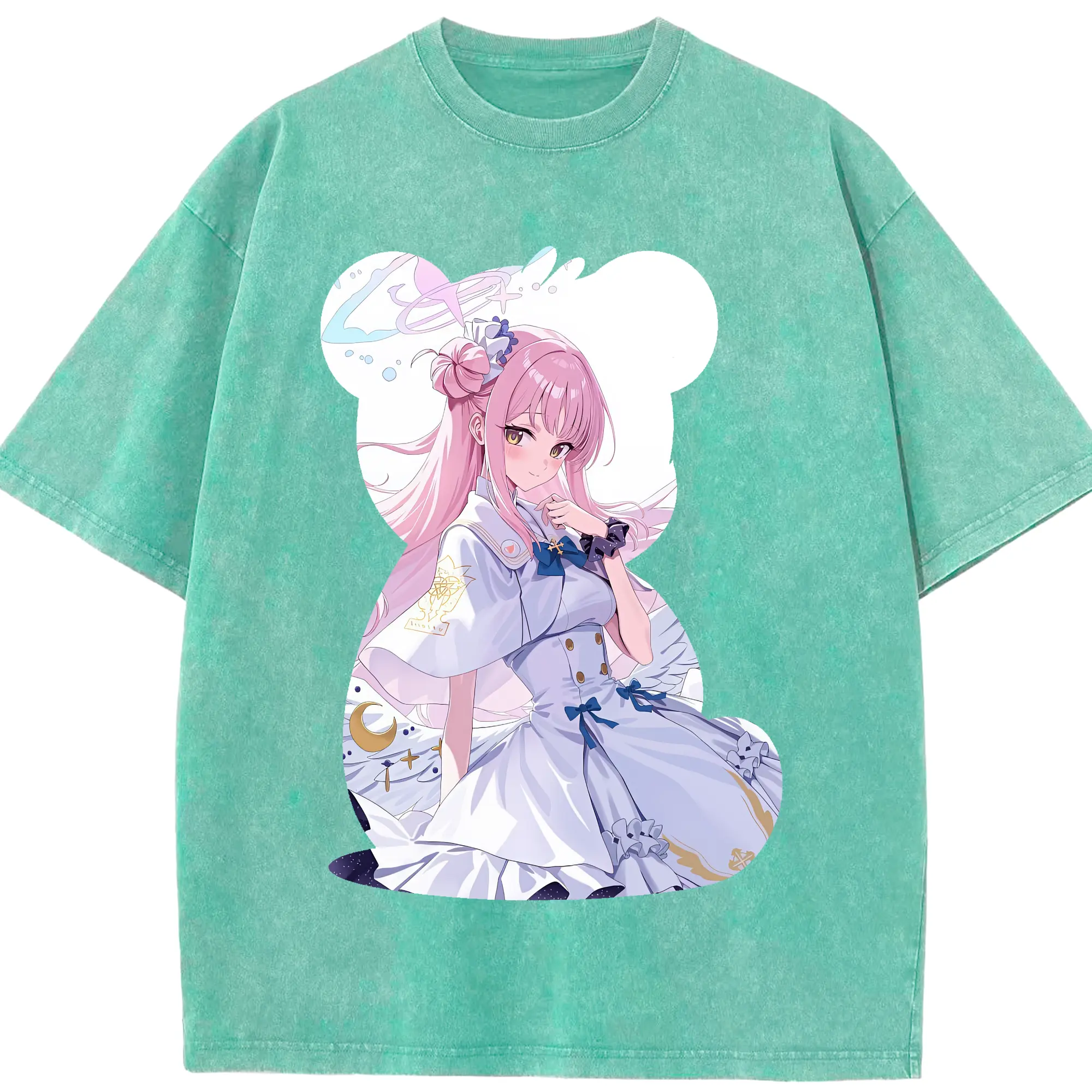 ブルーアーカイブ グッズ 聖園ミカ - 綿100% ヴィンテージ風 半袖Tシャツ ・ 背面プリント ・ 柔らか肌触り ・ 通気性 快適 ・ スポーツ カジュアル 外出用