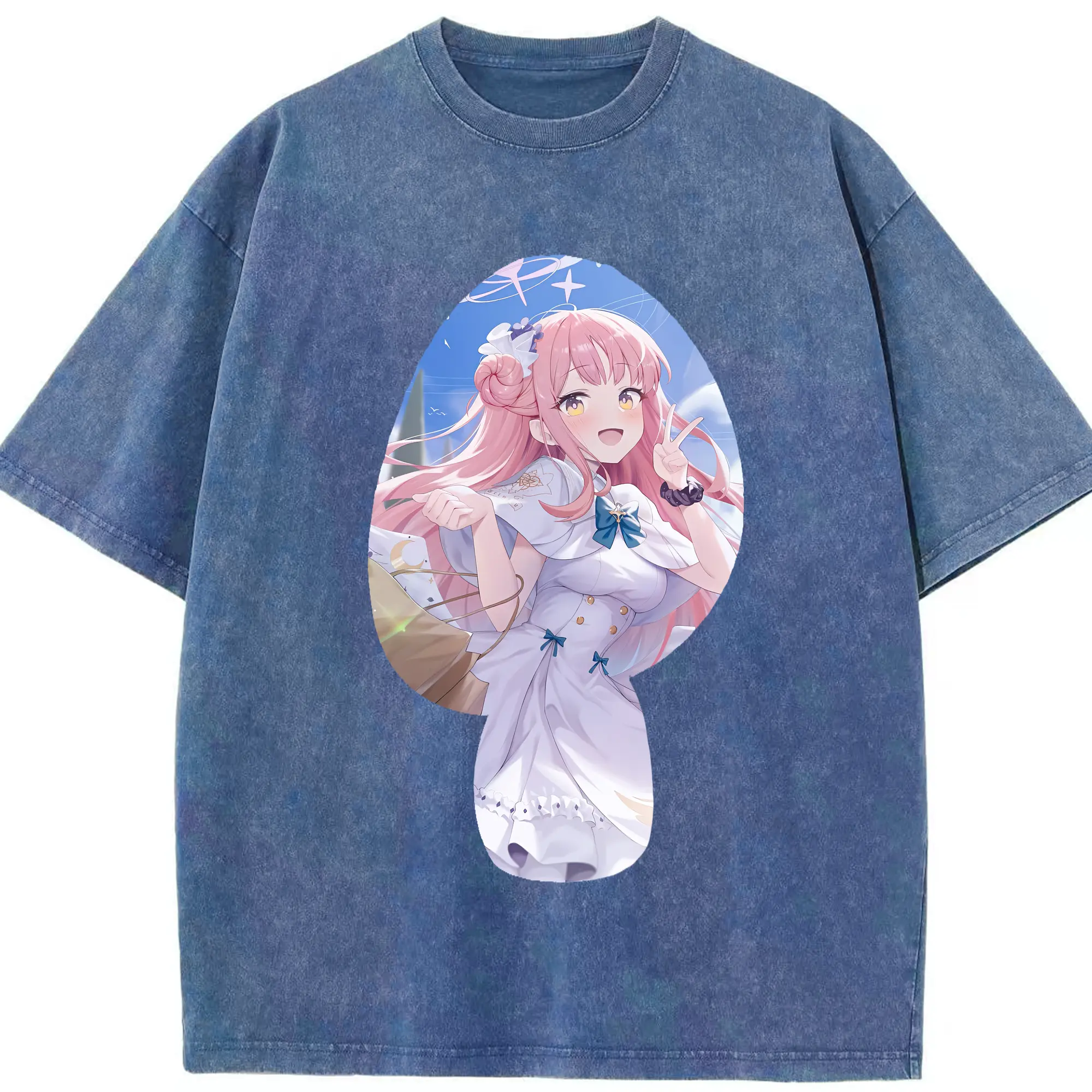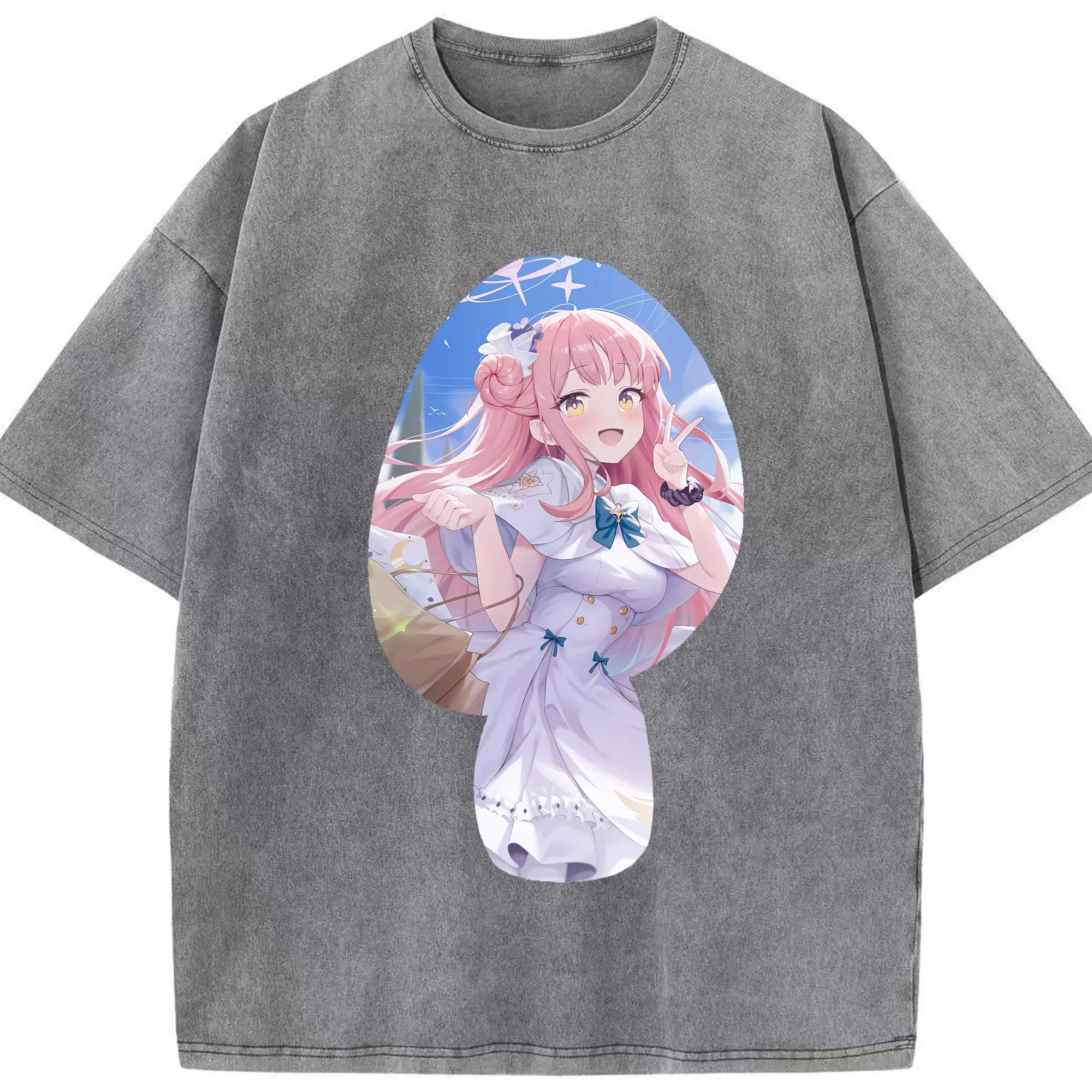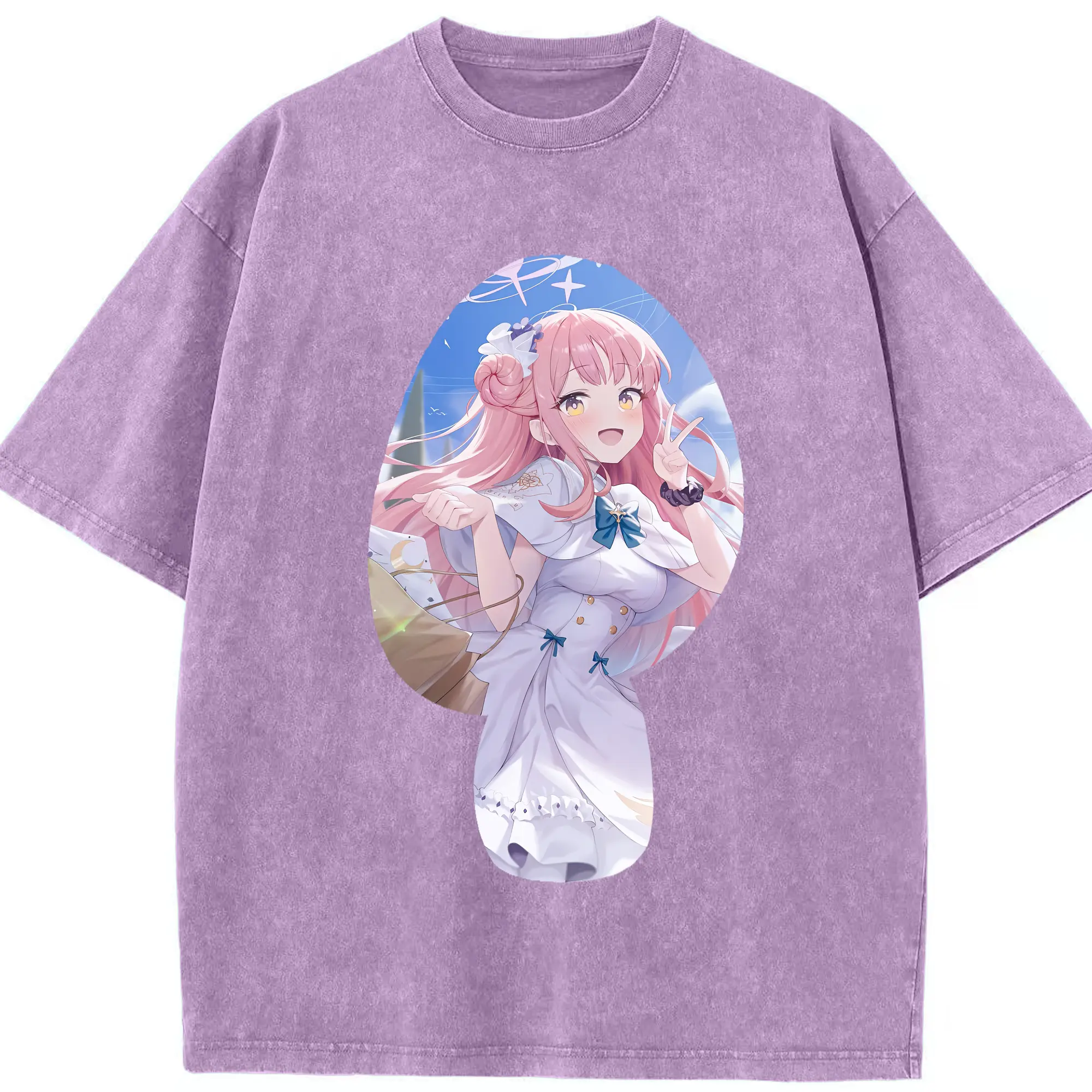 ブルーアーカイブ グッズ 聖園ミカ - 綿100% ヴィンテージ風 半袖Tシャツ ・ 背面プリント ・ 柔らか肌触り ・ 通気性 快適 ・ スポーツ カジュアル 外出用