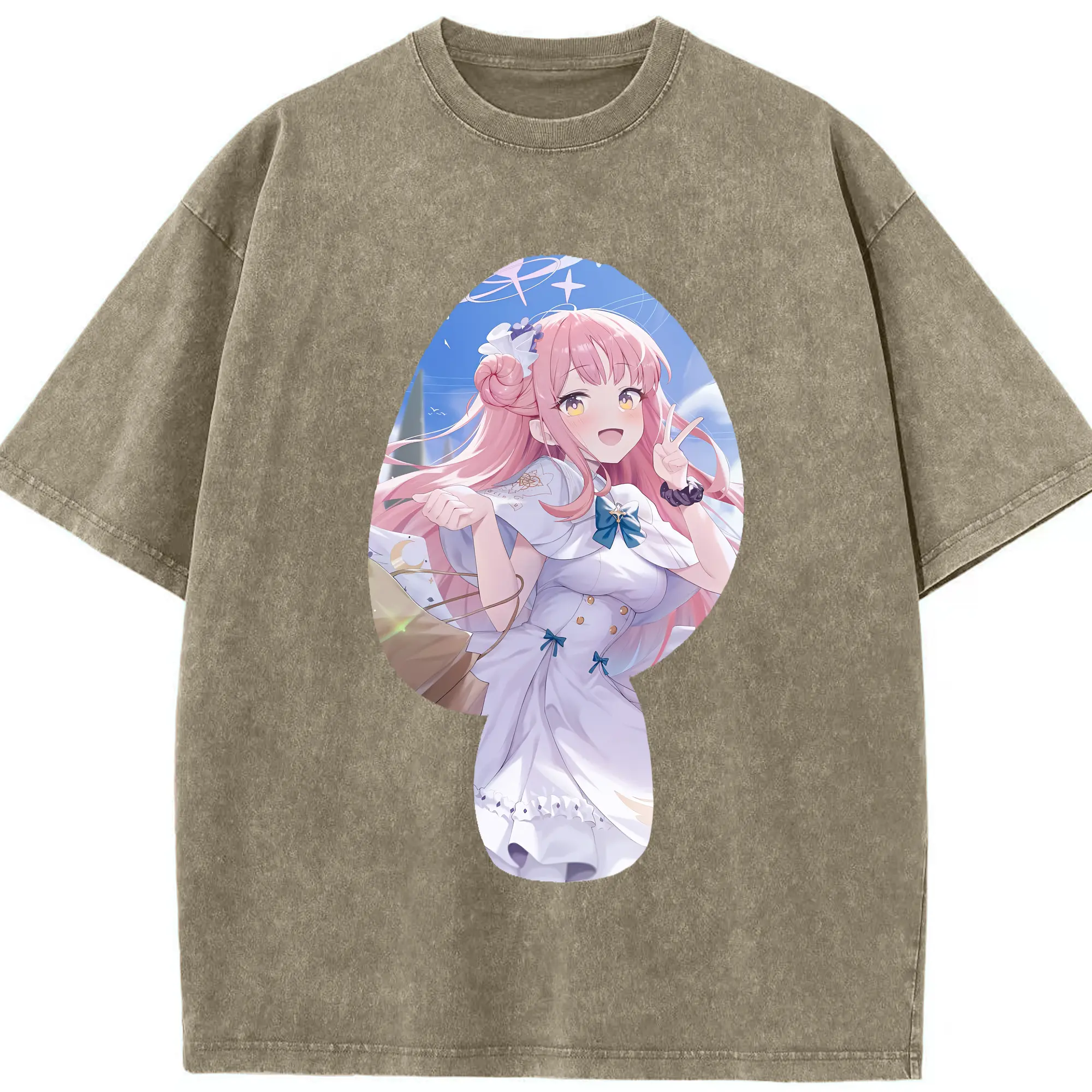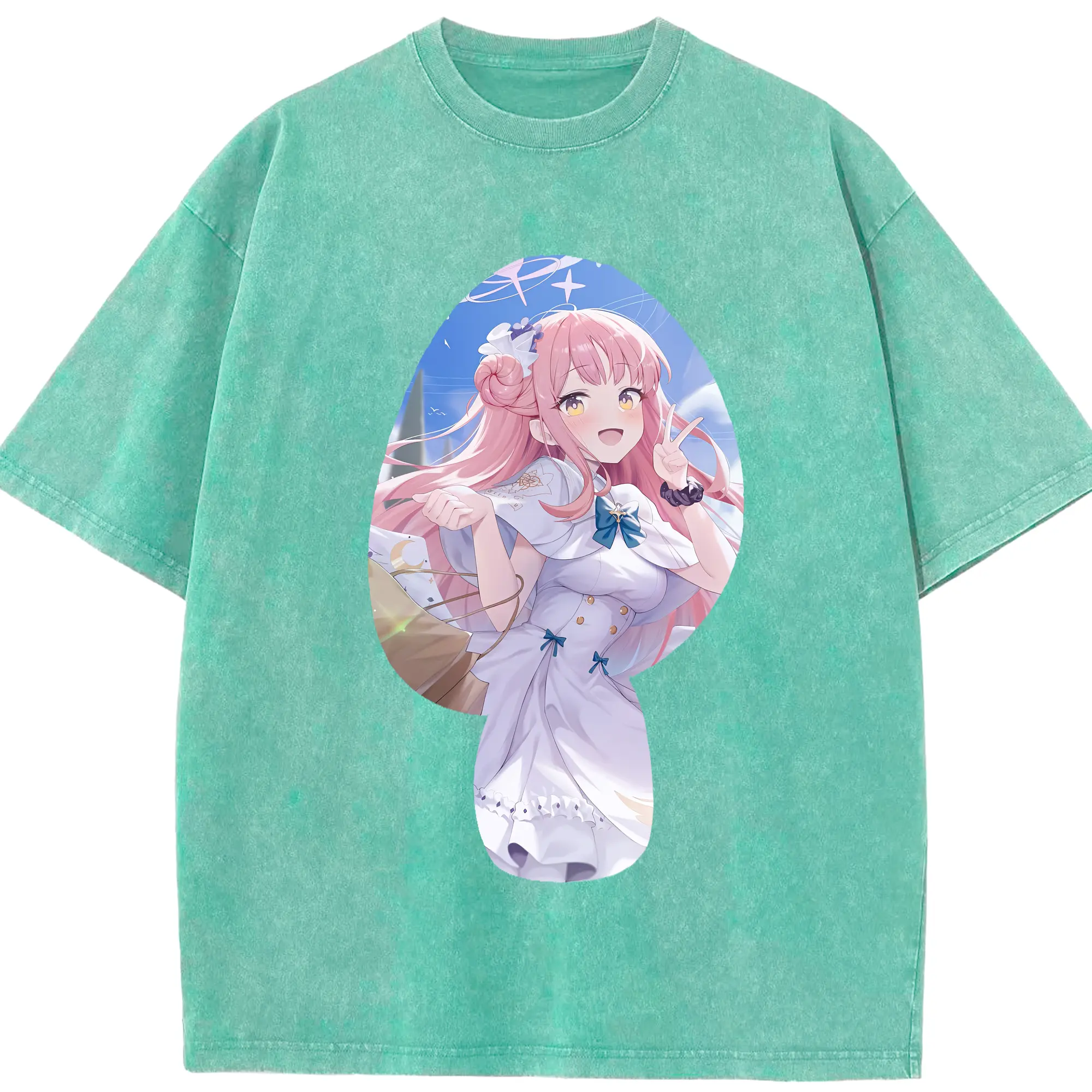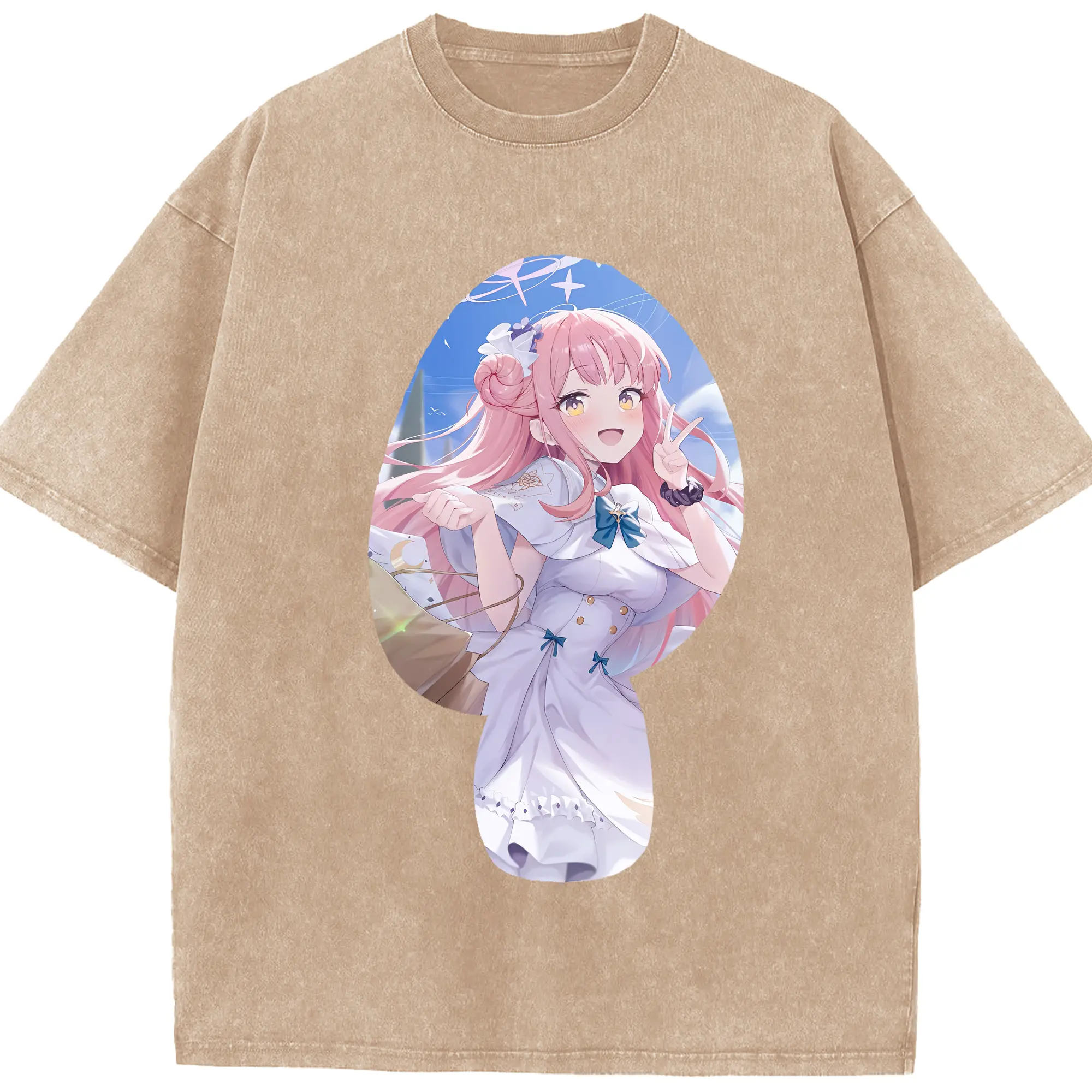 ブルーアーカイブ グッズ 聖園ミカ - 綿100% ヴィンテージ風 半袖Tシャツ ・ 背面プリント ・ 柔らか肌触り ・ 通気性 快適 ・ スポーツ カジュアル 外出用