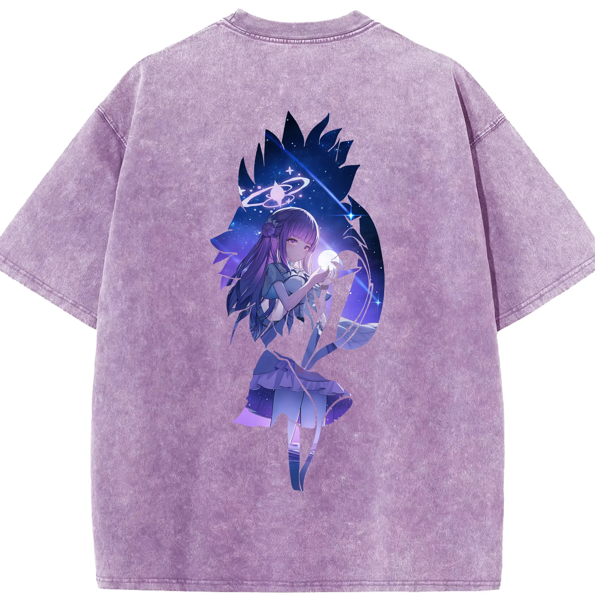鳴潮 グッズ カンタレラ - 綿100% ヴィンテージ風 半袖Tシャツ ・ 背面プリント ・ 柔らか肌触り ・ 通気性 快適 ・ スポーツ カジュアル 外出用