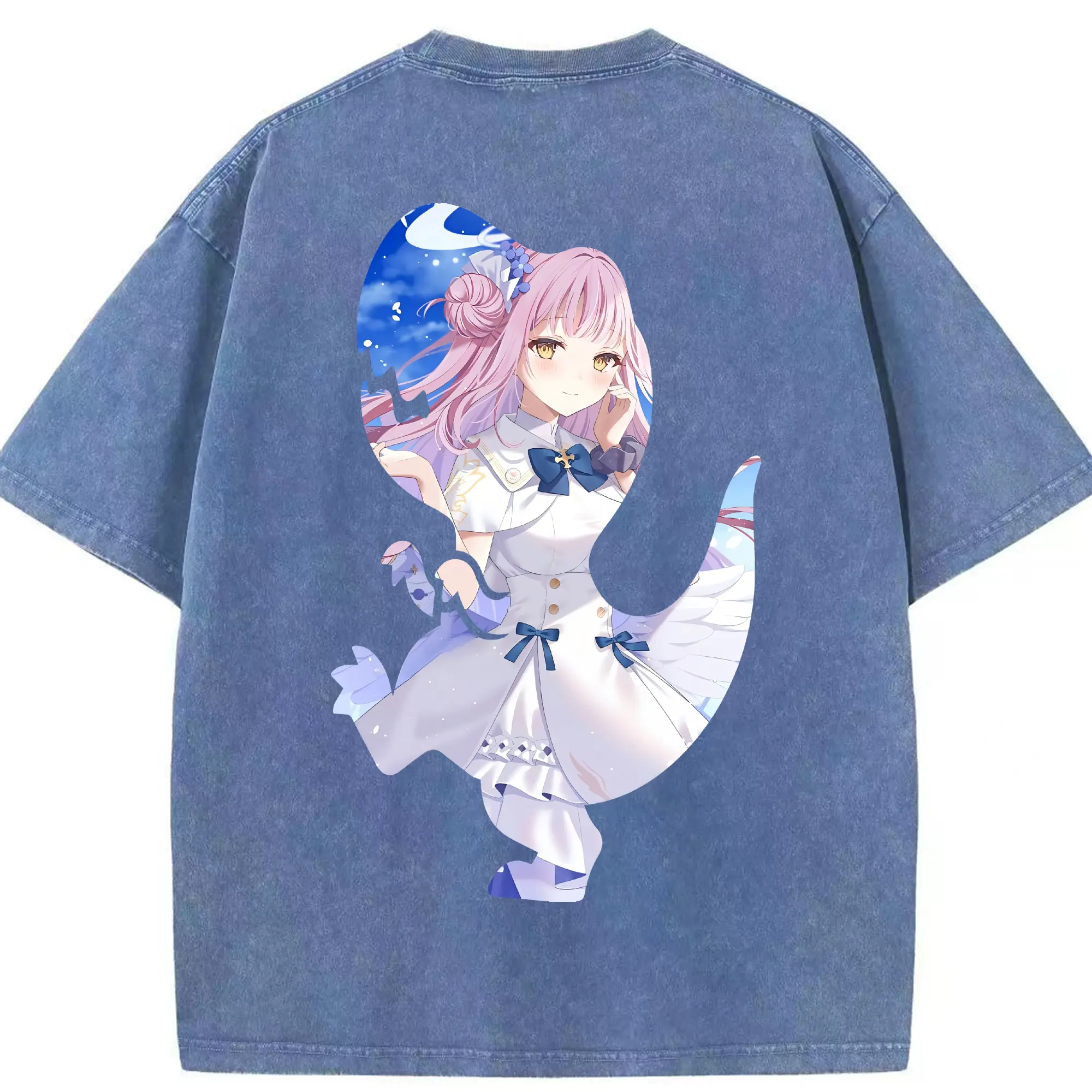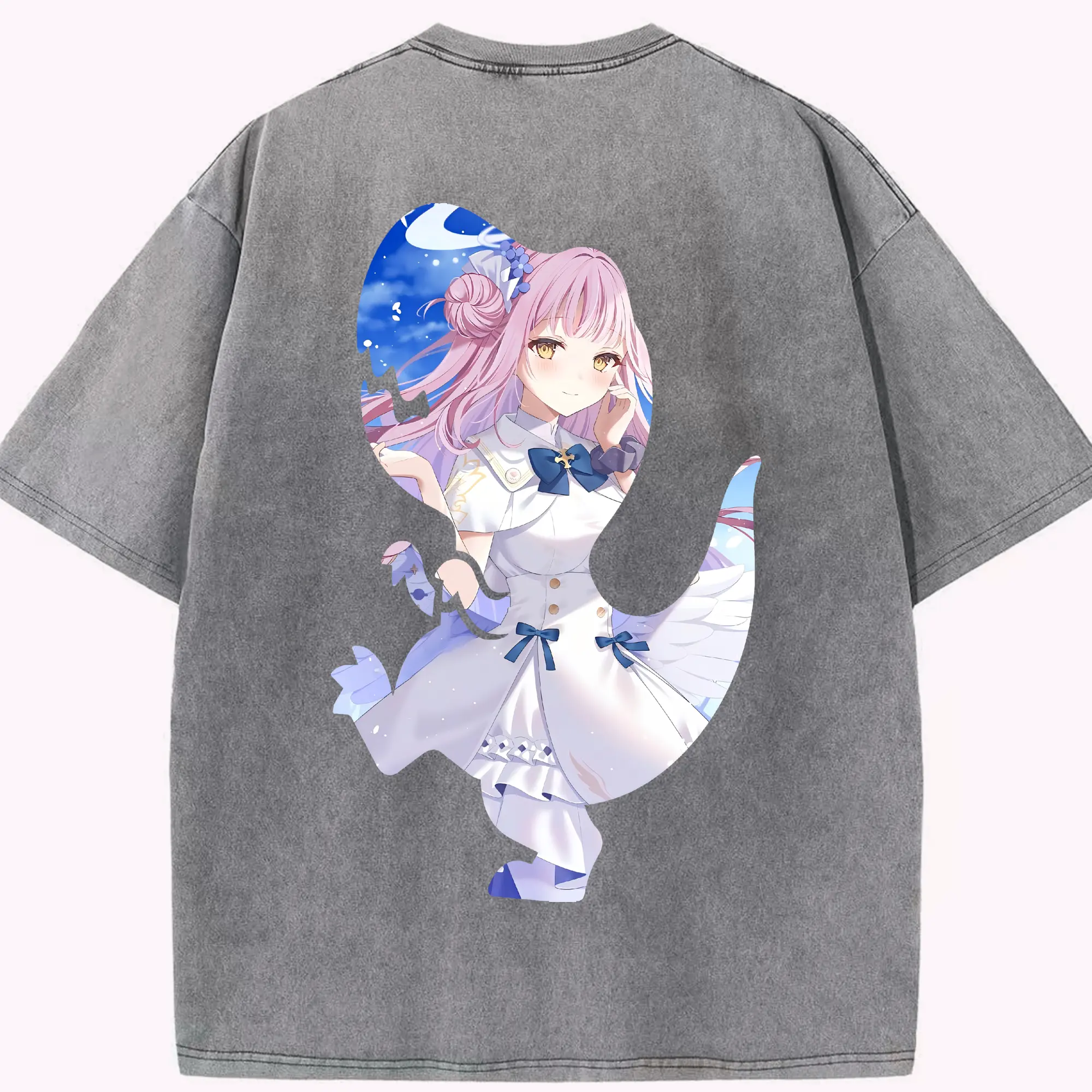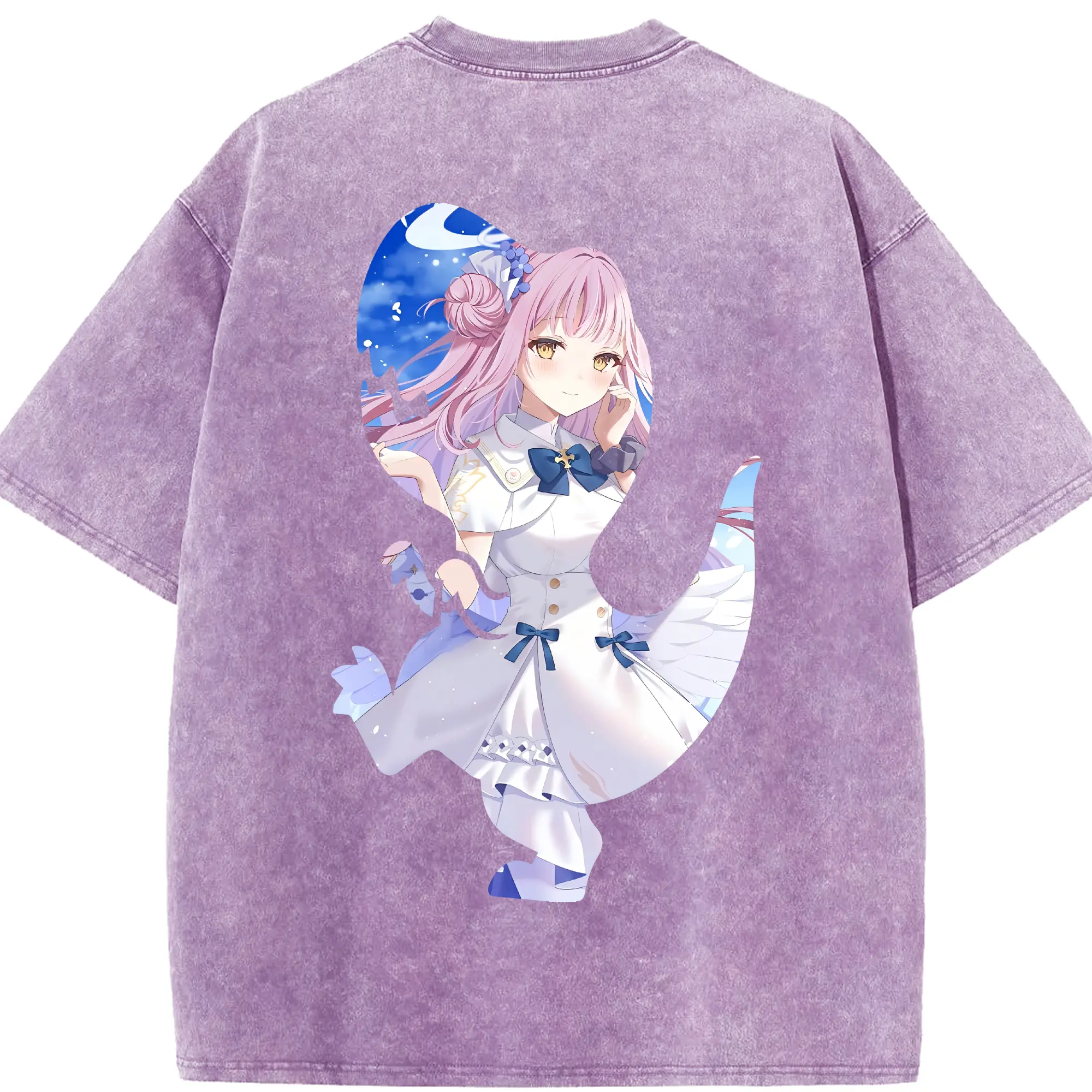 ブルーアーカイブ グッズ 聖園ミカ - 綿100% ヴィンテージ風 半袖Tシャツ ・ フロントプリント ・ 柔らか肌触り ・ 通気性 快適 ・ スポーツ カジュアル 外出用