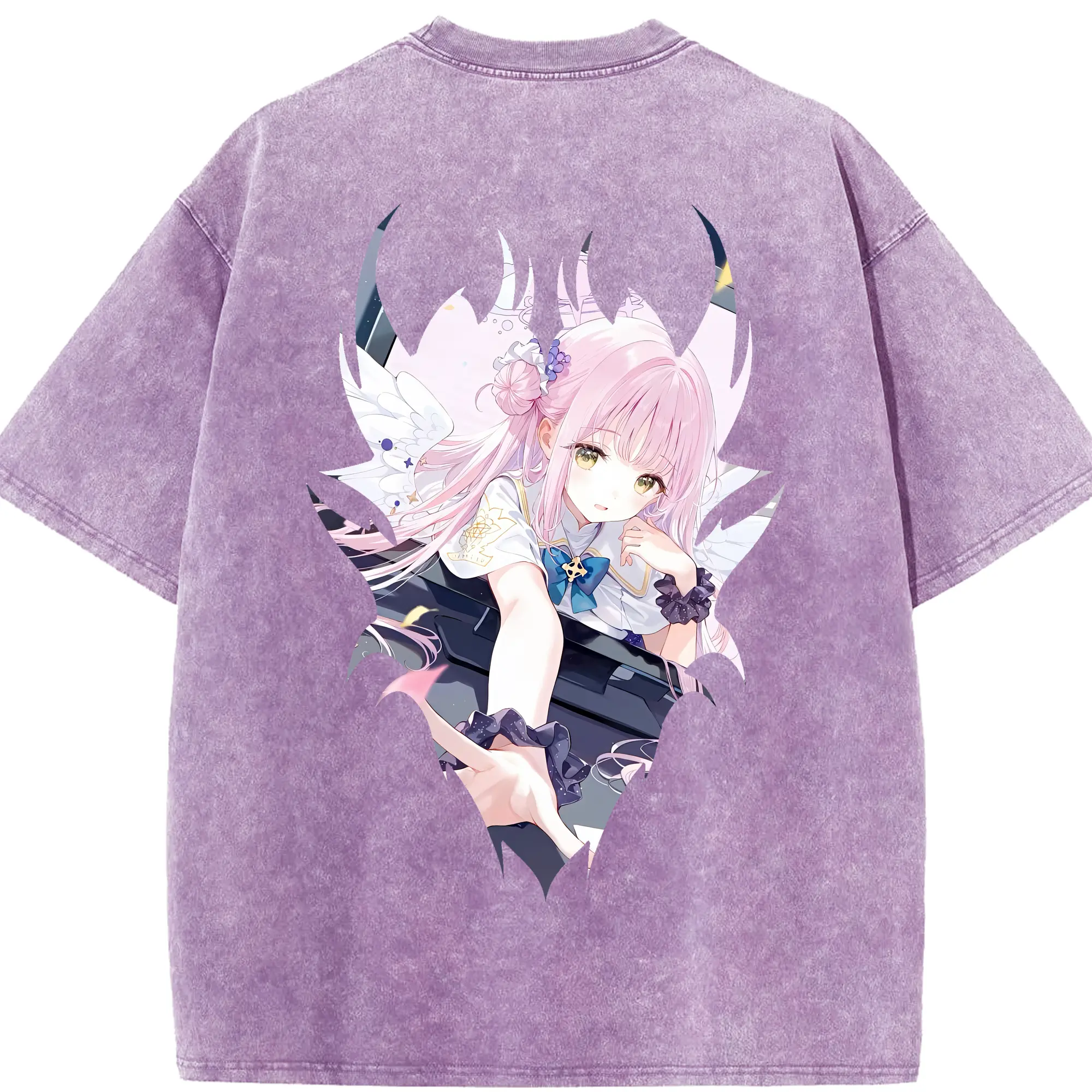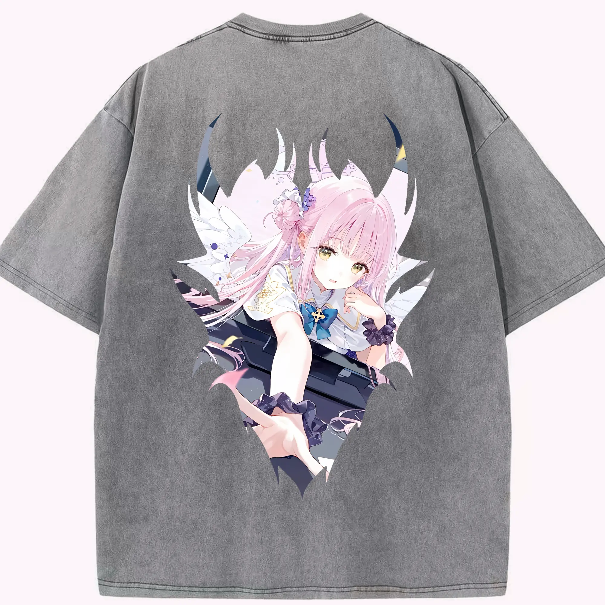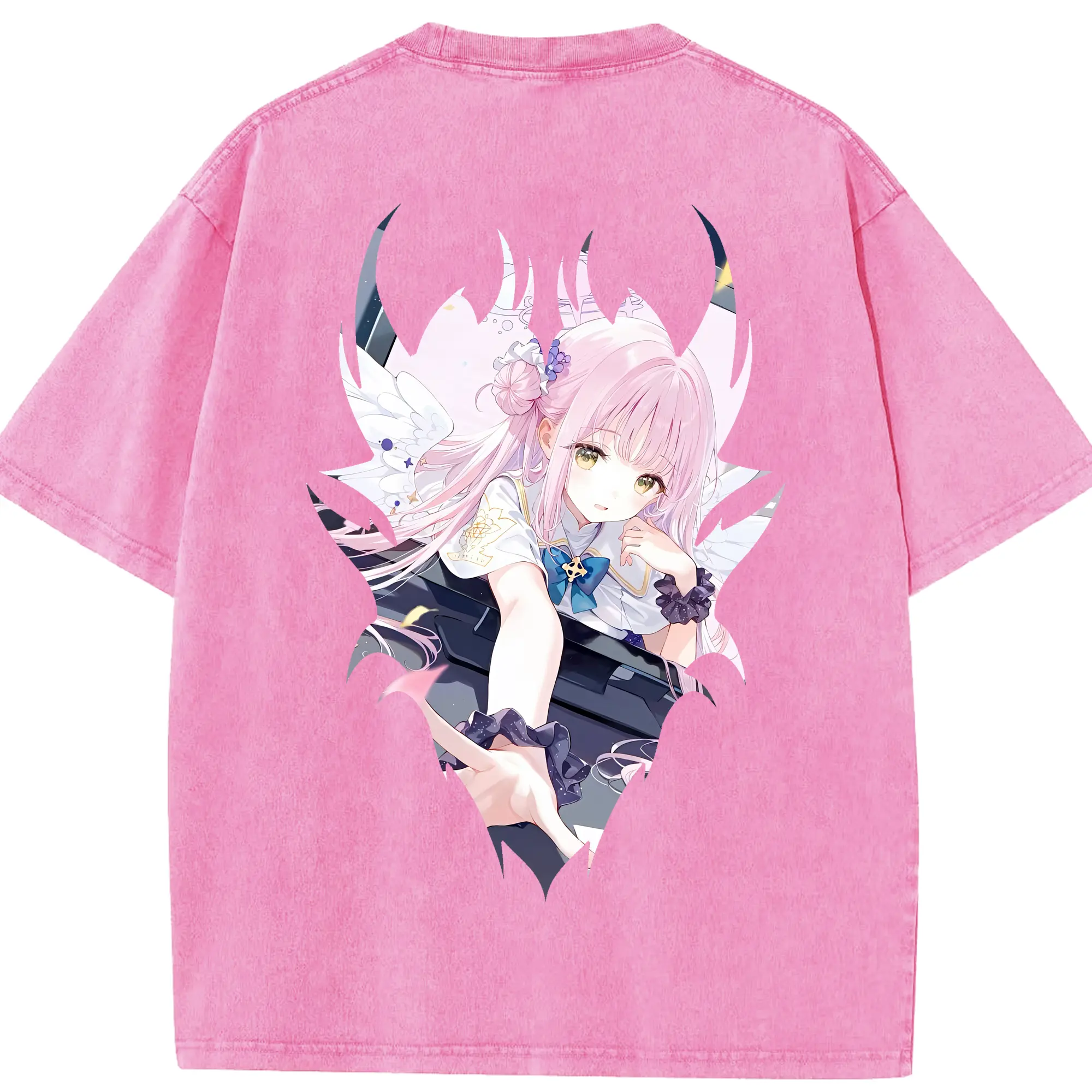 ブルーアーカイブ グッズ 聖園ミカ - 綿100% ヴィンテージ風 半袖Tシャツ ・ フロントプリント ・ 柔らか肌触り ・ 通気性 快適 ・ スポーツ カジュアル 外出用