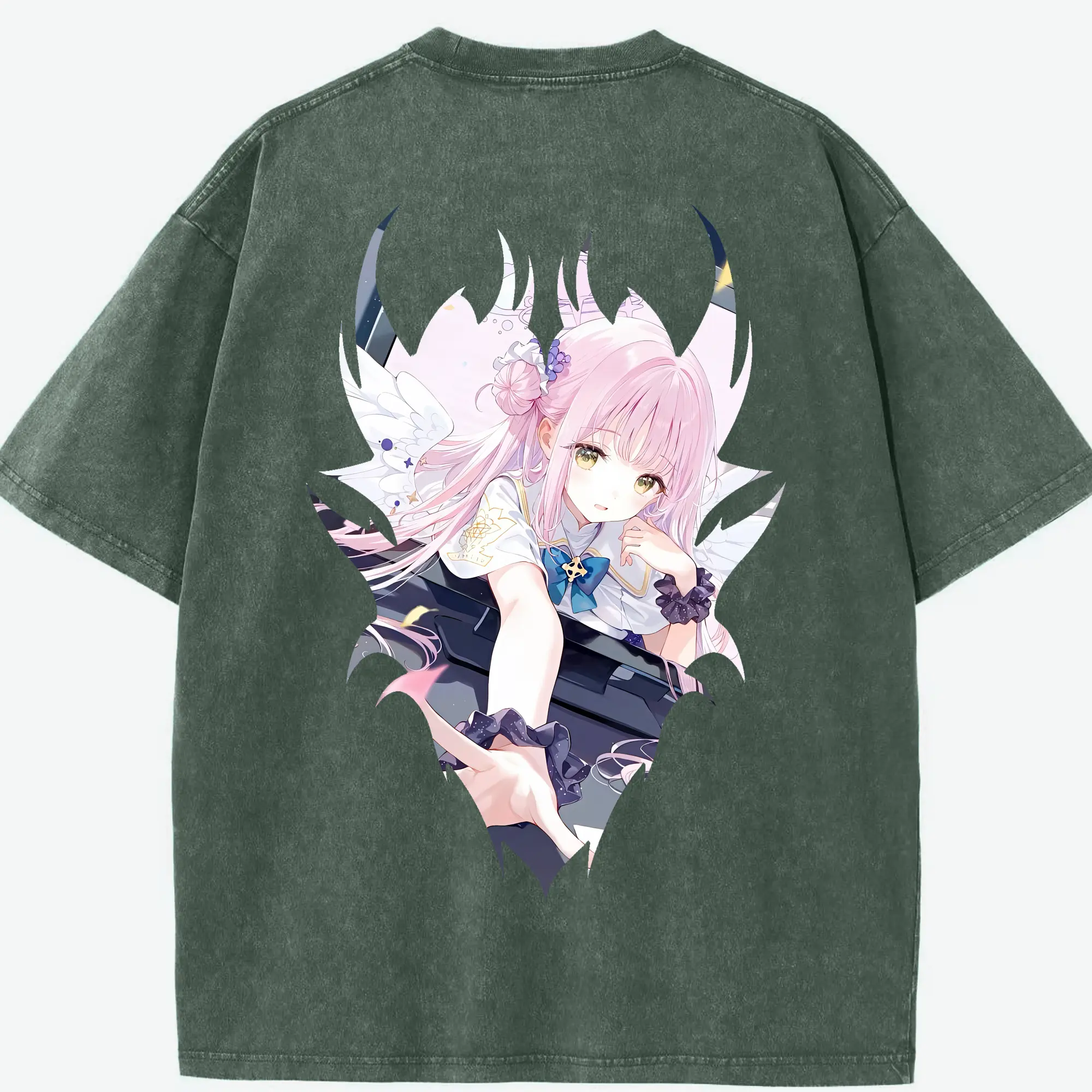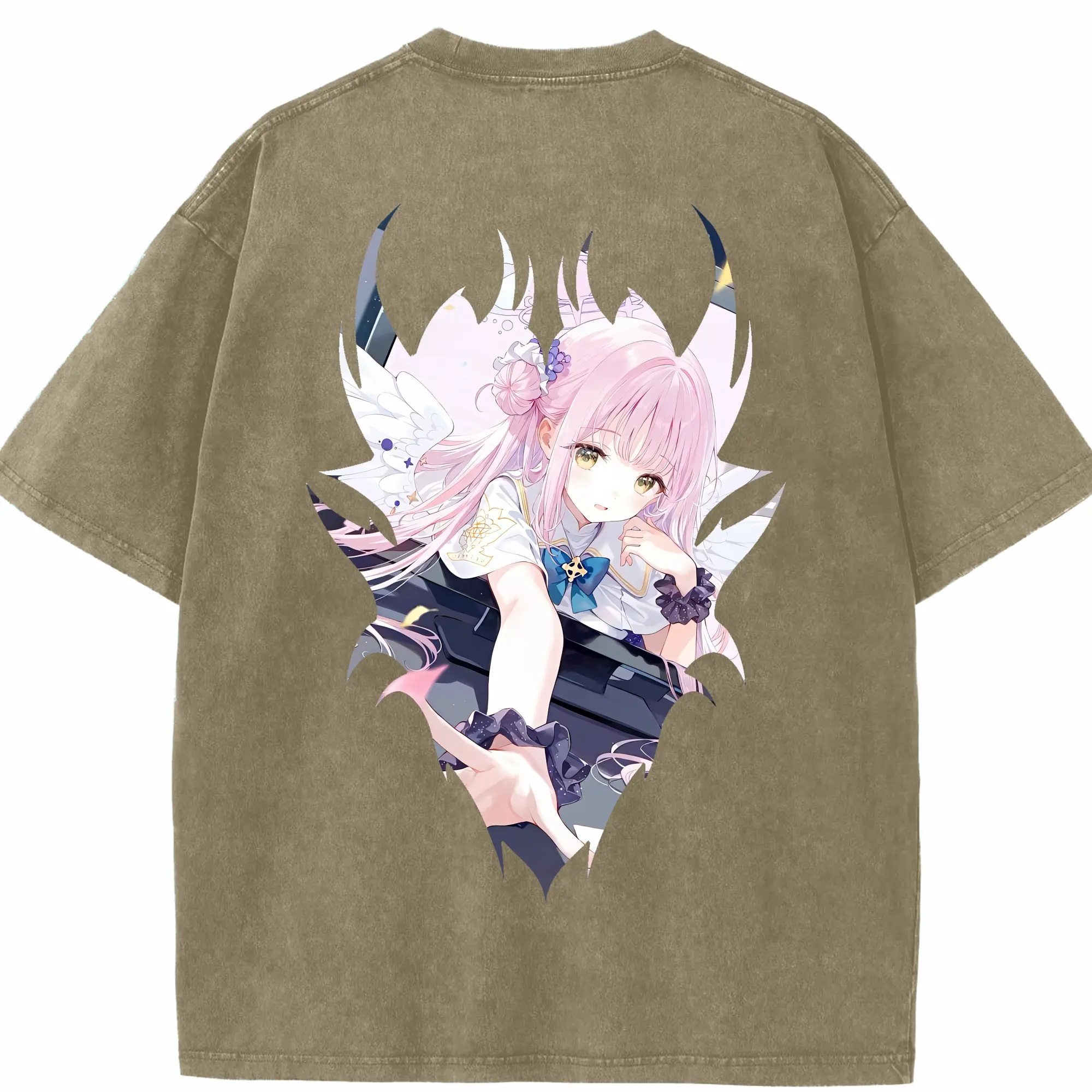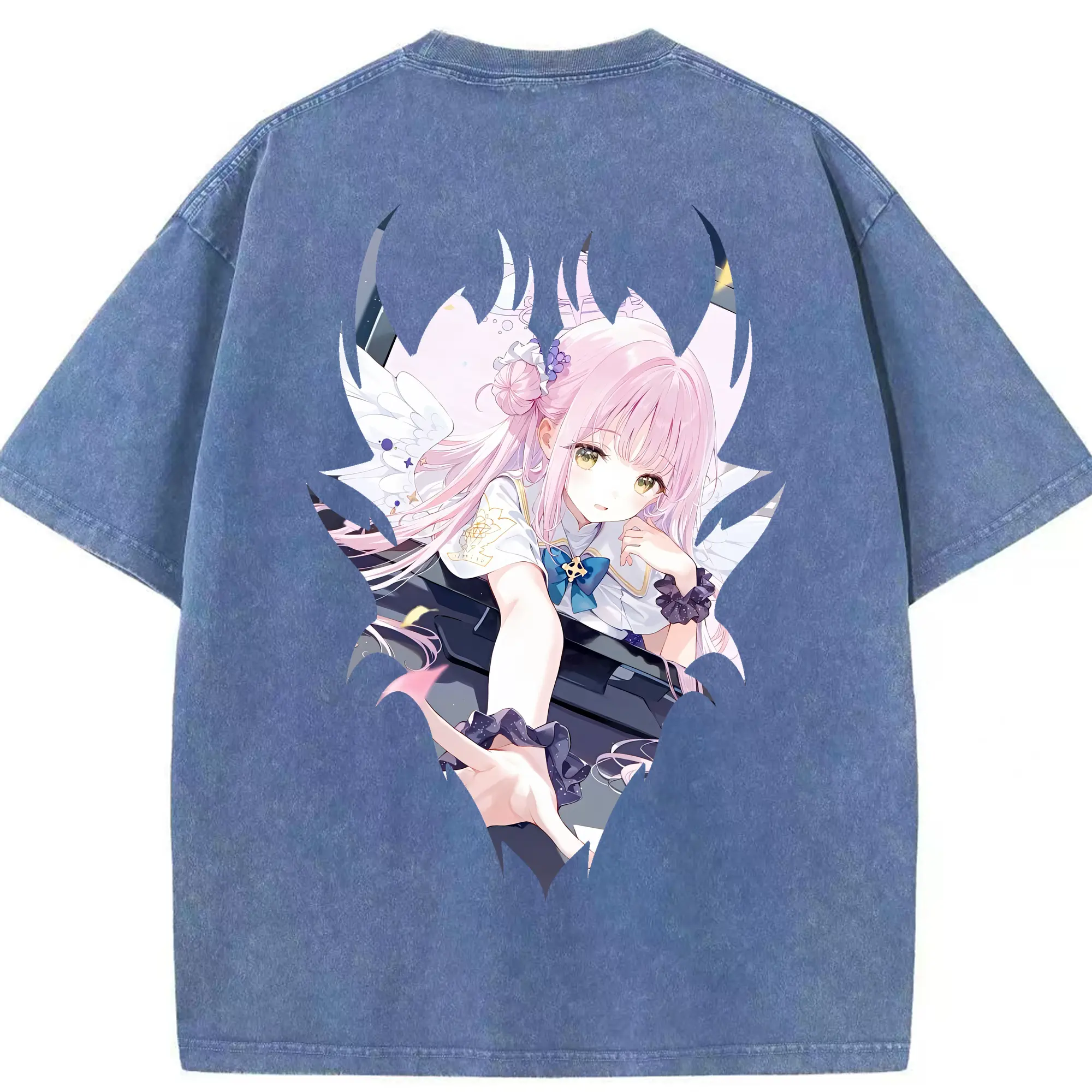 ブルーアーカイブ グッズ 聖園ミカ - 綿100% ヴィンテージ風 半袖Tシャツ ・ フロントプリント ・ 柔らか肌触り ・ 通気性 快適 ・ スポーツ カジュアル 外出用