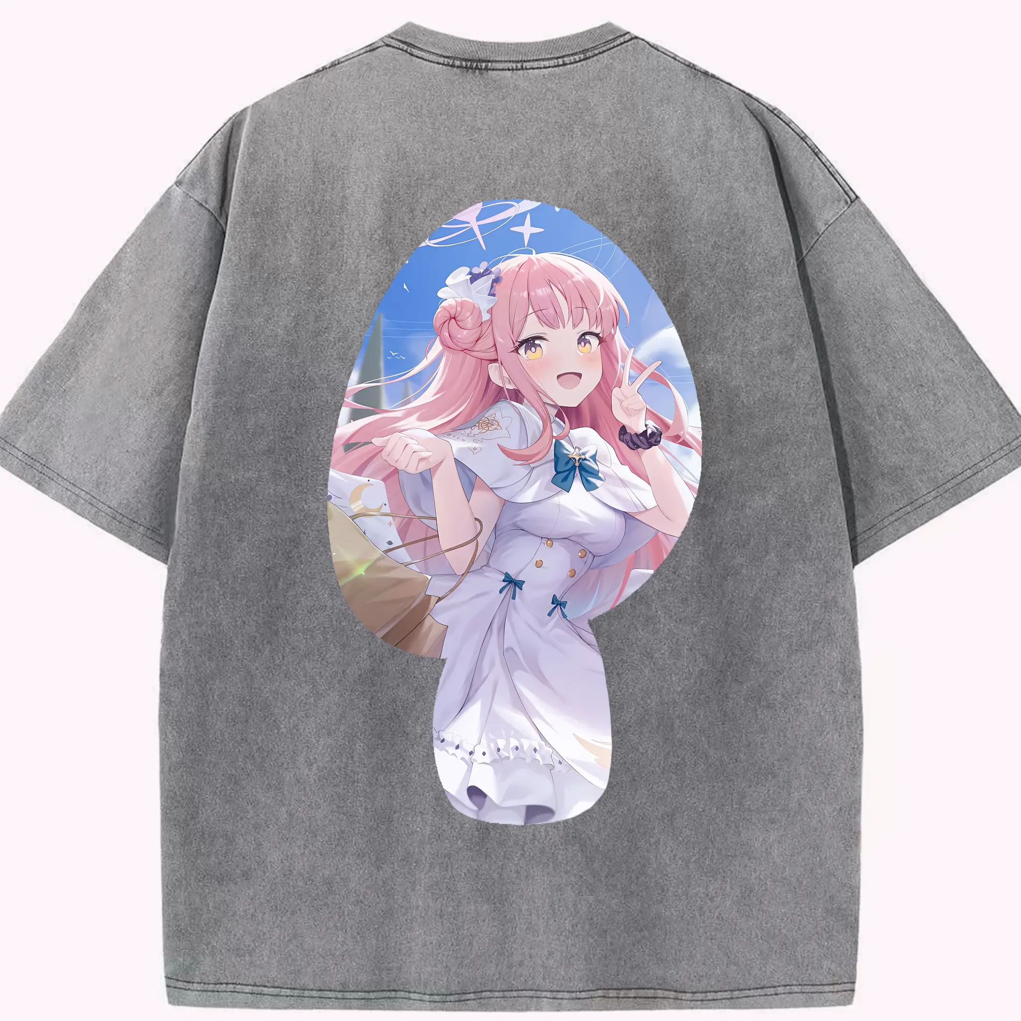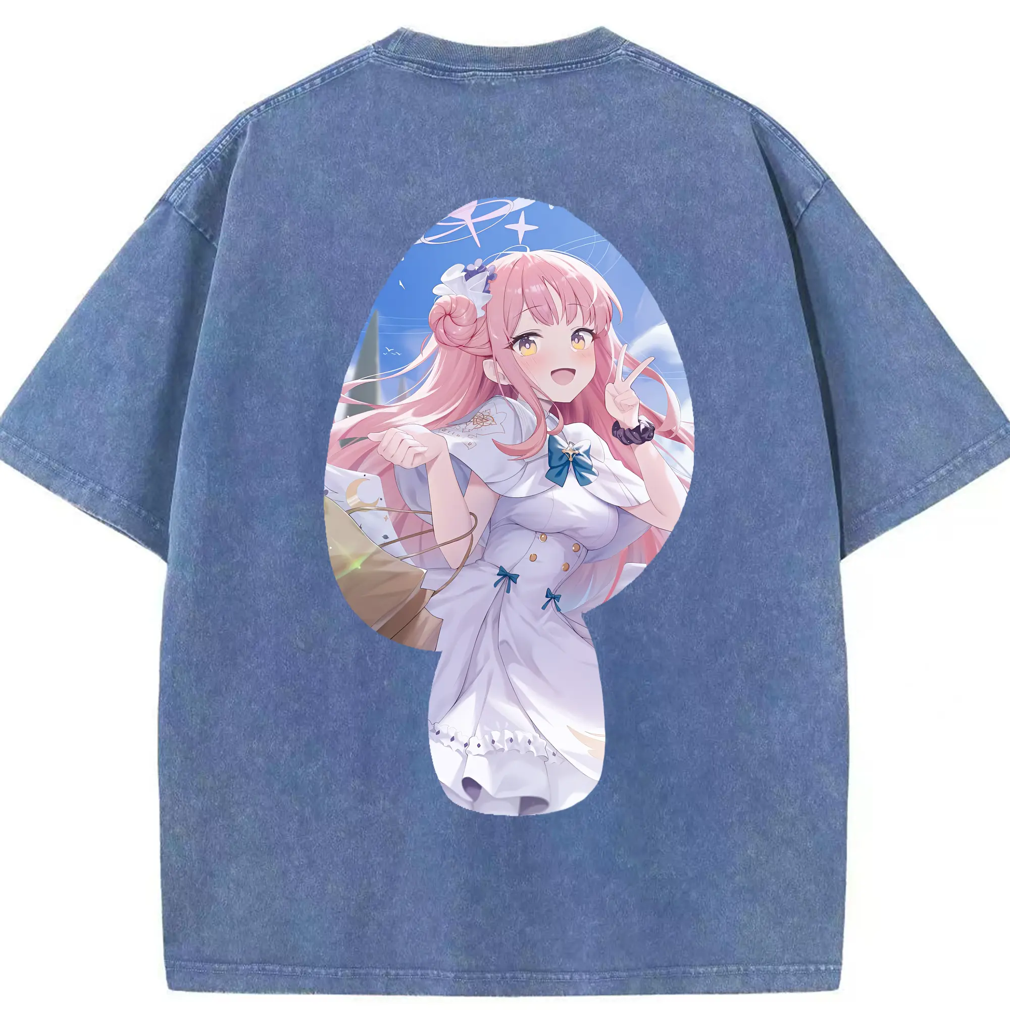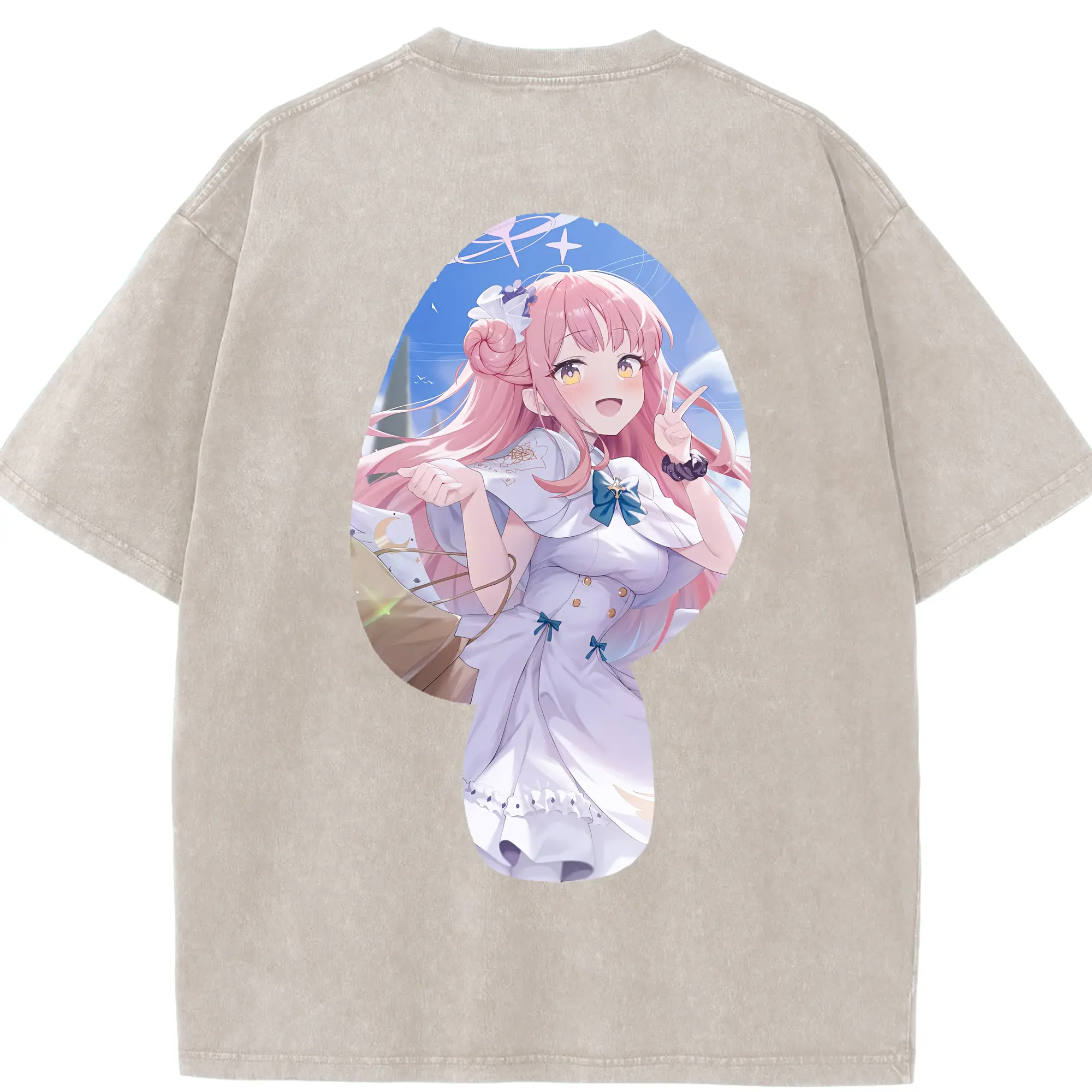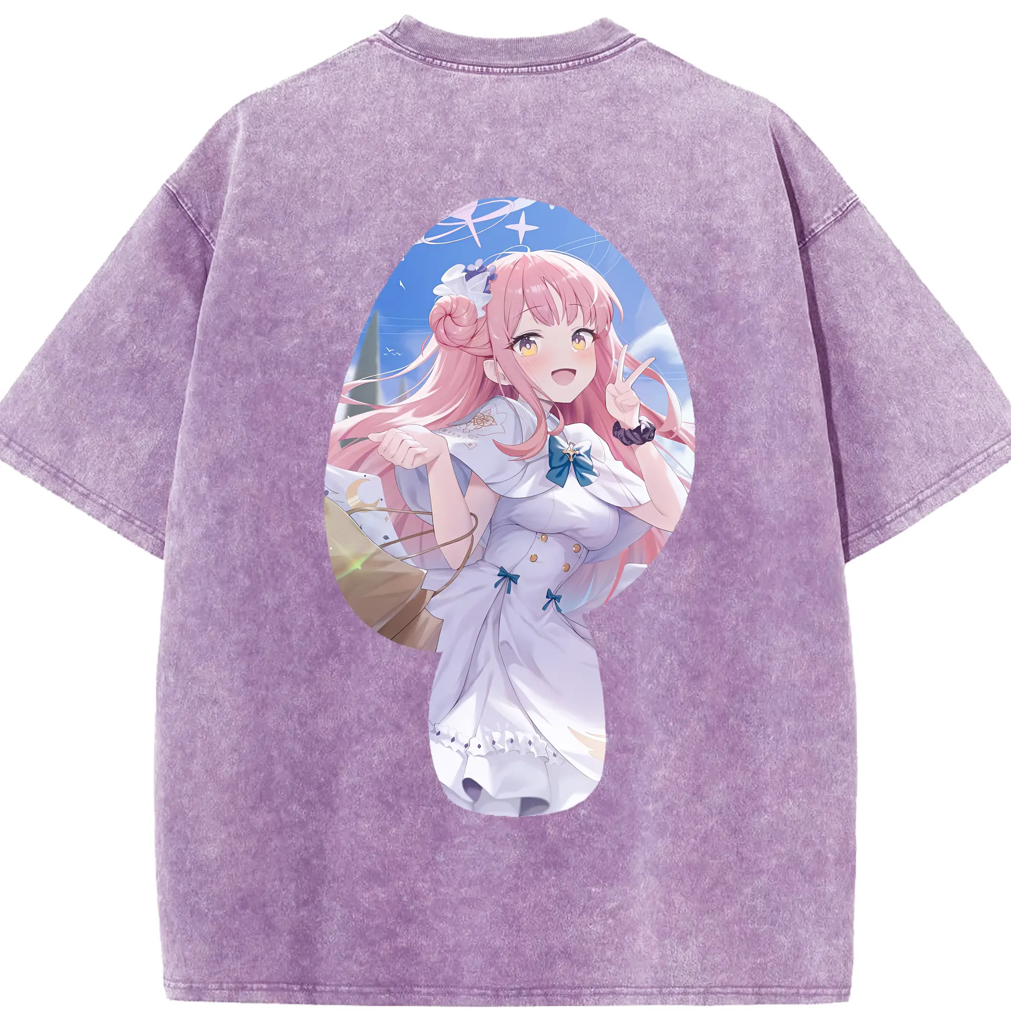 ブルーアーカイブ グッズ 聖園ミカ - 綿100% ヴィンテージ風 半袖Tシャツ ・ フロントプリント ・ 柔らか肌触り ・ 通気性 快適 ・ スポーツ カジュアル 外出用