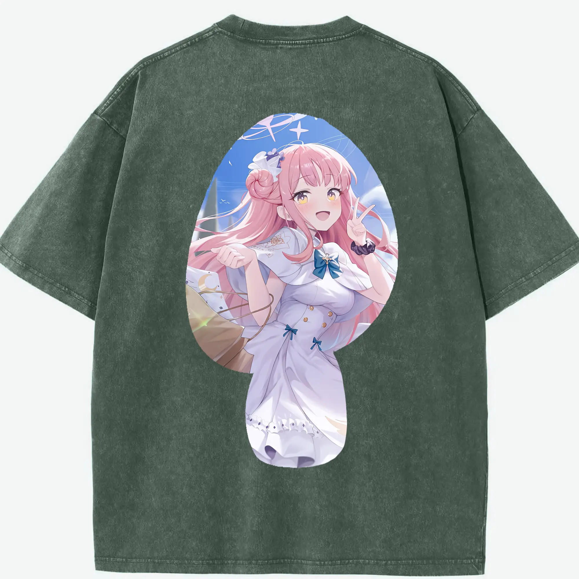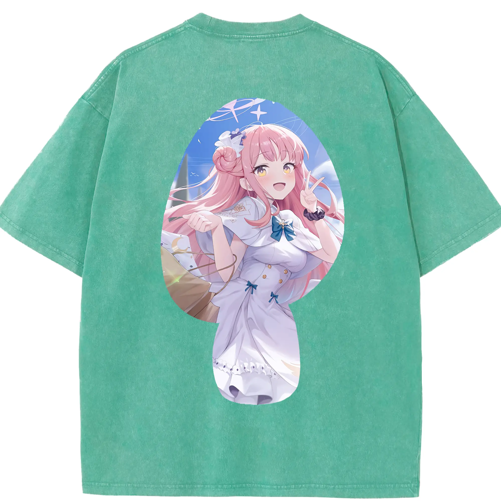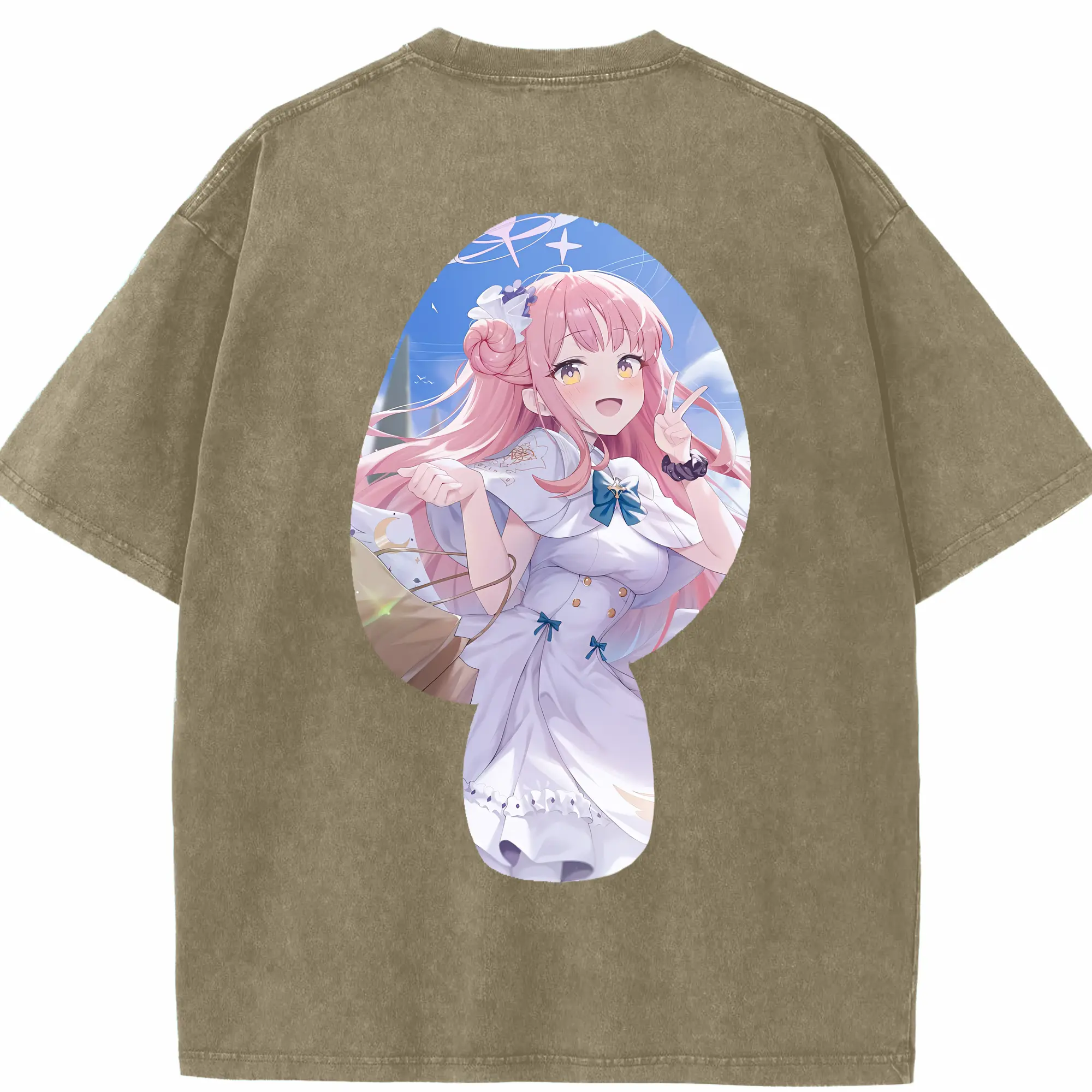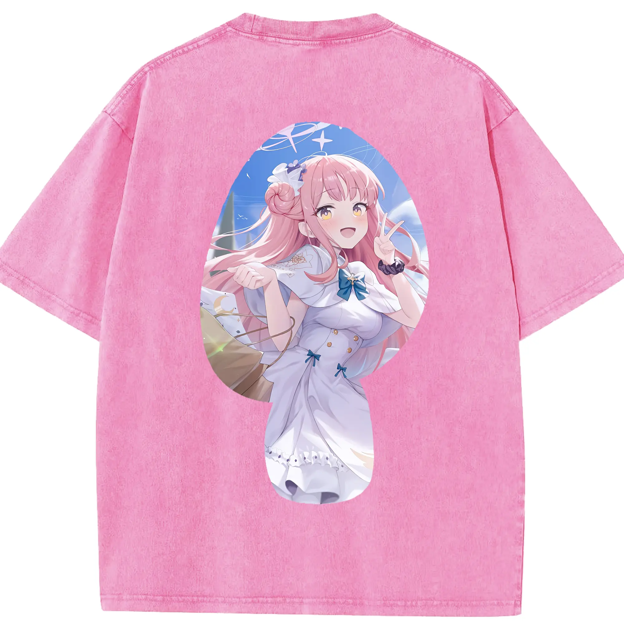 ブルーアーカイブ グッズ 聖園ミカ - 綿100% ヴィンテージ風 半袖Tシャツ ・ フロントプリント ・ 柔らか肌触り ・ 通気性 快適 ・ スポーツ カジュアル 外出用