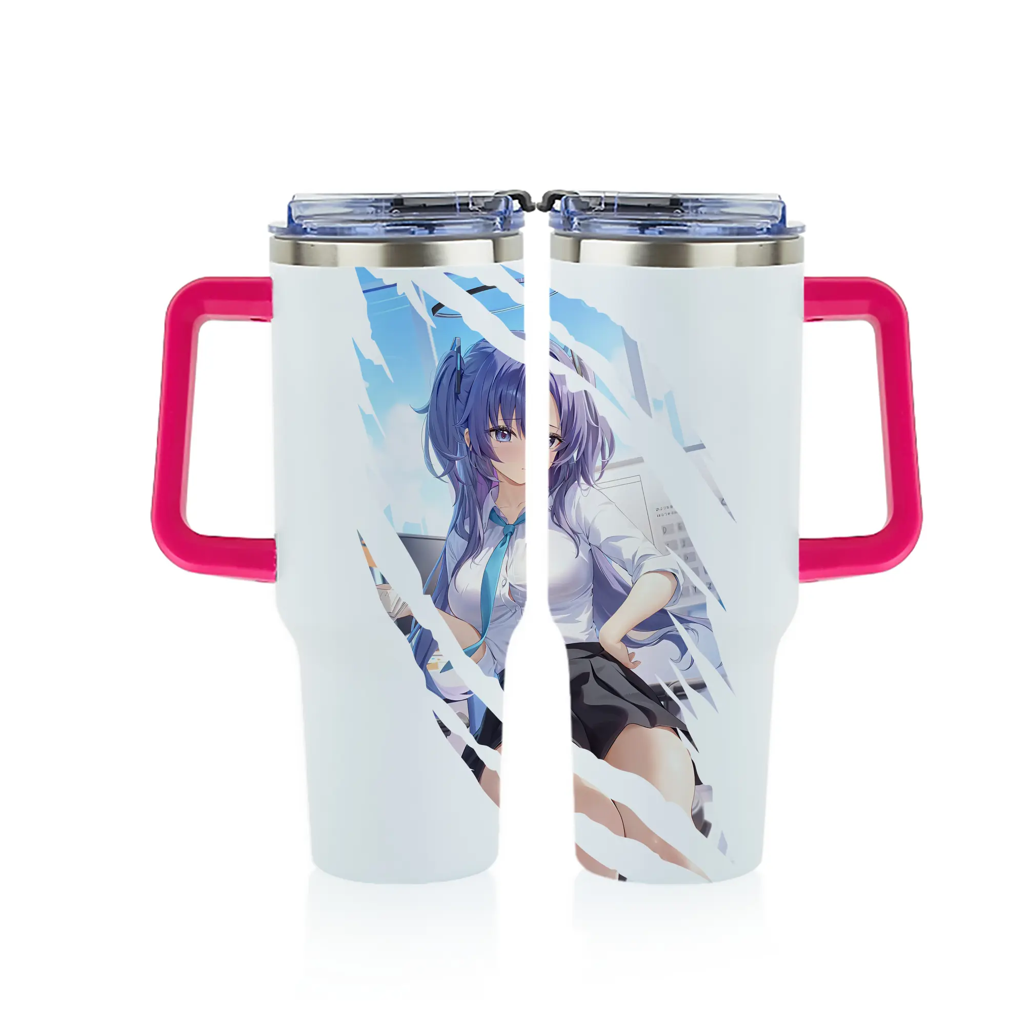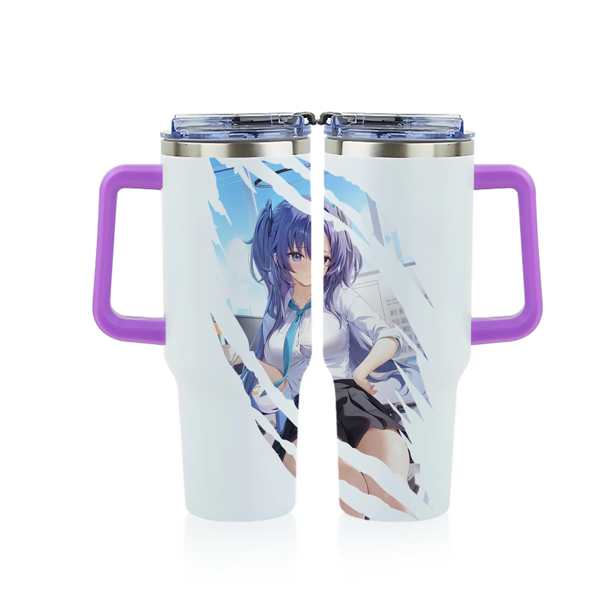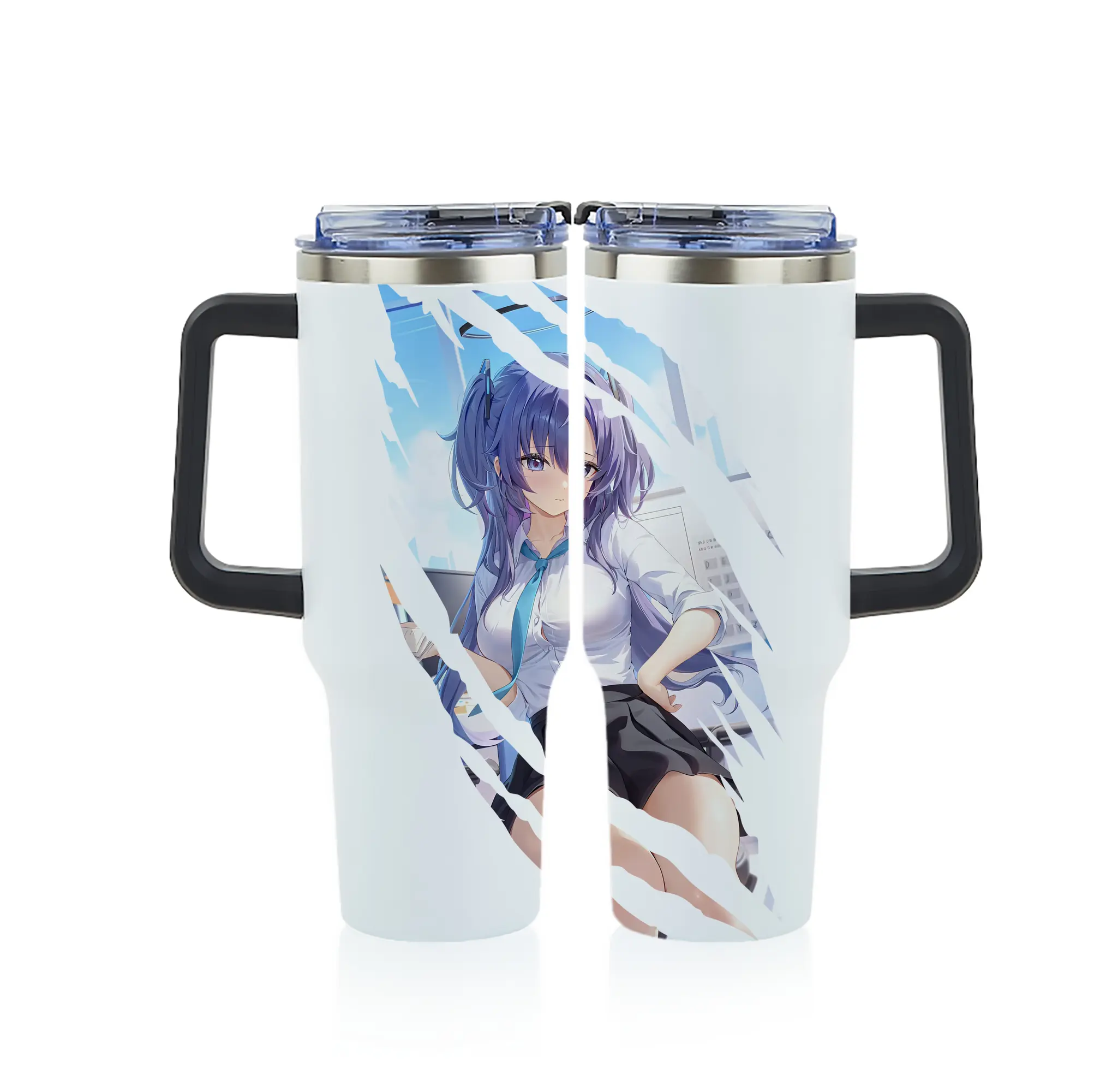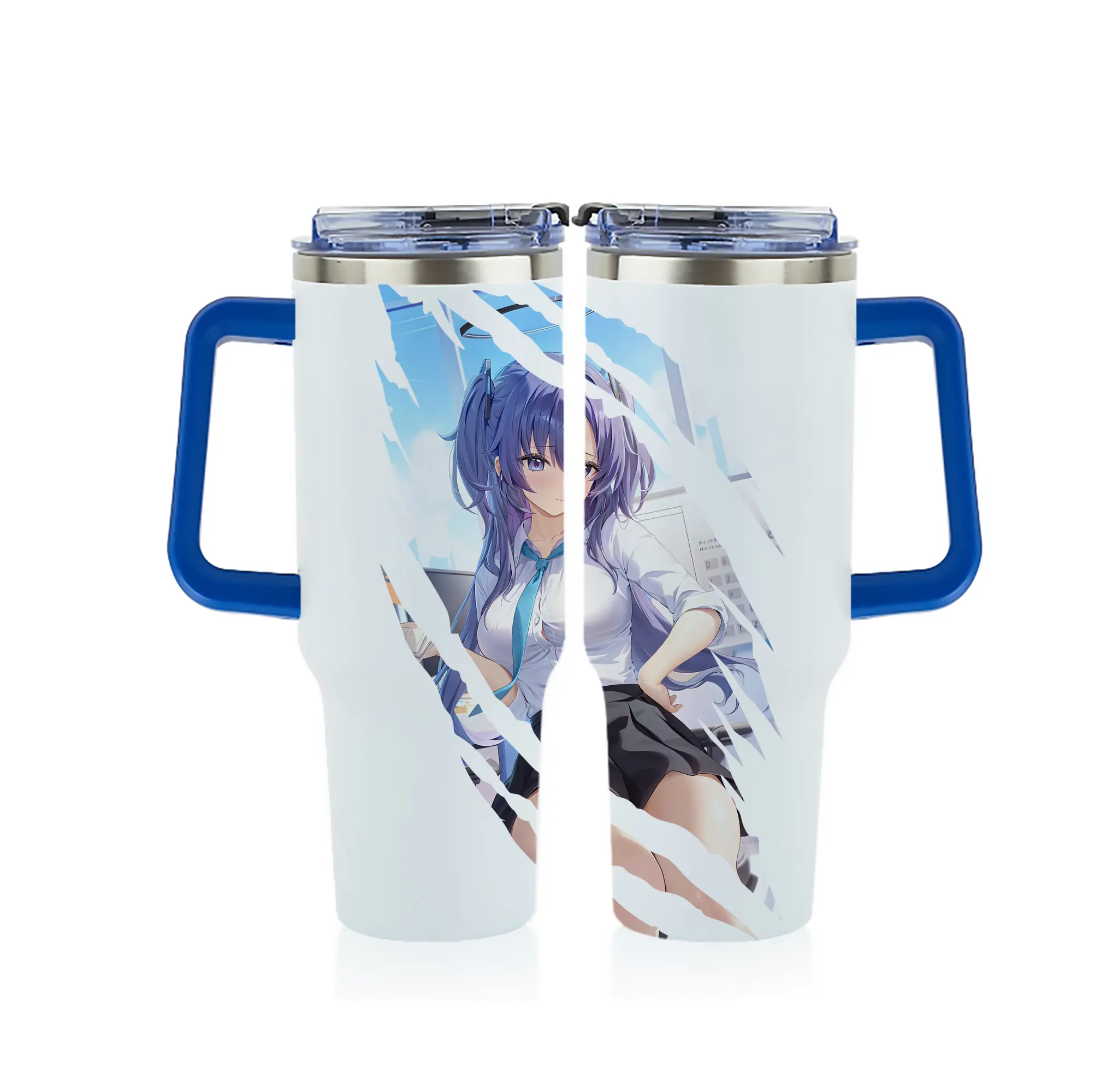 ブルーアーカイブ グッズ 早瀬 ユウカ - 1200mL フルプリント車用タンブラー ・ 304ステンレス 内側 ・ 201ステンレス 外側 ・ 保温 保冷 ・ 通勤 ドライブ アウトドア用