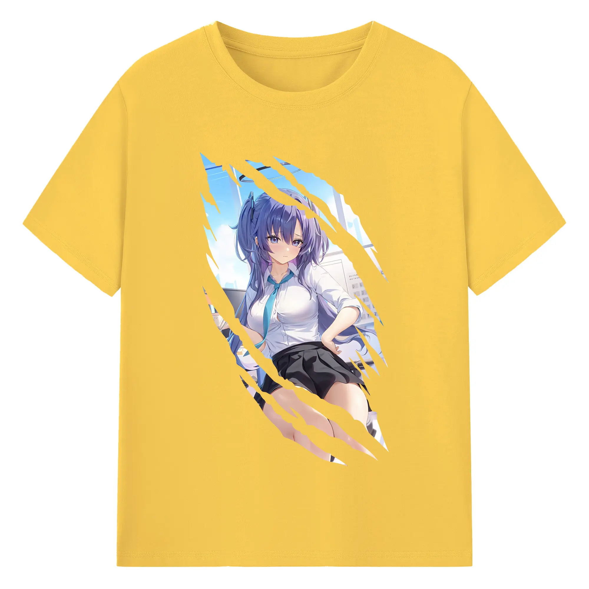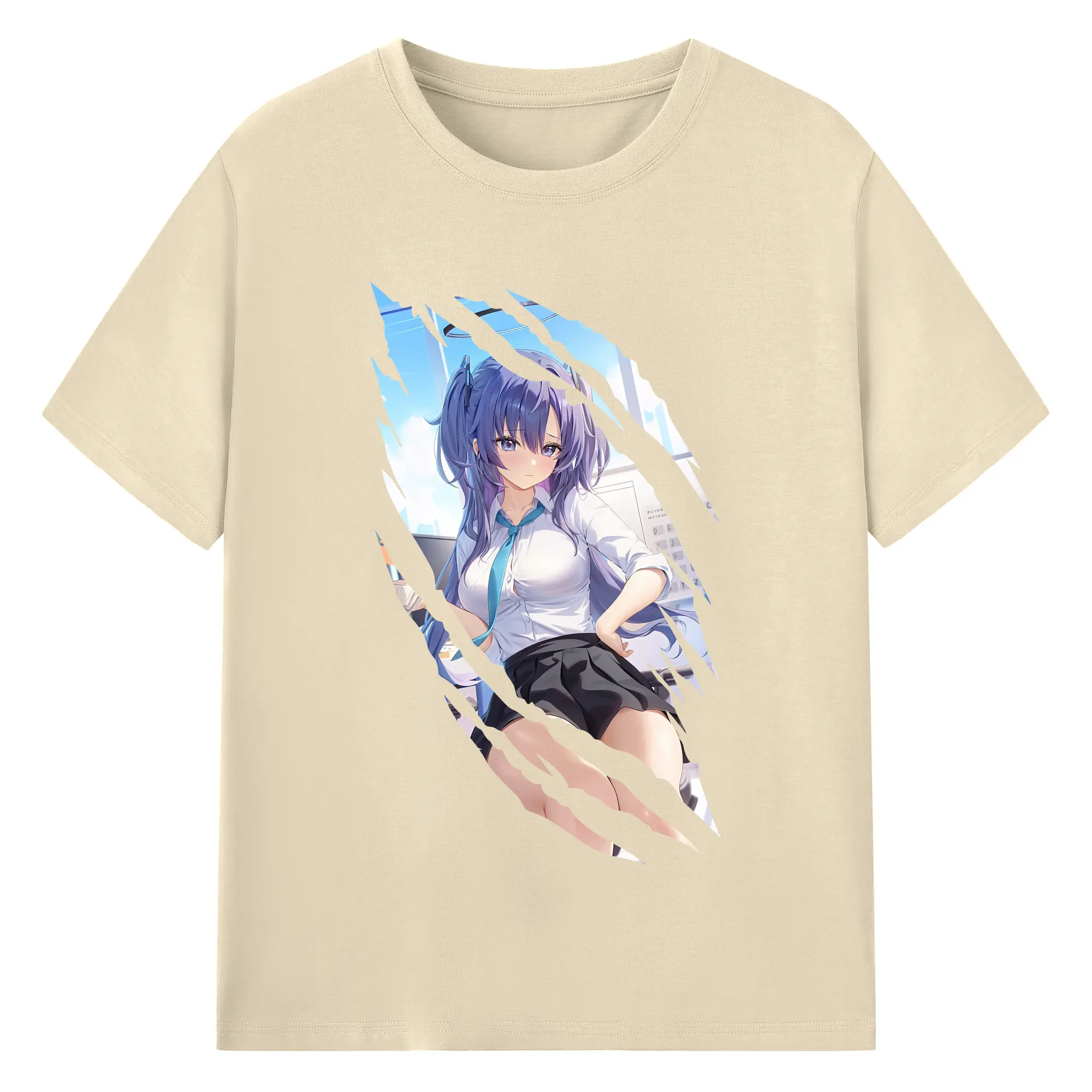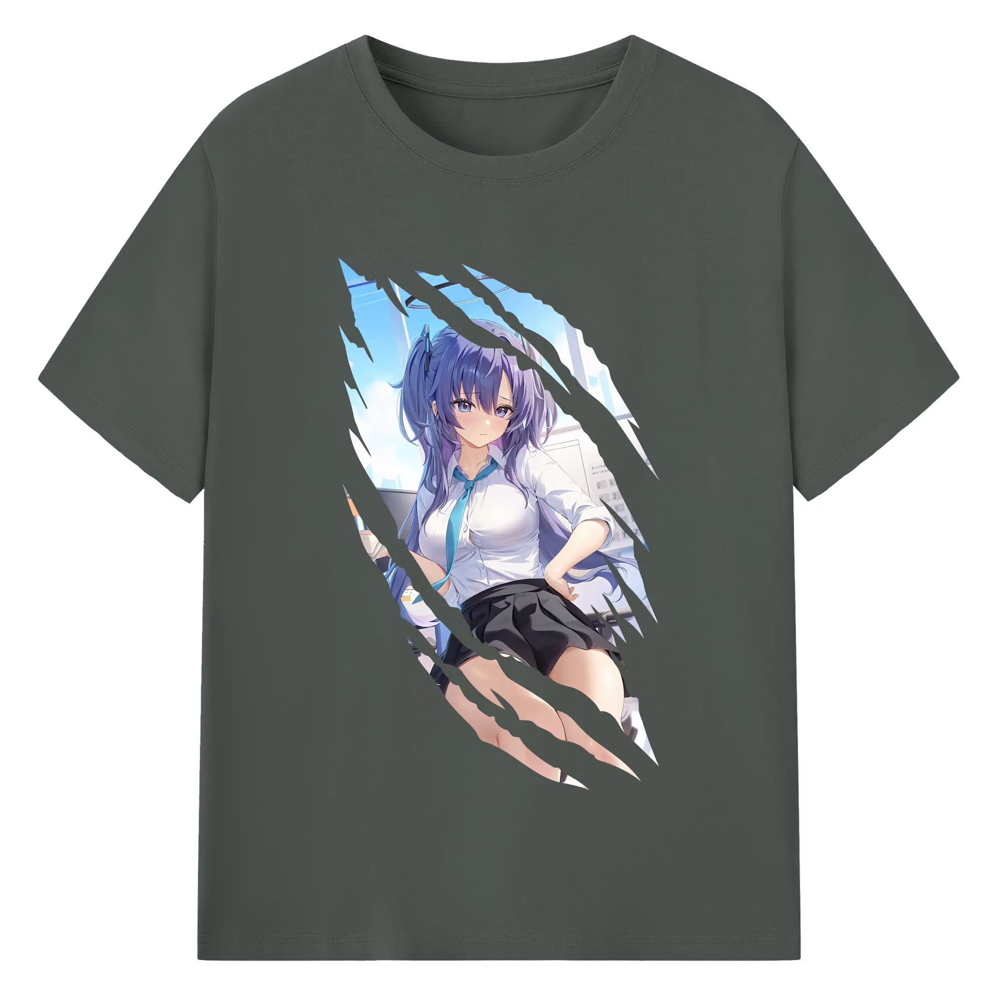 ブルーアーカイブ グッズ 早瀬 ユウカ - 綿100% ヴィンテージ風 半袖Tシャツ ・ フロントプリント ・ 柔らか肌触り ・ 通気性 快適 ・ スポーツ カジュアル 外出用