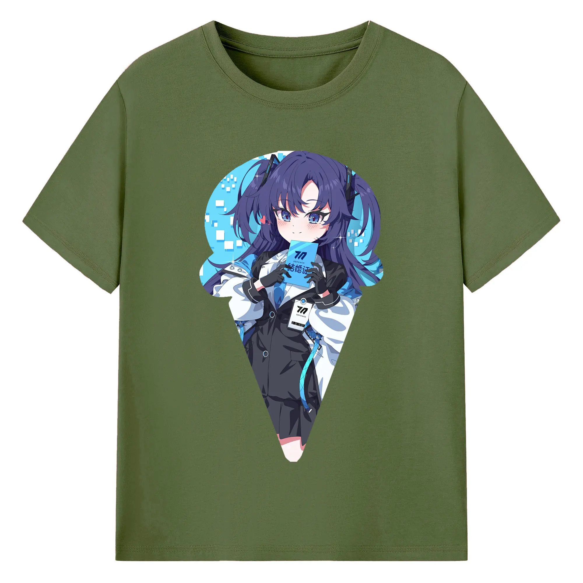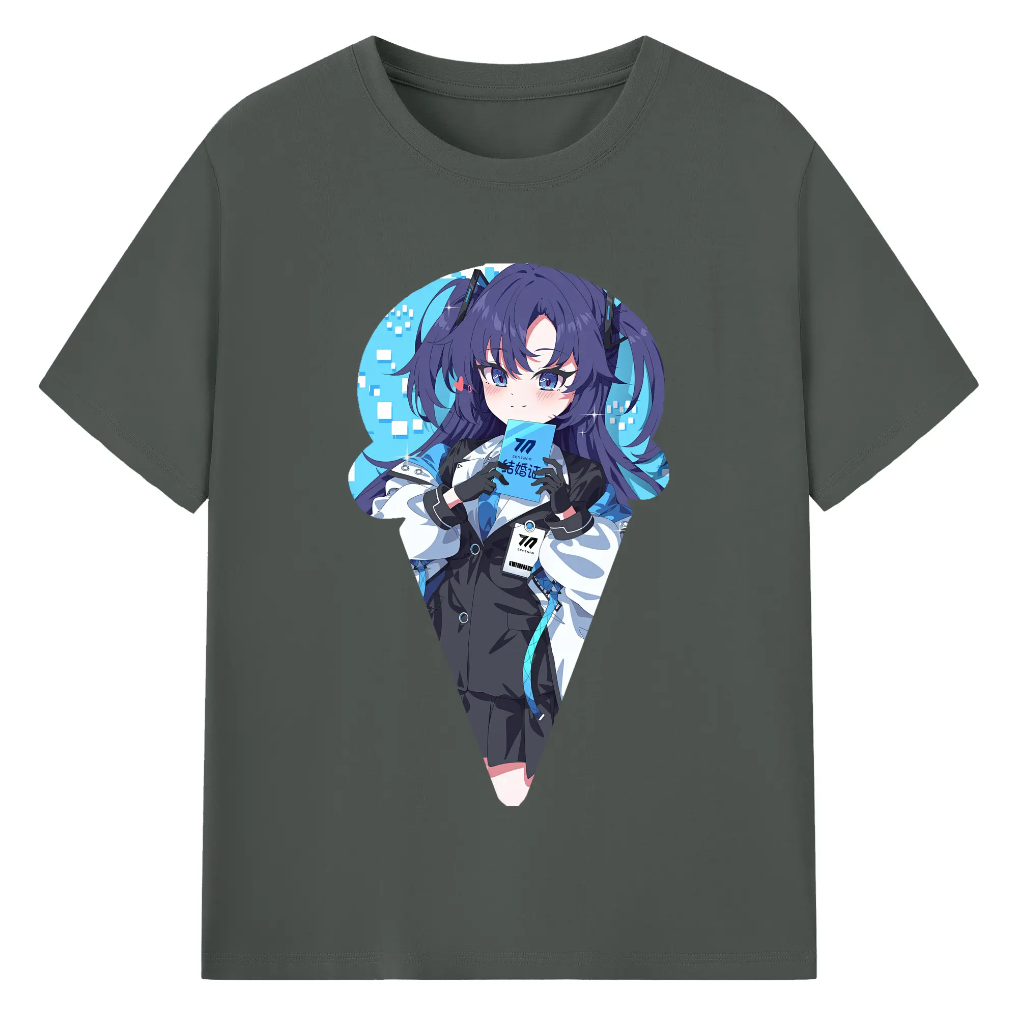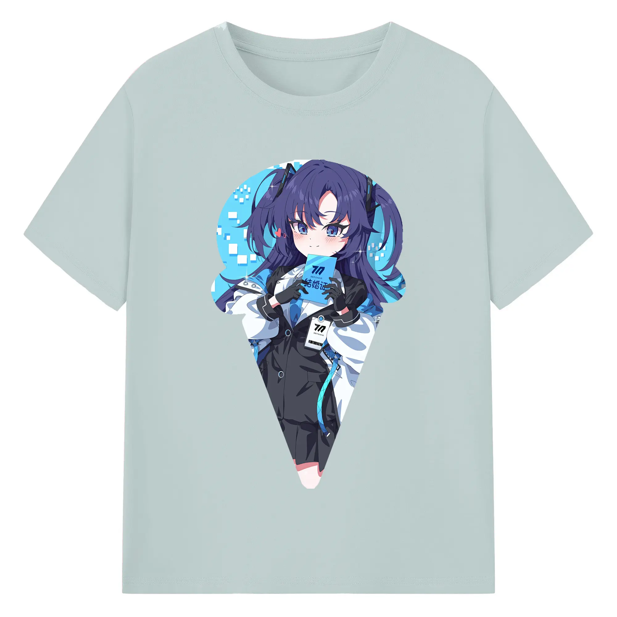 ブルーアーカイブ グッズ 早瀬 ユウカ - 綿100% ヴィンテージ風 半袖Tシャツ ・ フロントプリント ・ 柔らか肌触り ・ 通気性 快適 ・ スポーツ カジュアル 外出用
