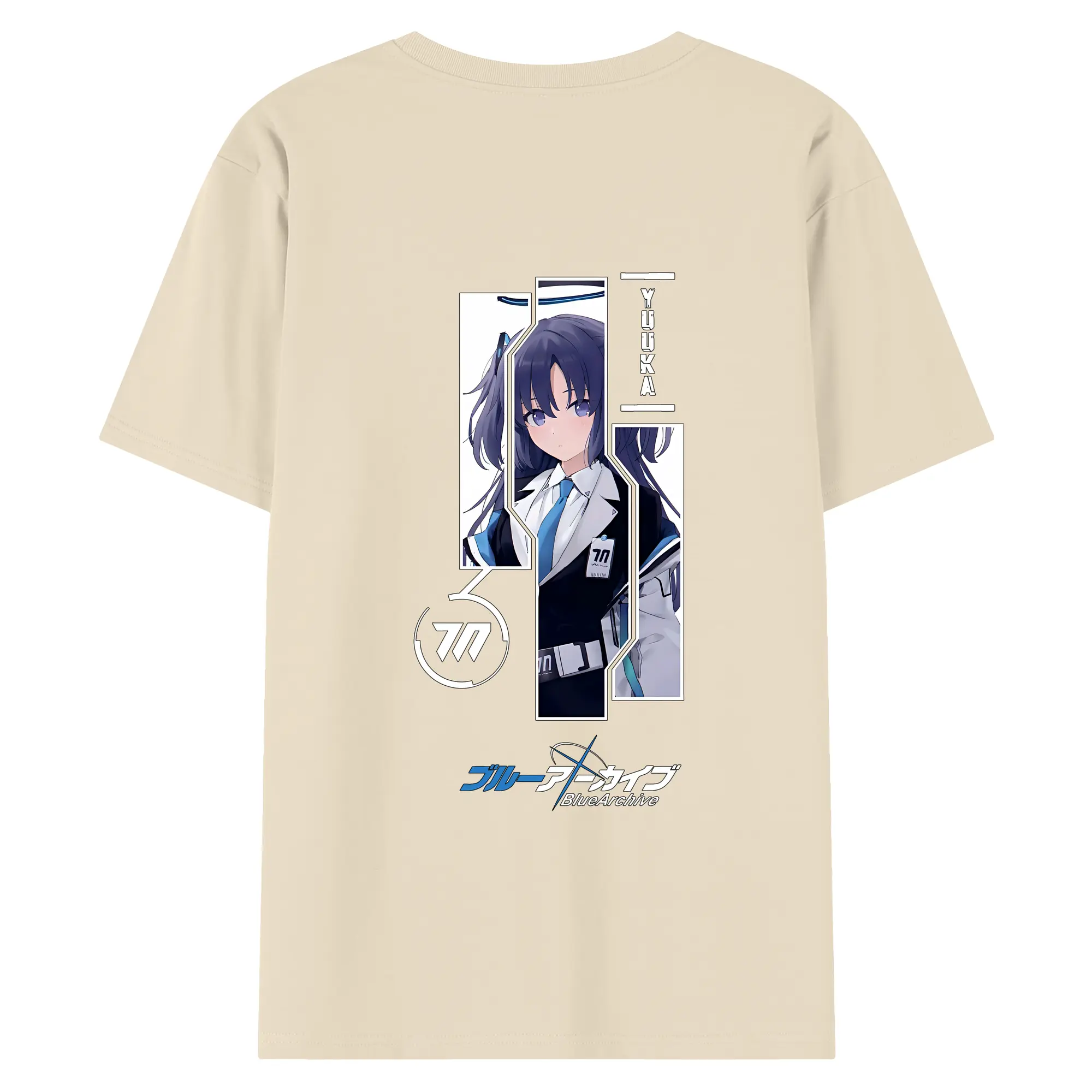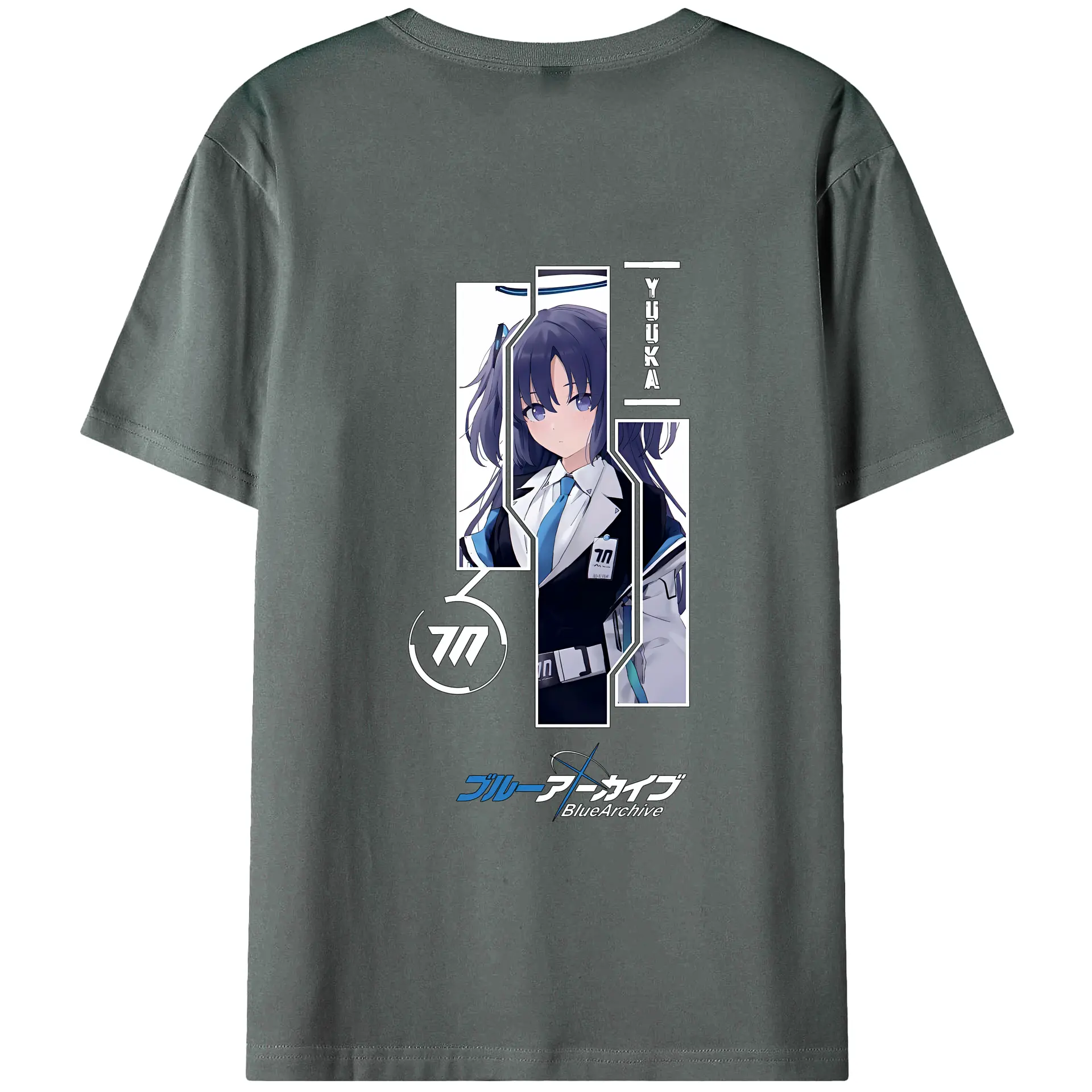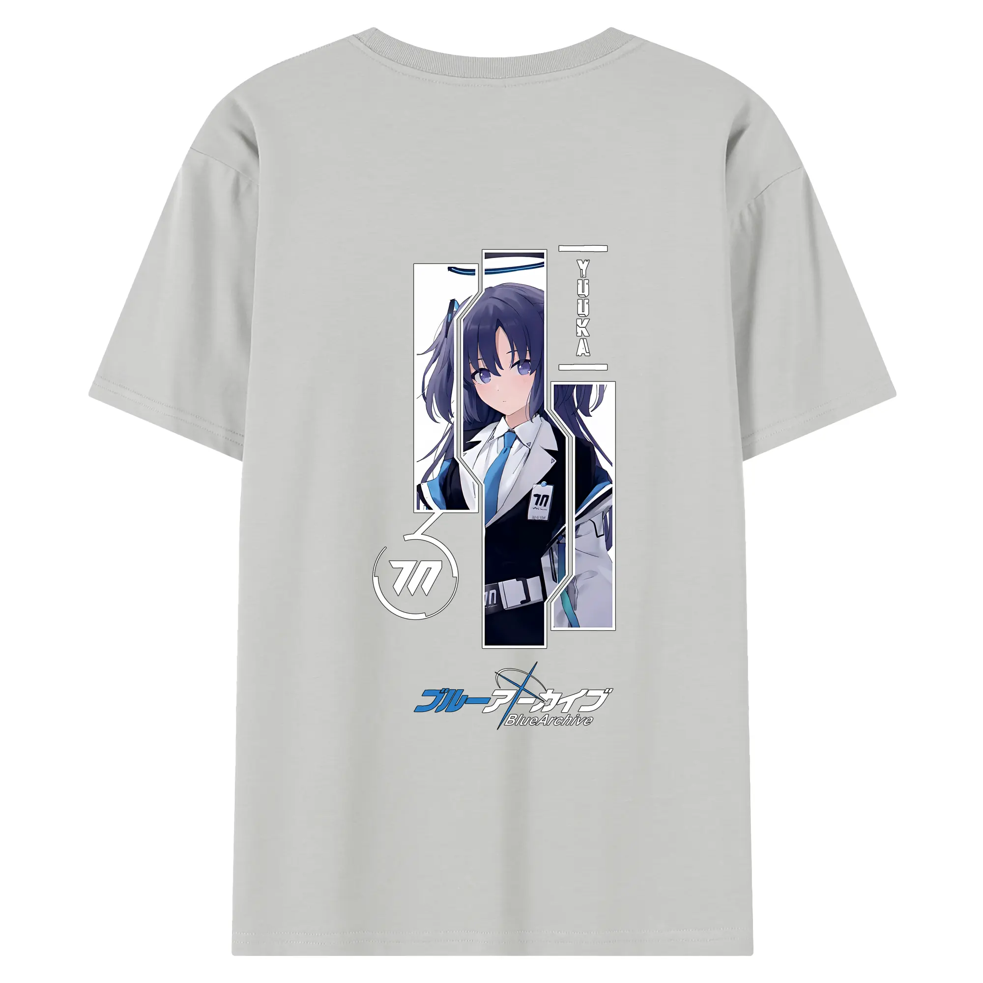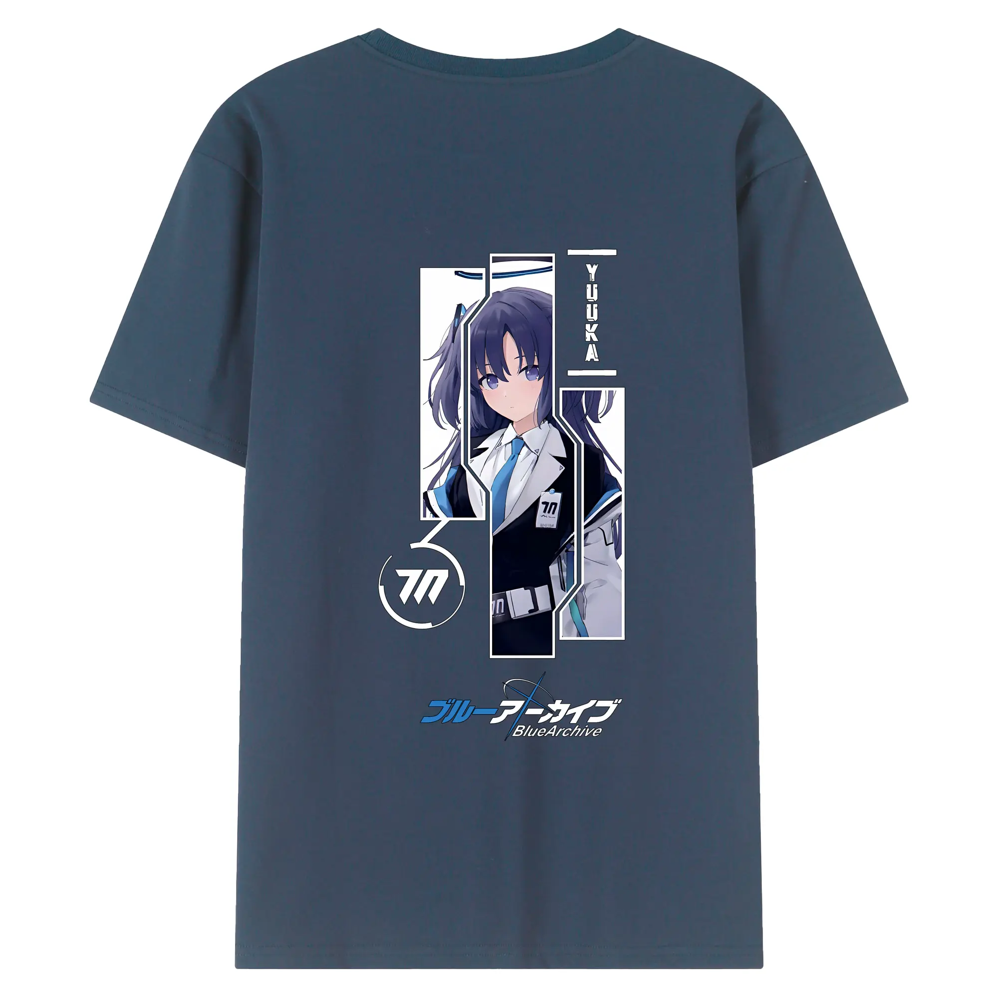 ブルーアーカイブ グッズ 早瀬 ユウカ - 綿100% ヴィンテージ風 半袖Tシャツ ・ 背面プリント ・ 柔らか肌触り ・ 通気性 快適 ・ スポーツ カジュアル 外出用