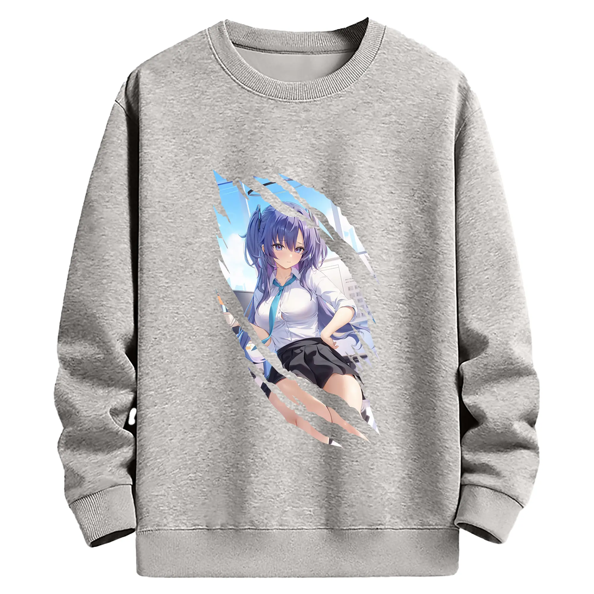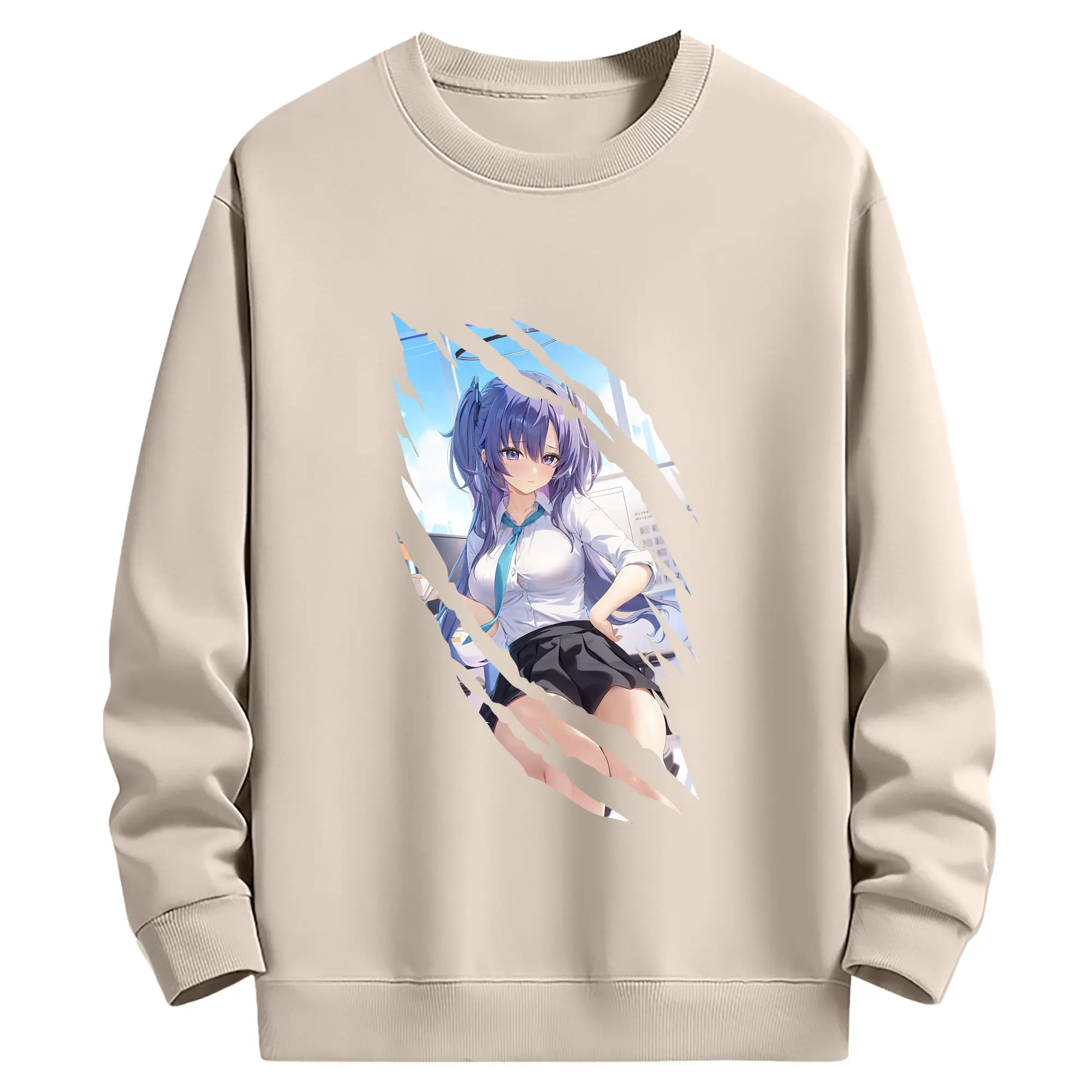 ブルーアーカイブ グッズ 早瀬 ユウカ - 薄手 クルーネック スウェット 裏毛260g · ポリエステル 春秋向け カジュアル 男女兼用 · トレーナー デイリー スポーツ 散歩に最適