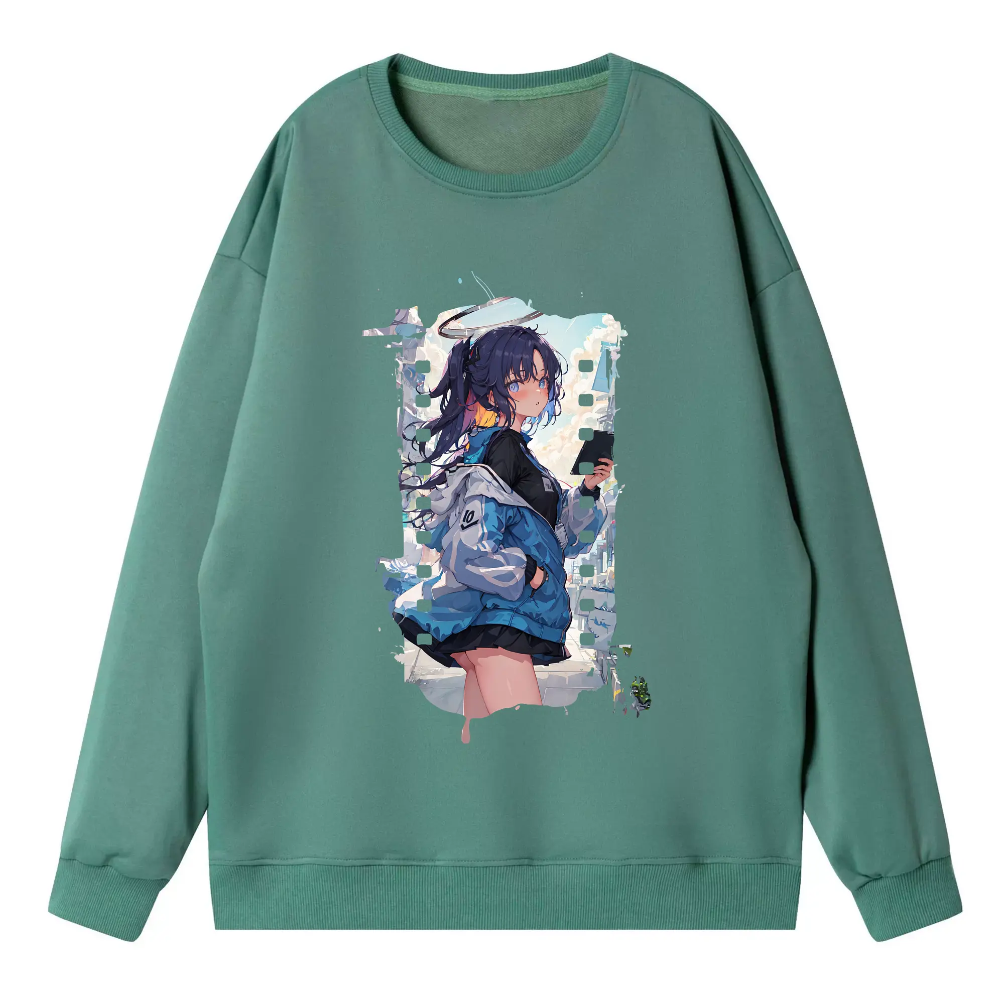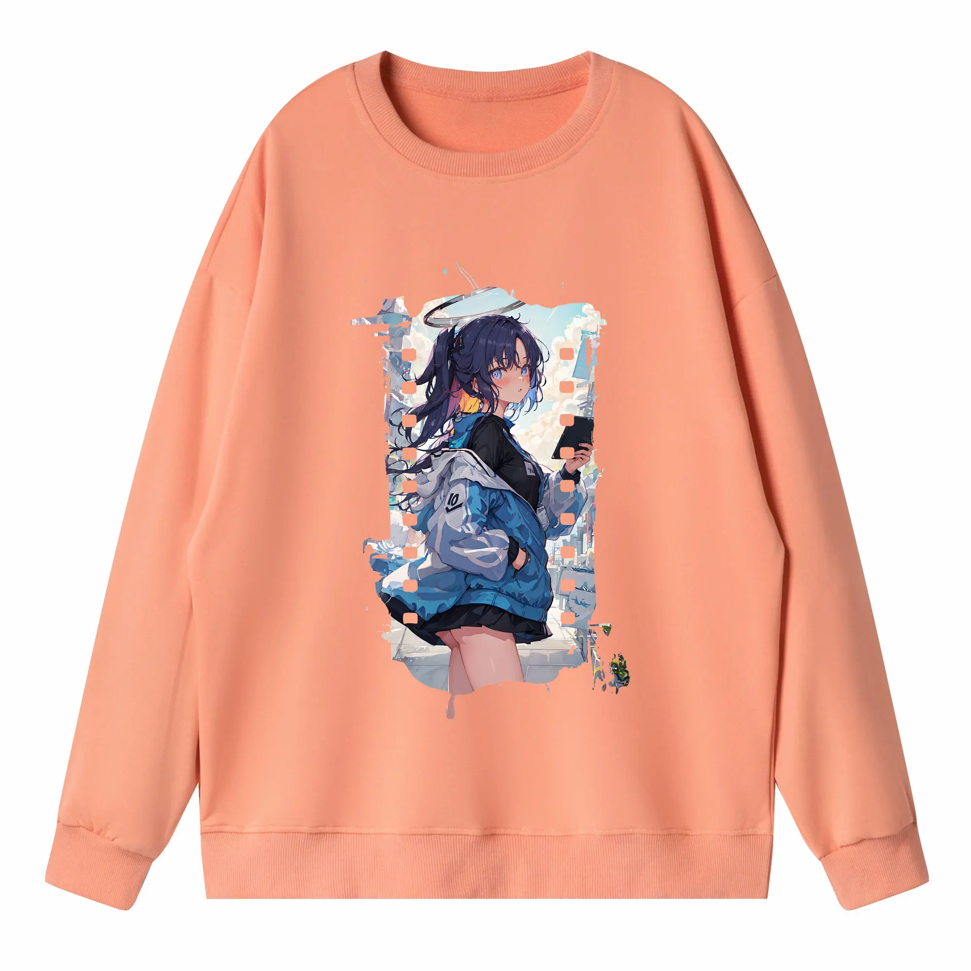 ブルーアーカイブ グッズ 早瀬 ユウカ - 高品質 クルーネック スウェット ・ コットン59% ポリエステル41% ・ ユニセックス 長袖 トレーナー ・ カジュアル デイリー スポーツ 散歩用