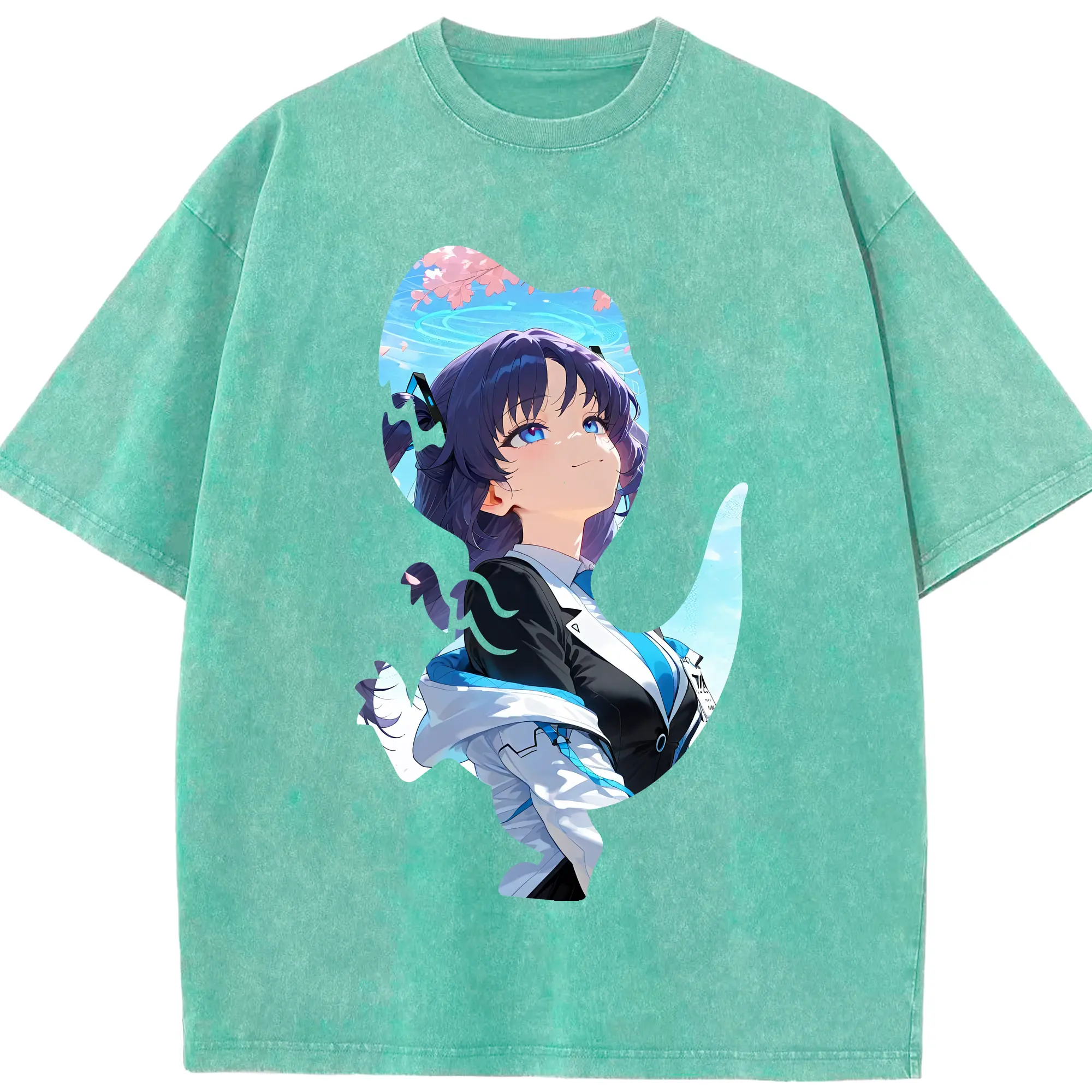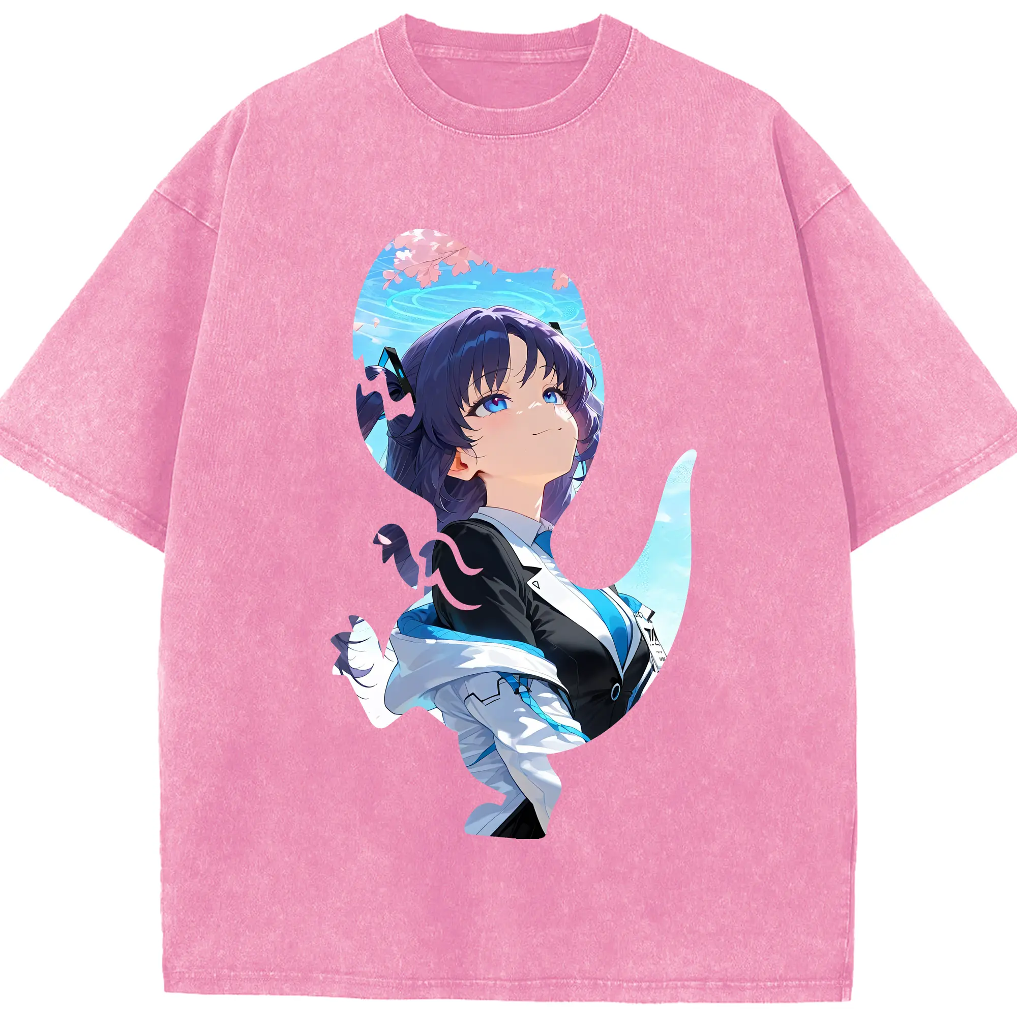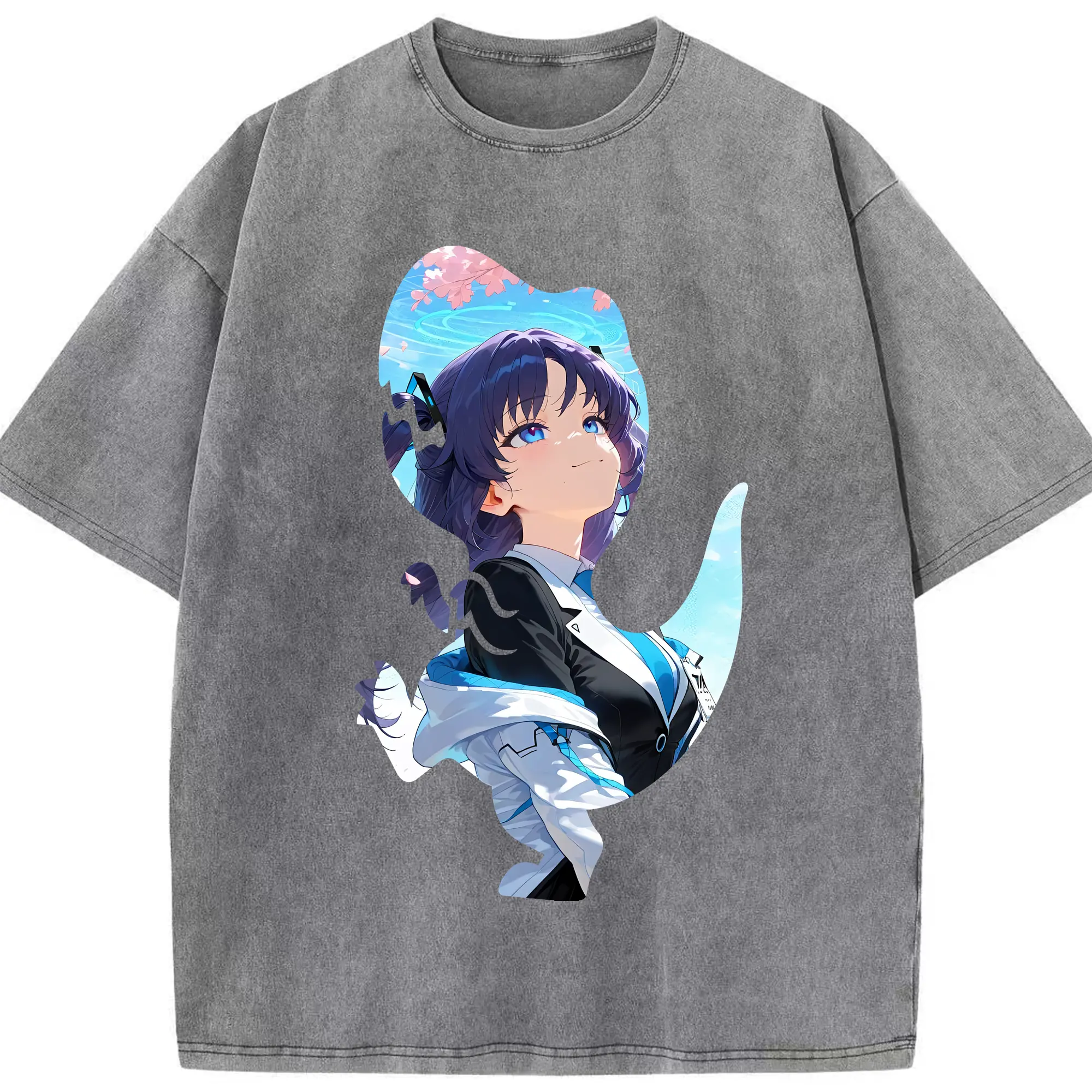 ブルーアーカイブ グッズ 早瀬 ユウカ - 綿100% ヴィンテージ風 半袖Tシャツ ・ 背面プリント ・ 柔らか肌触り ・ 通気性 快適 ・ スポーツ カジュアル 外出用