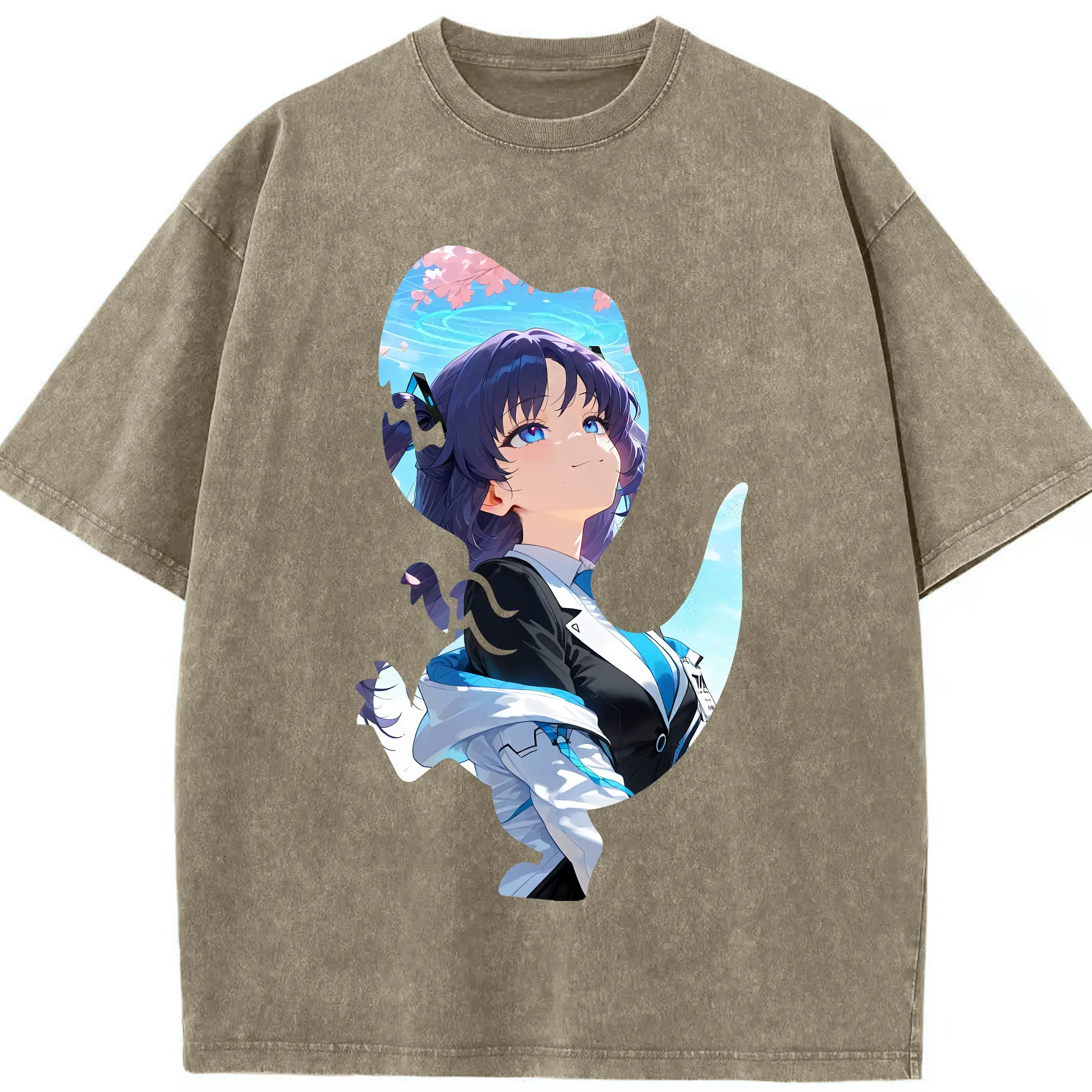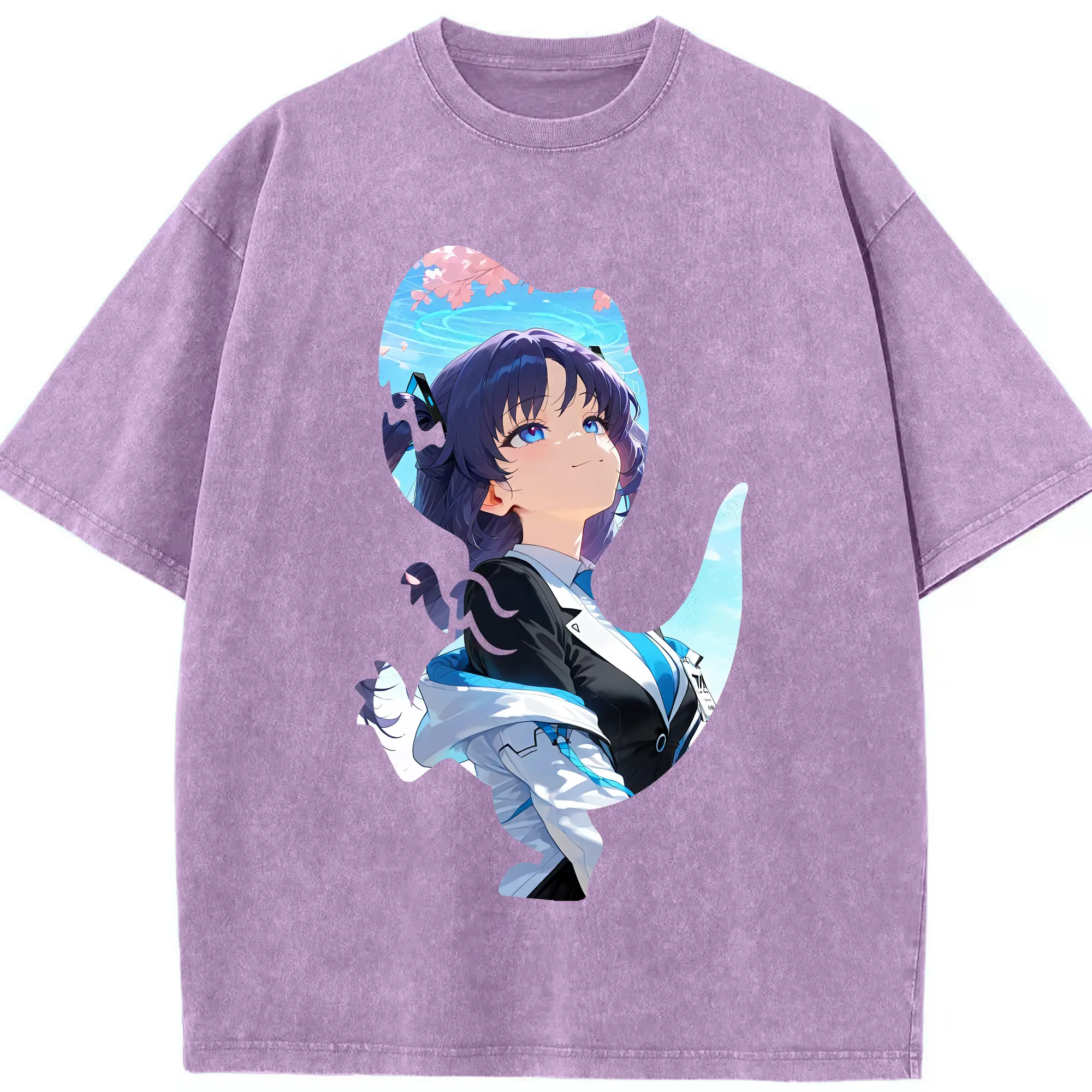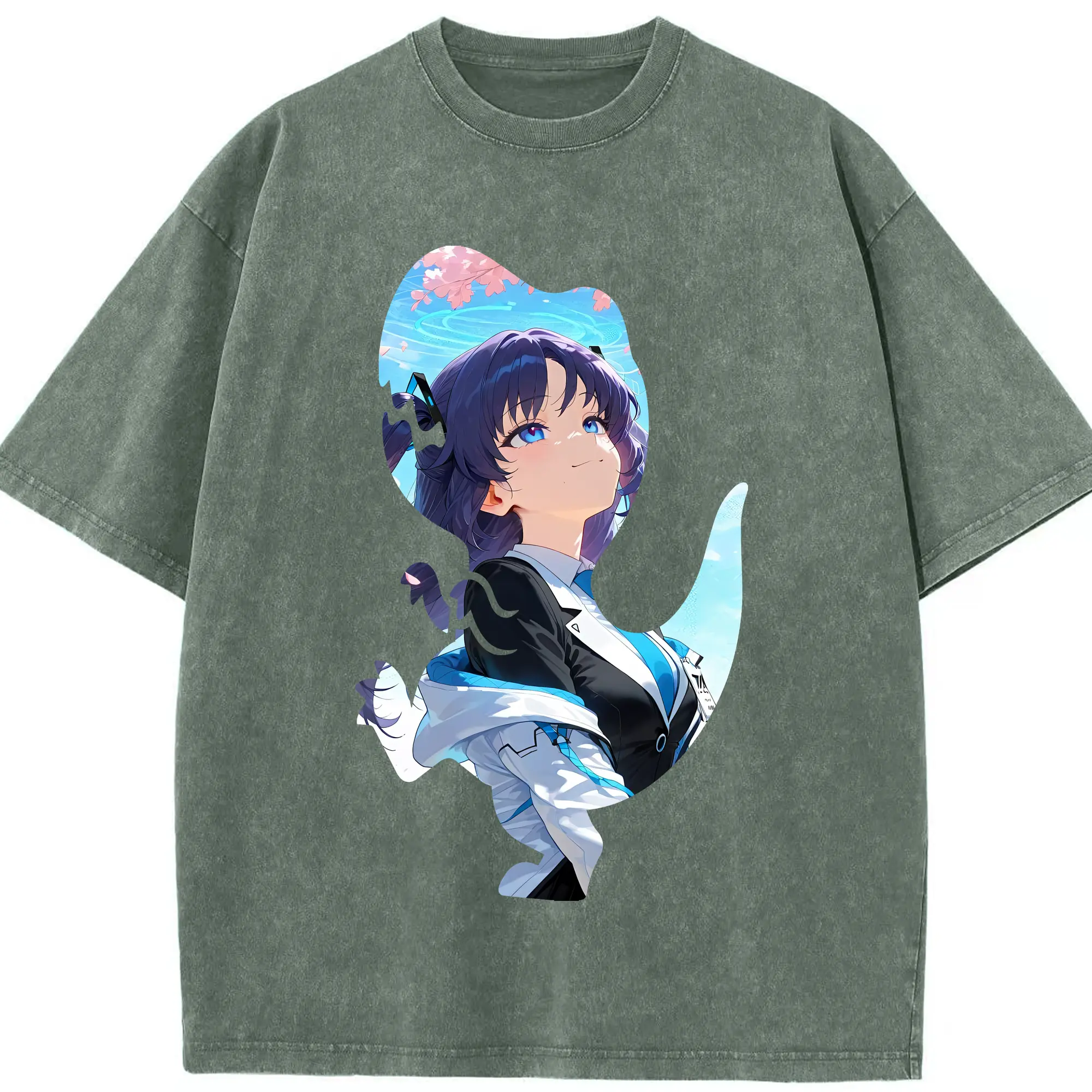 ブルーアーカイブ グッズ 早瀬 ユウカ - 綿100% ヴィンテージ風 半袖Tシャツ ・ 背面プリント ・ 柔らか肌触り ・ 通気性 快適 ・ スポーツ カジュアル 外出用