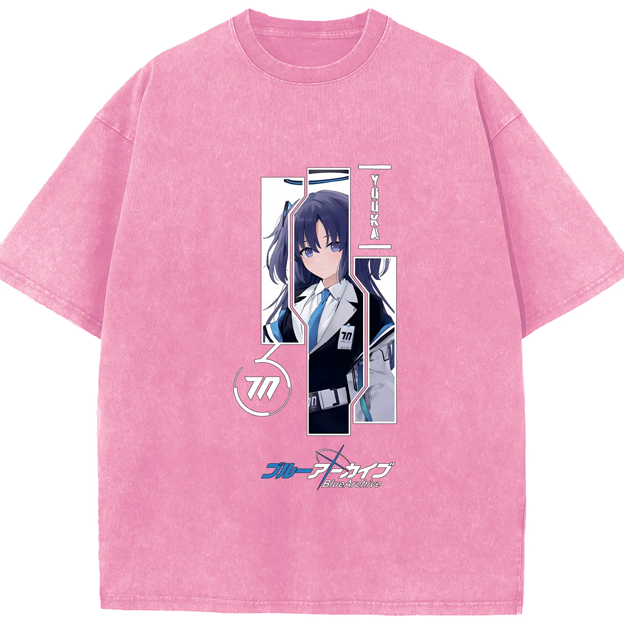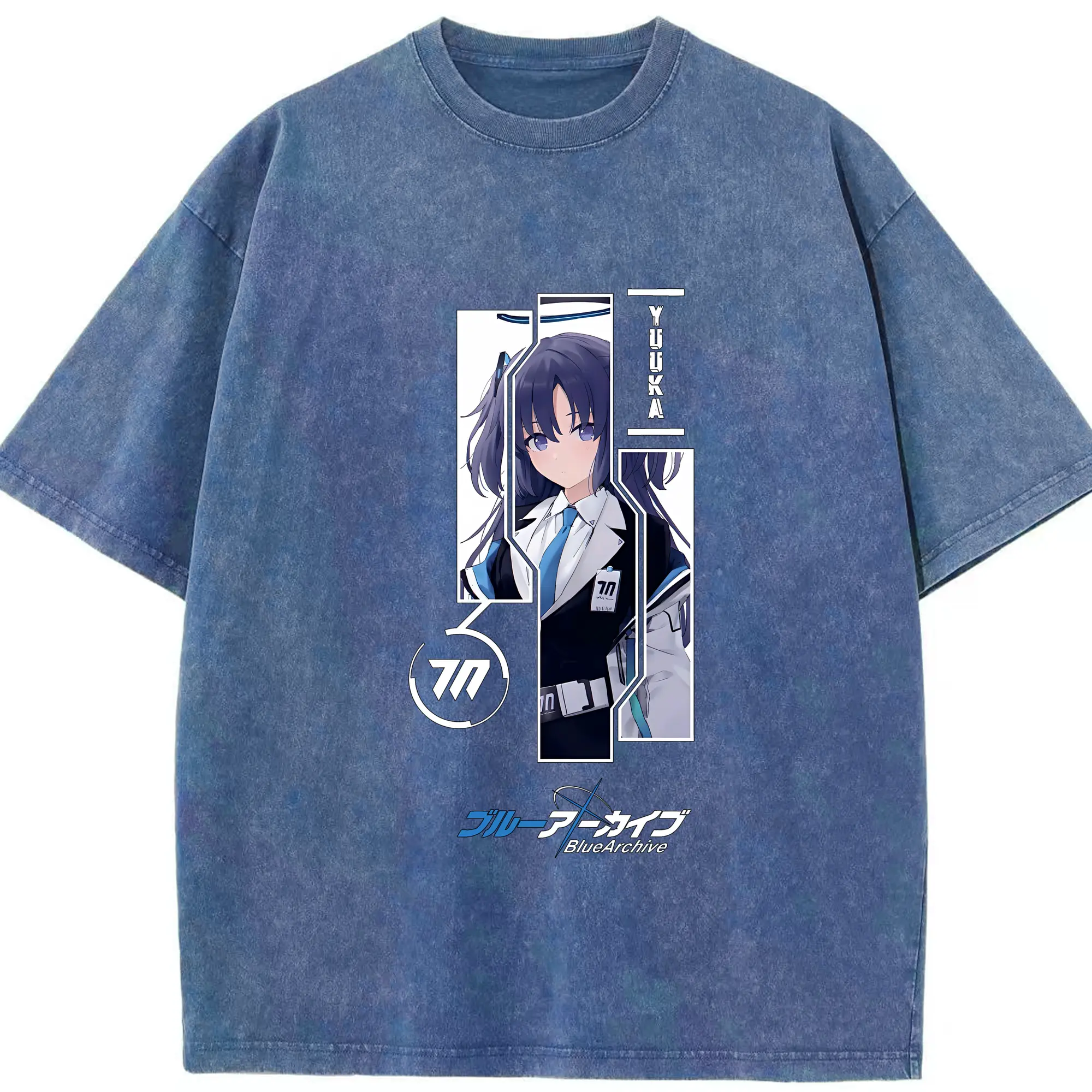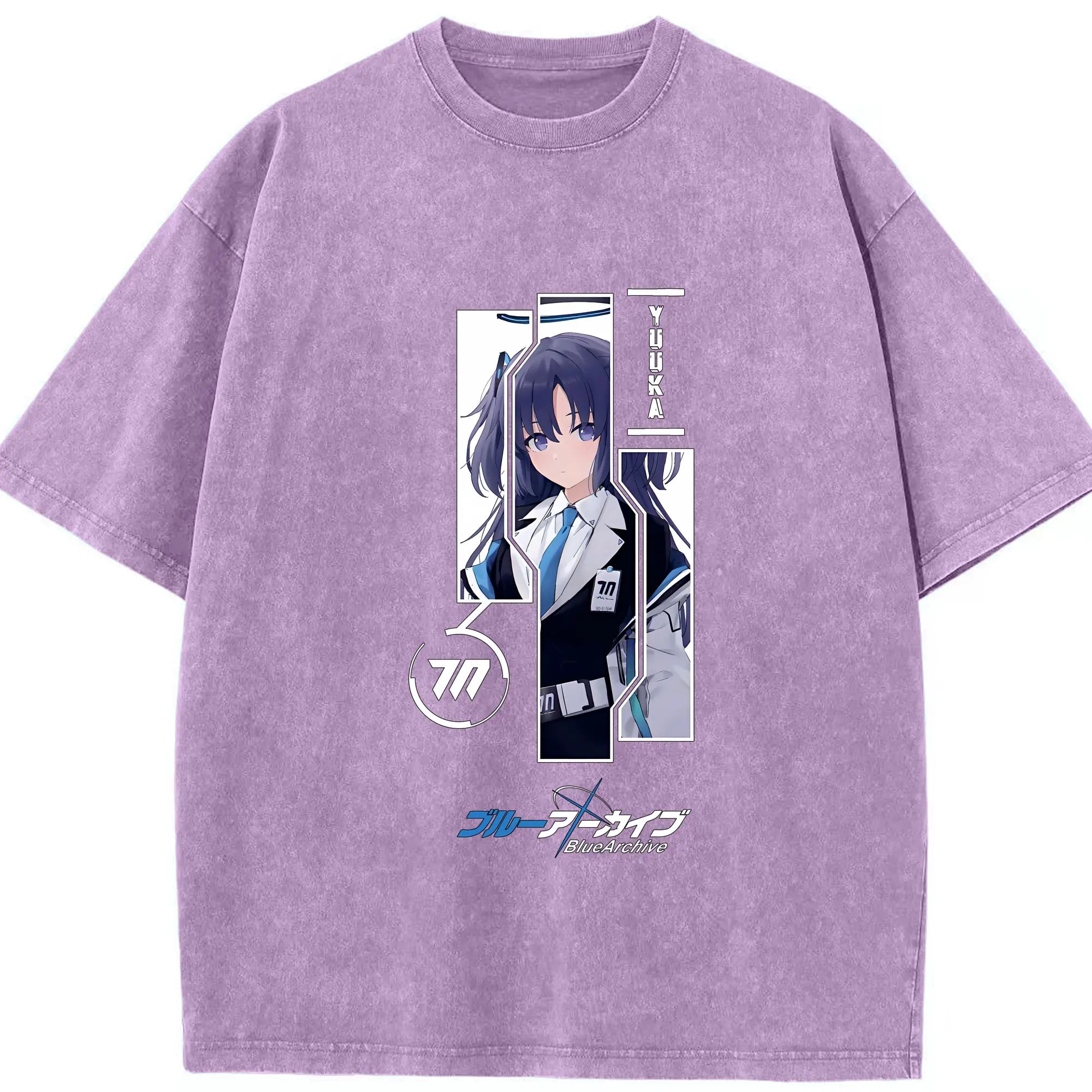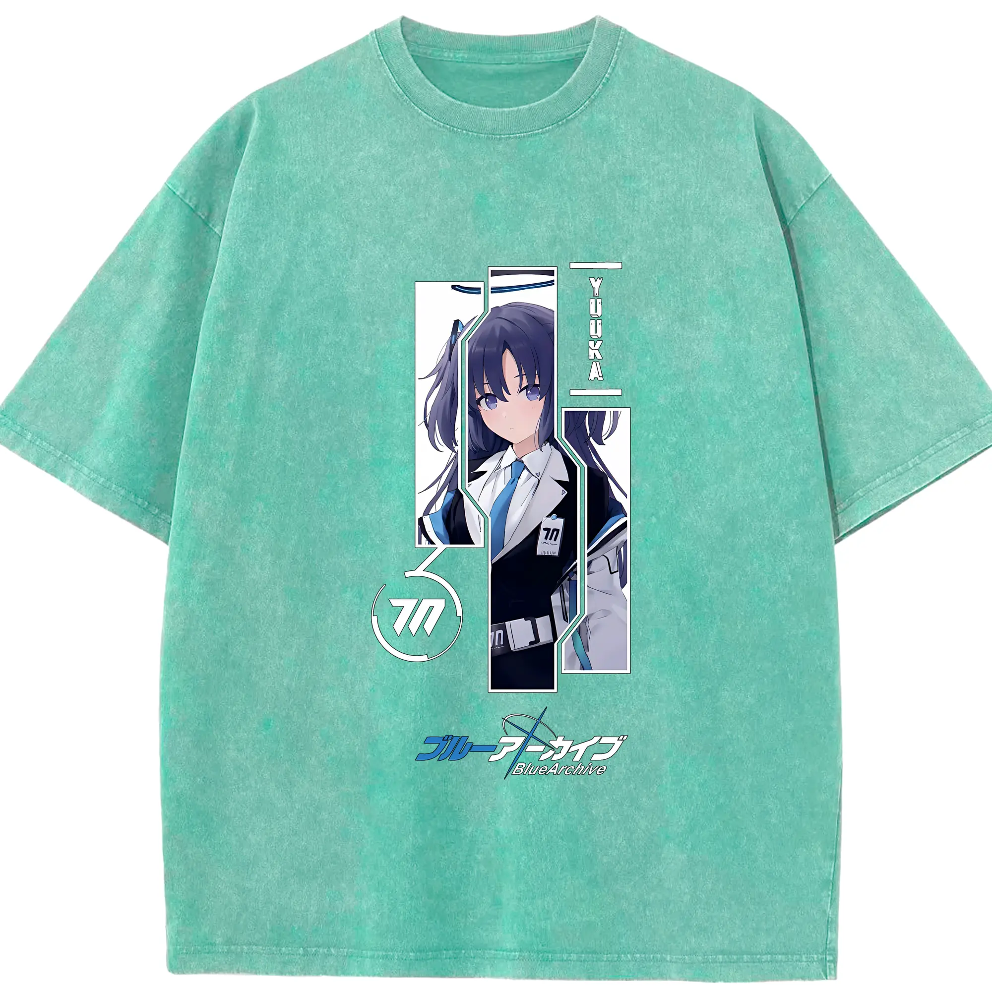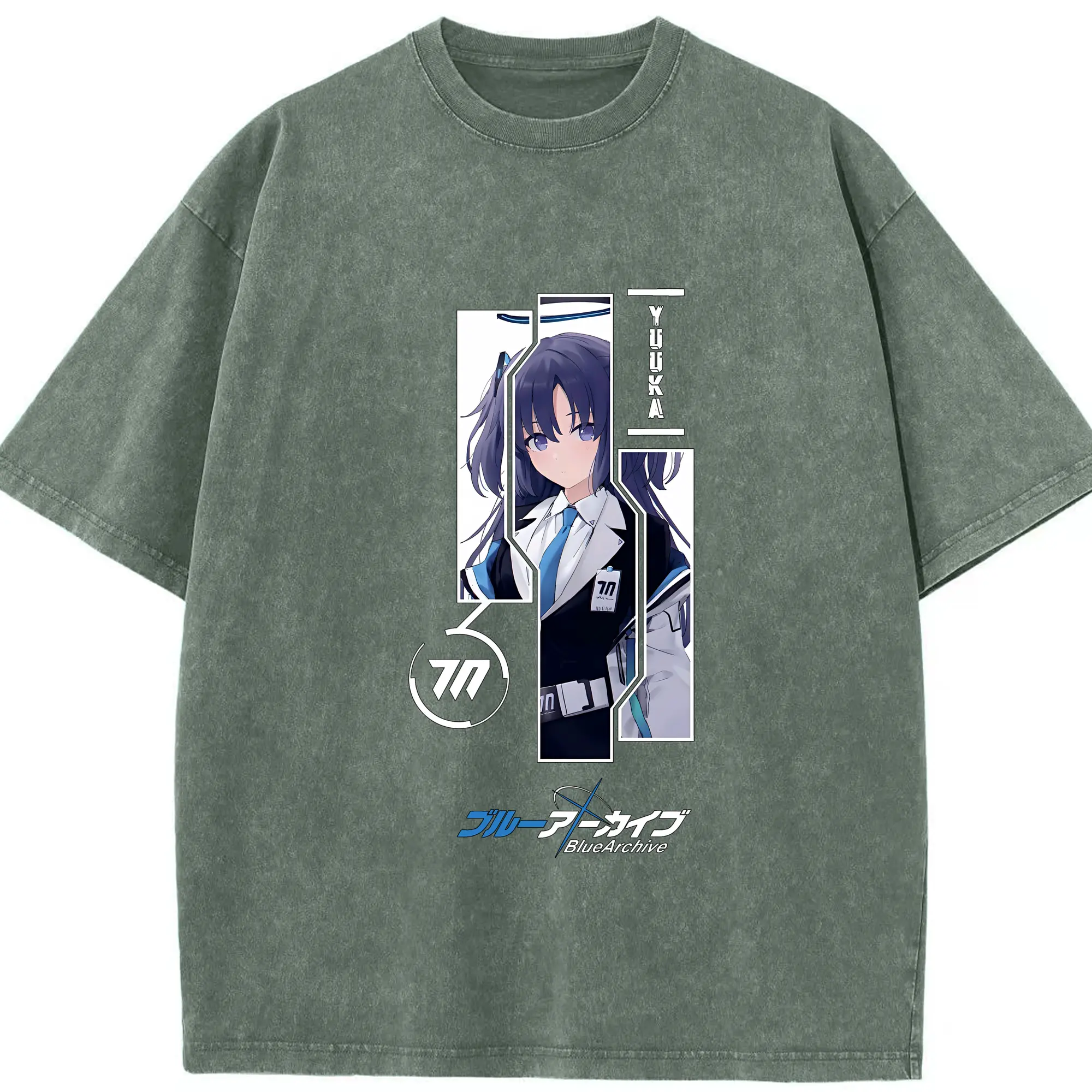 ブルーアーカイブ グッズ 早瀬 ユウカ - 綿100% ヴィンテージ風 半袖Tシャツ ・ 背面プリント ・ 柔らか肌触り ・ 通気性 快適 ・ スポーツ カジュアル 外出用