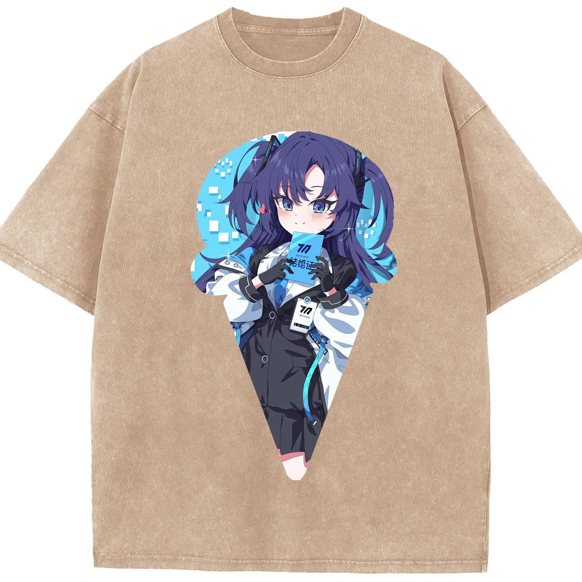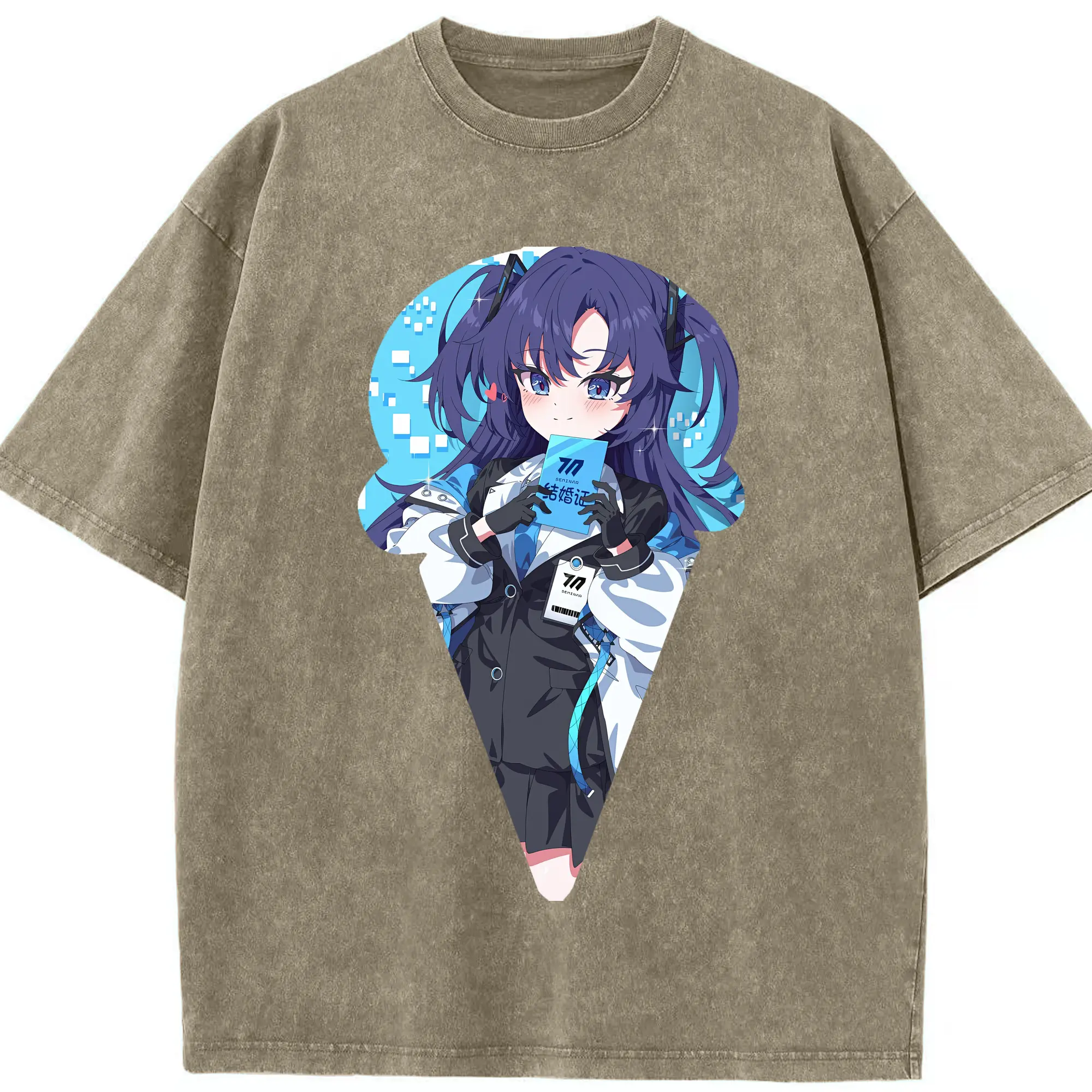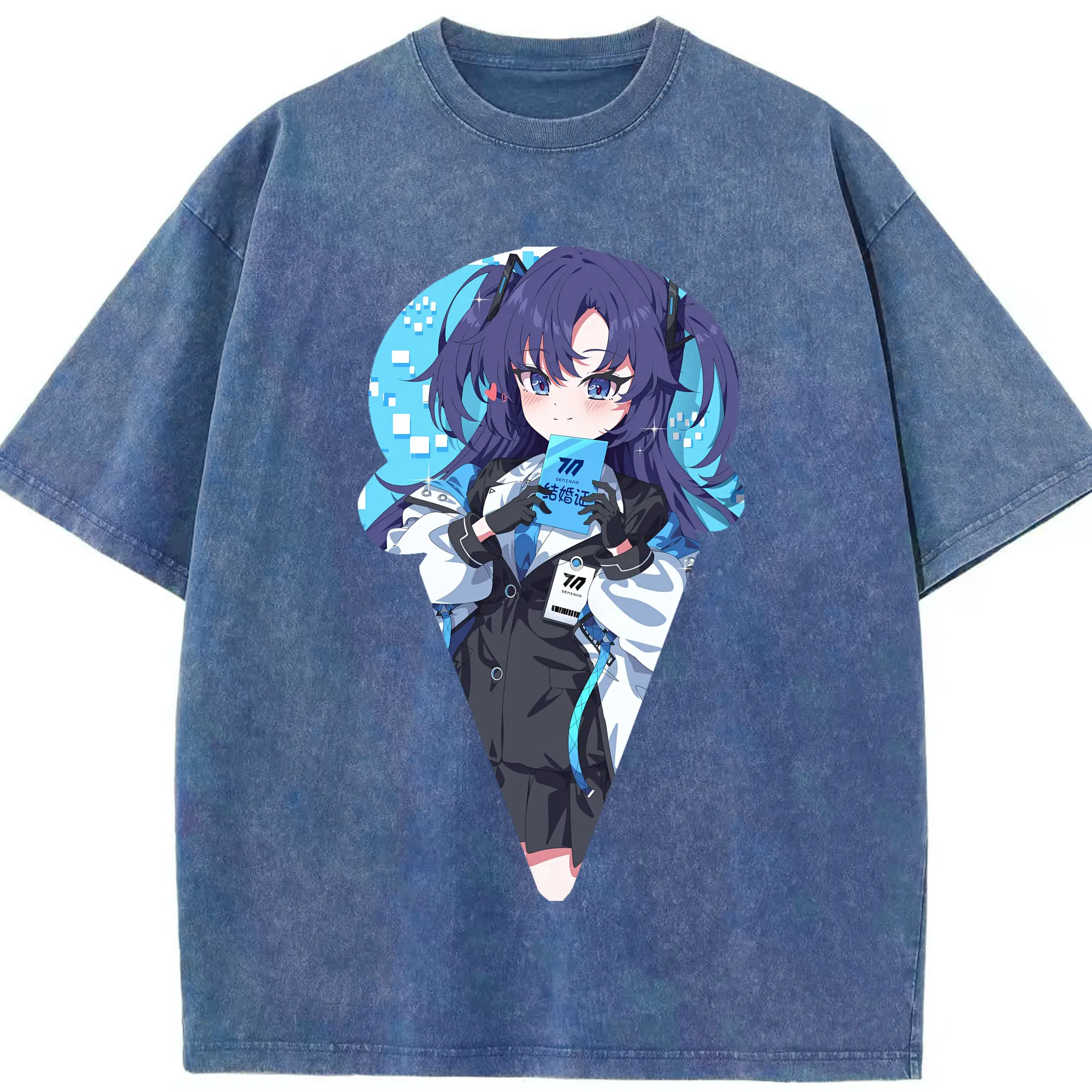 ブルーアーカイブ グッズ 早瀬 ユウカ - 綿100% ヴィンテージ風 半袖Tシャツ ・ 背面プリント ・ 柔らか肌触り ・ 通気性 快適 ・ スポーツ カジュアル 外出用