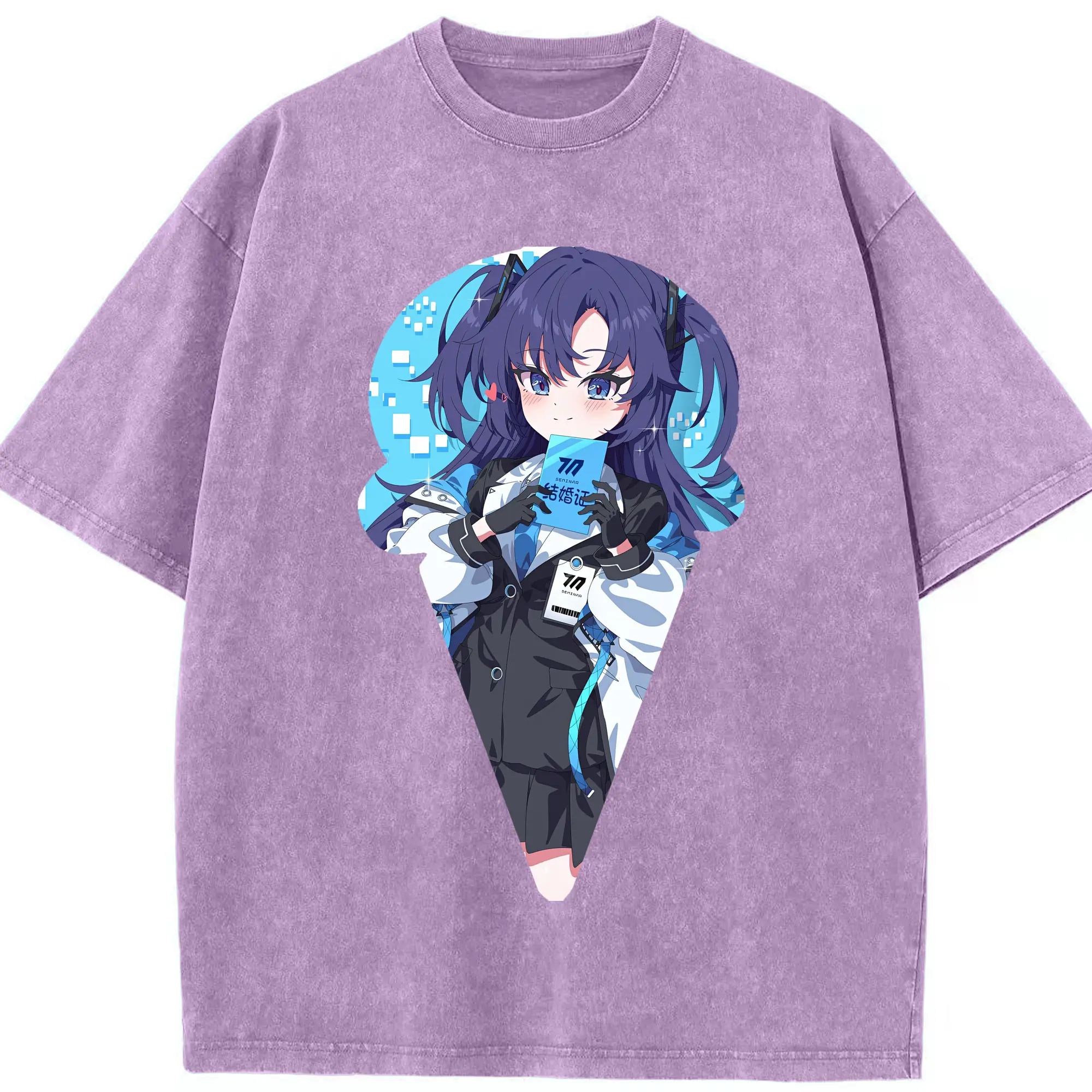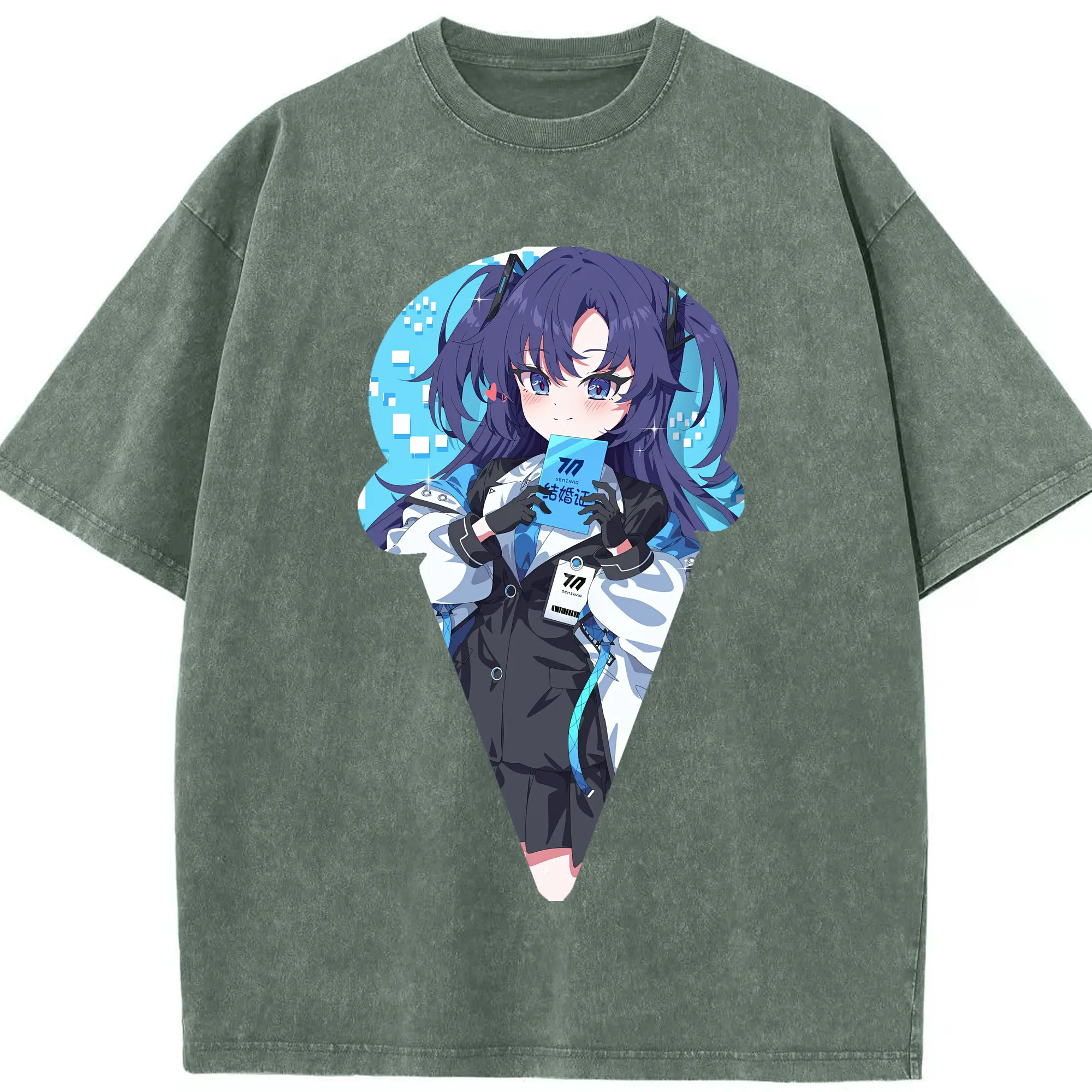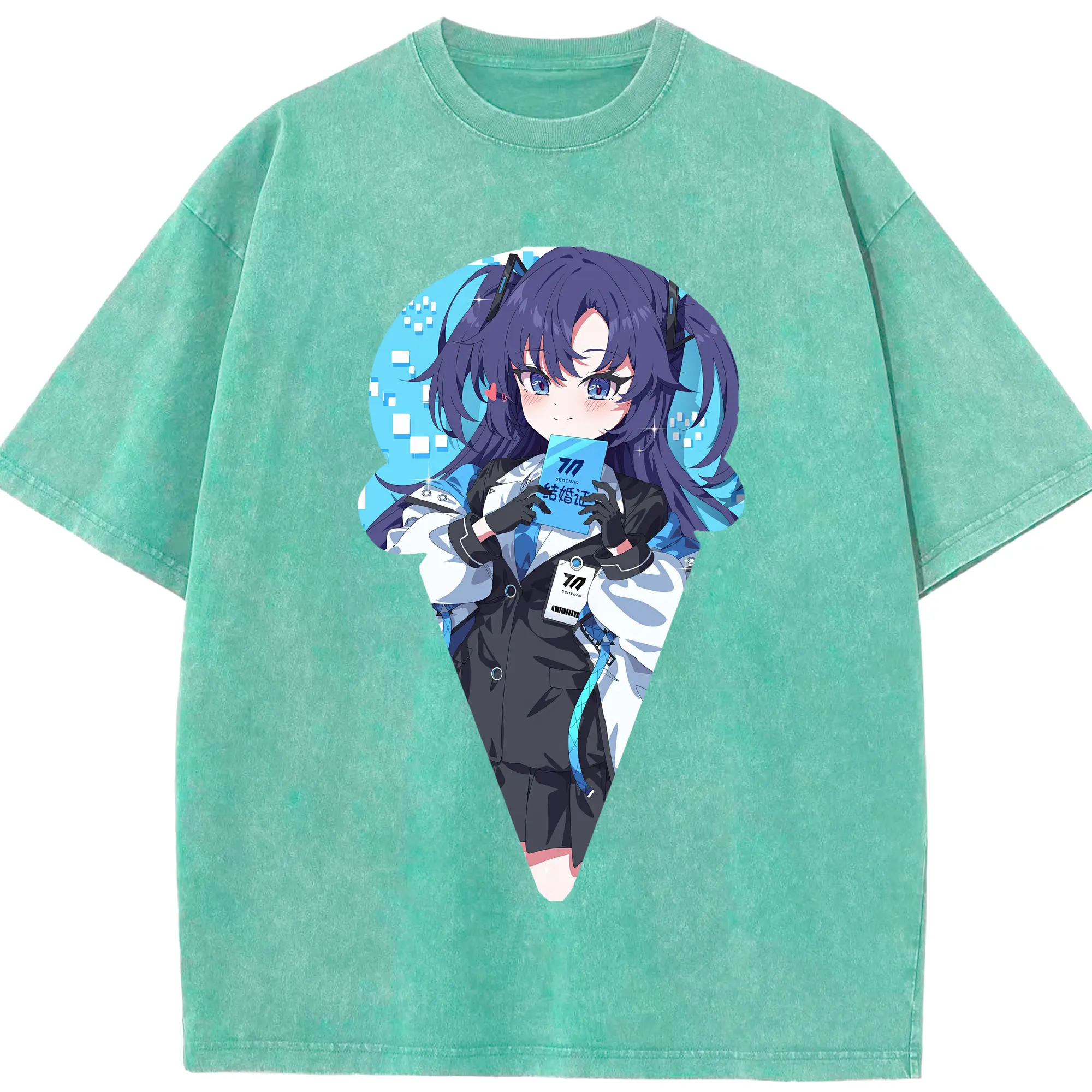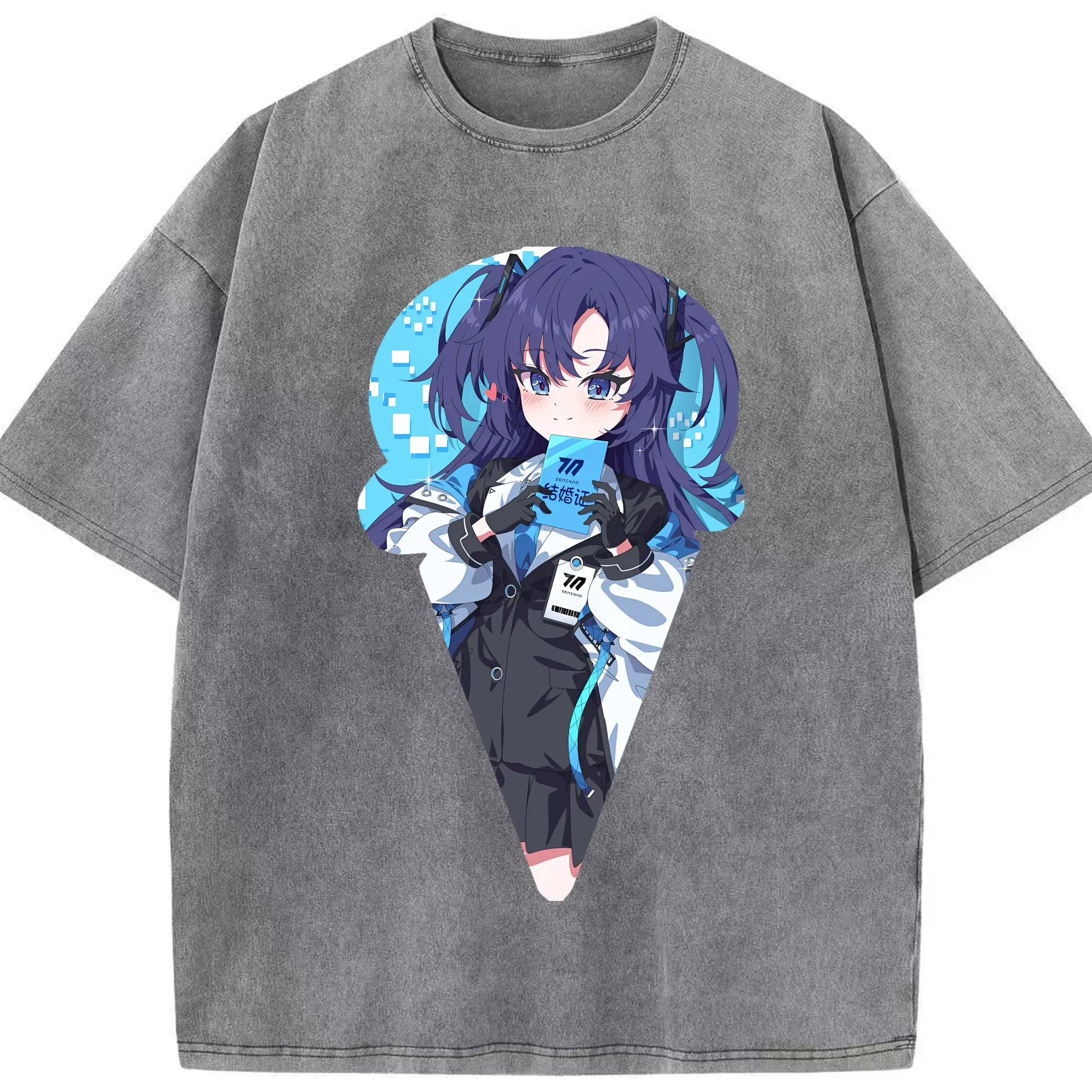 ブルーアーカイブ グッズ 早瀬 ユウカ - 綿100% ヴィンテージ風 半袖Tシャツ ・ 背面プリント ・ 柔らか肌触り ・ 通気性 快適 ・ スポーツ カジュアル 外出用