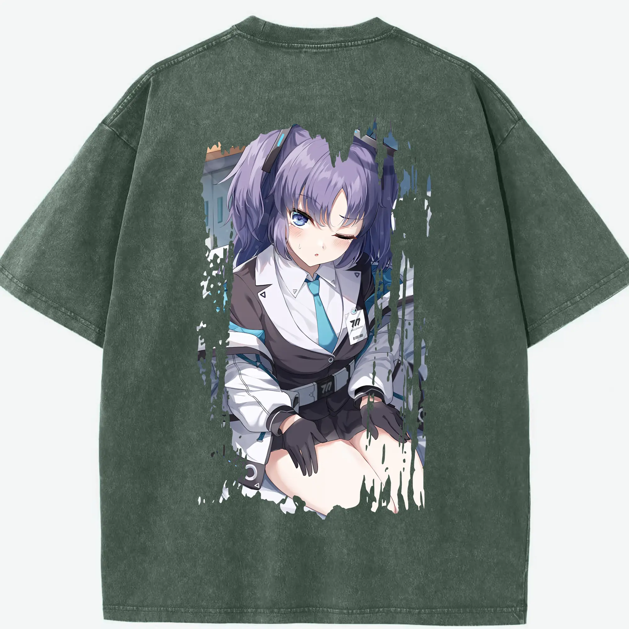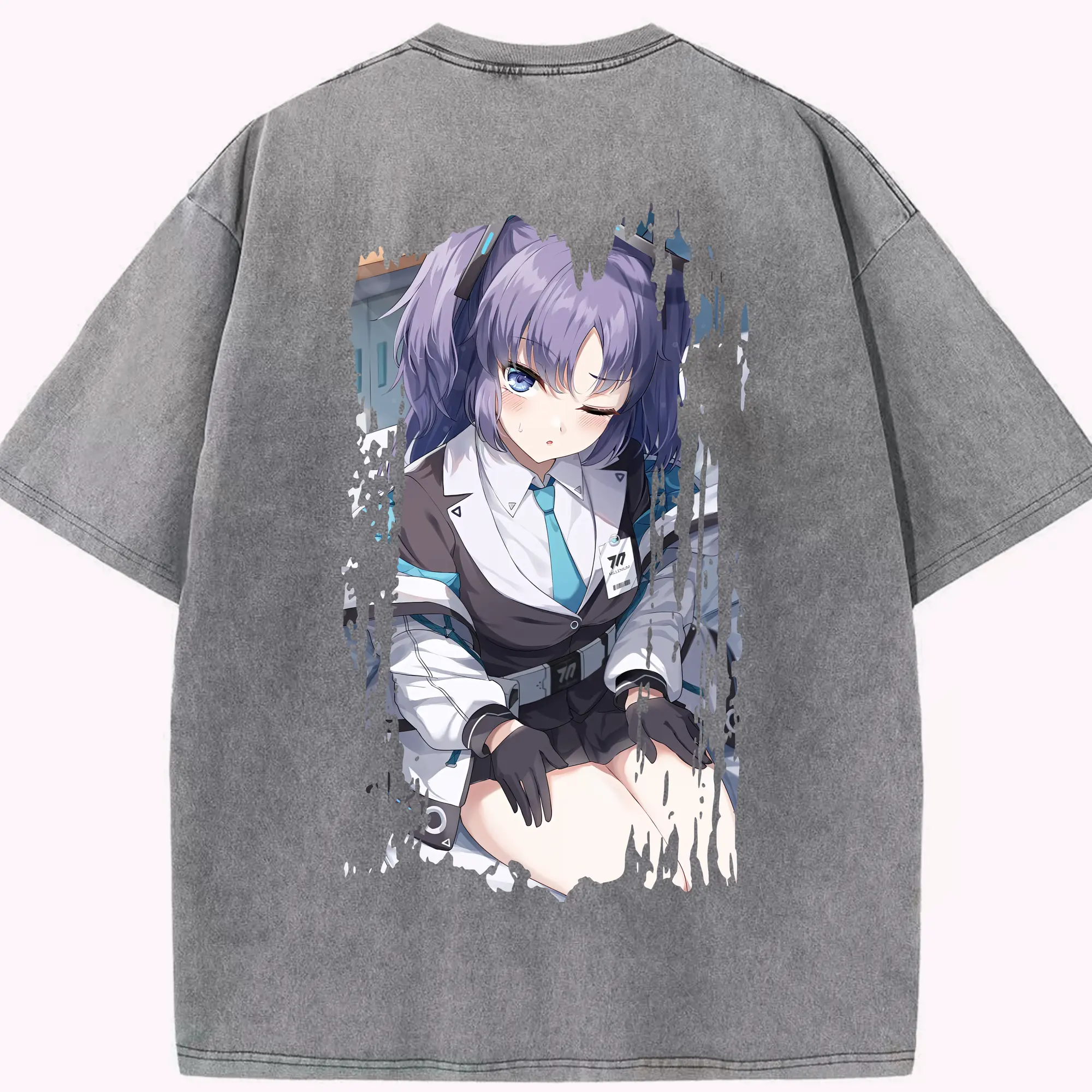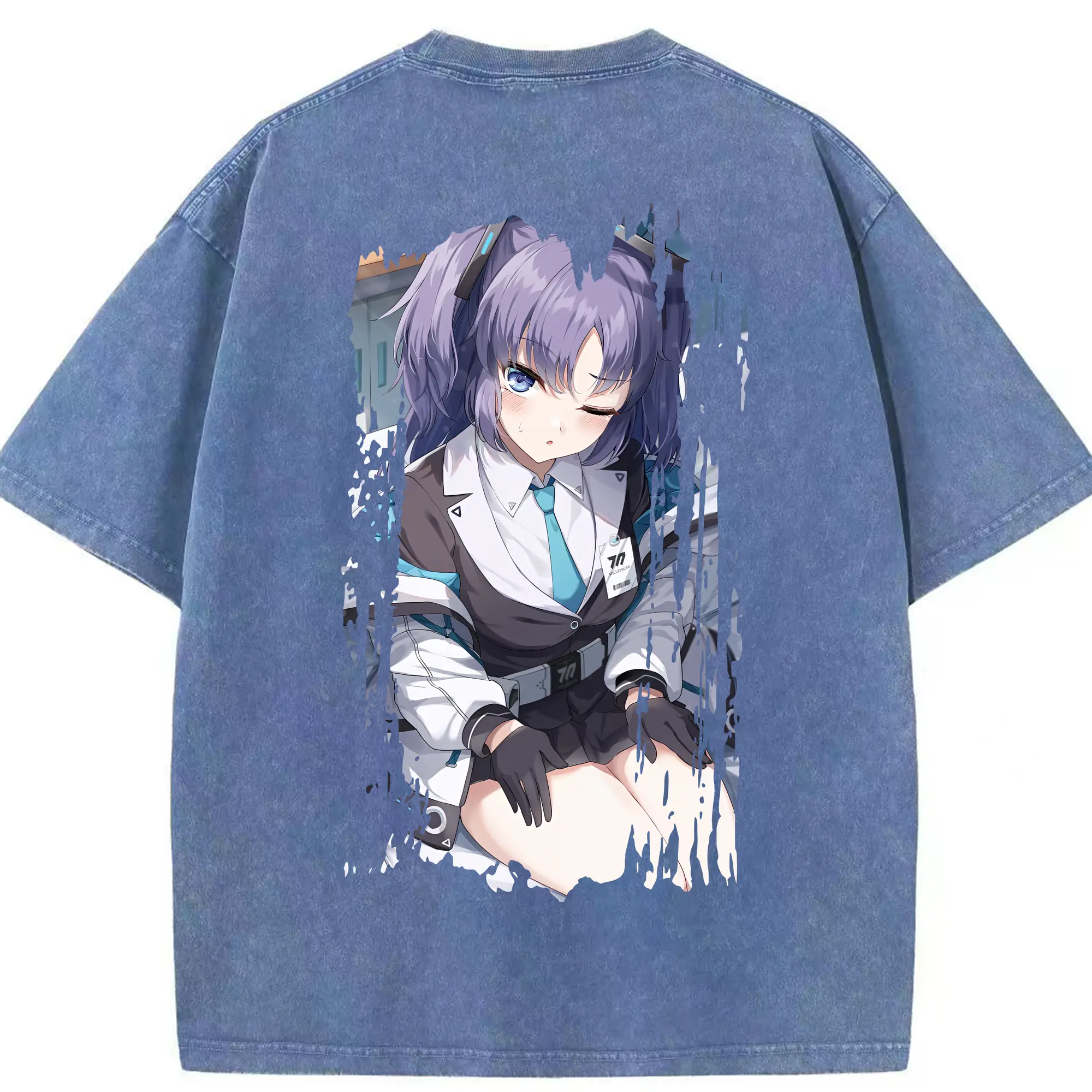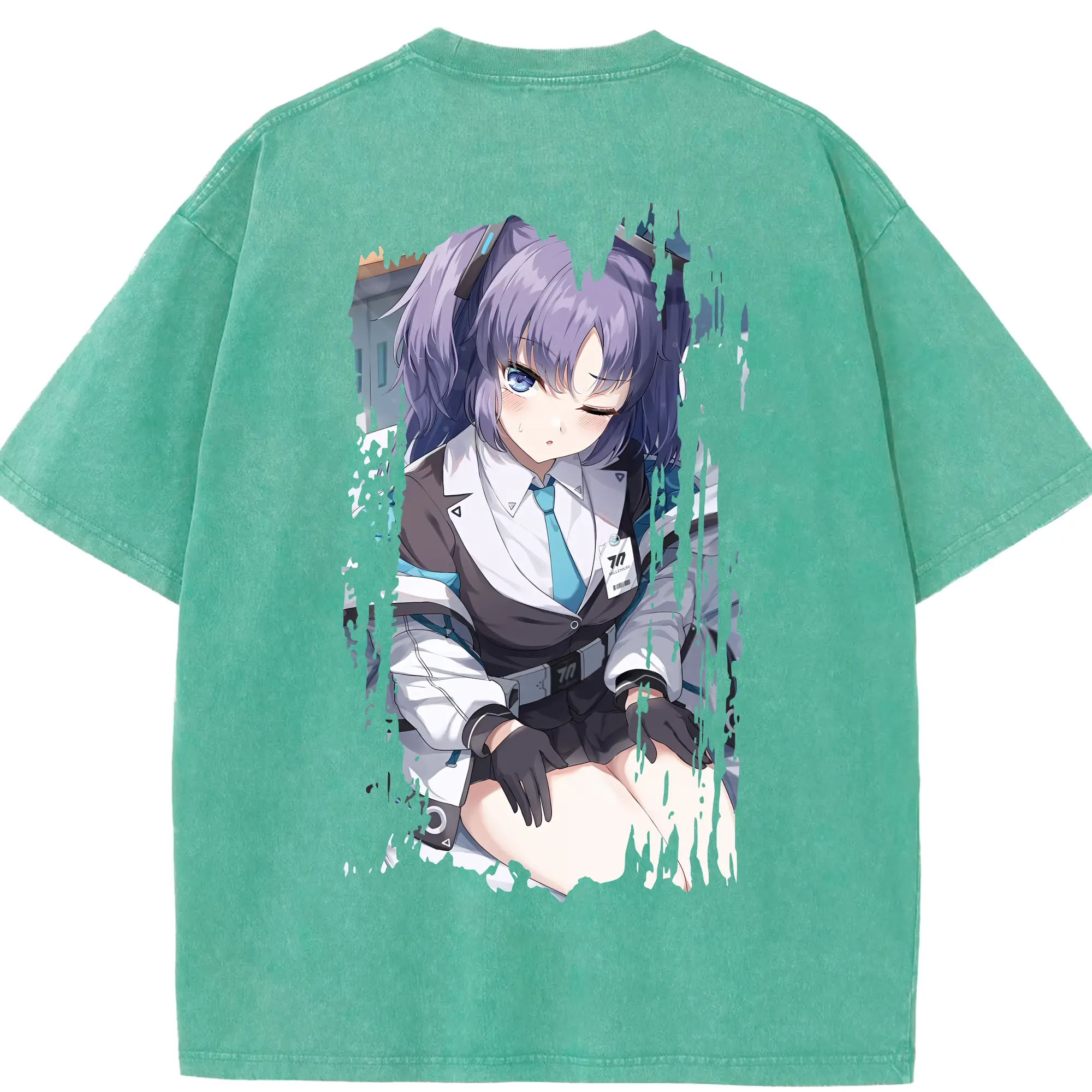 ブルーアーカイブ グッズ 早瀬 ユウカ - 綿100% ヴィンテージ風 半袖Tシャツ ・ フロントプリント ・ 柔らか肌触り ・ 通気性 快適 ・ スポーツ カジュアル 外出用