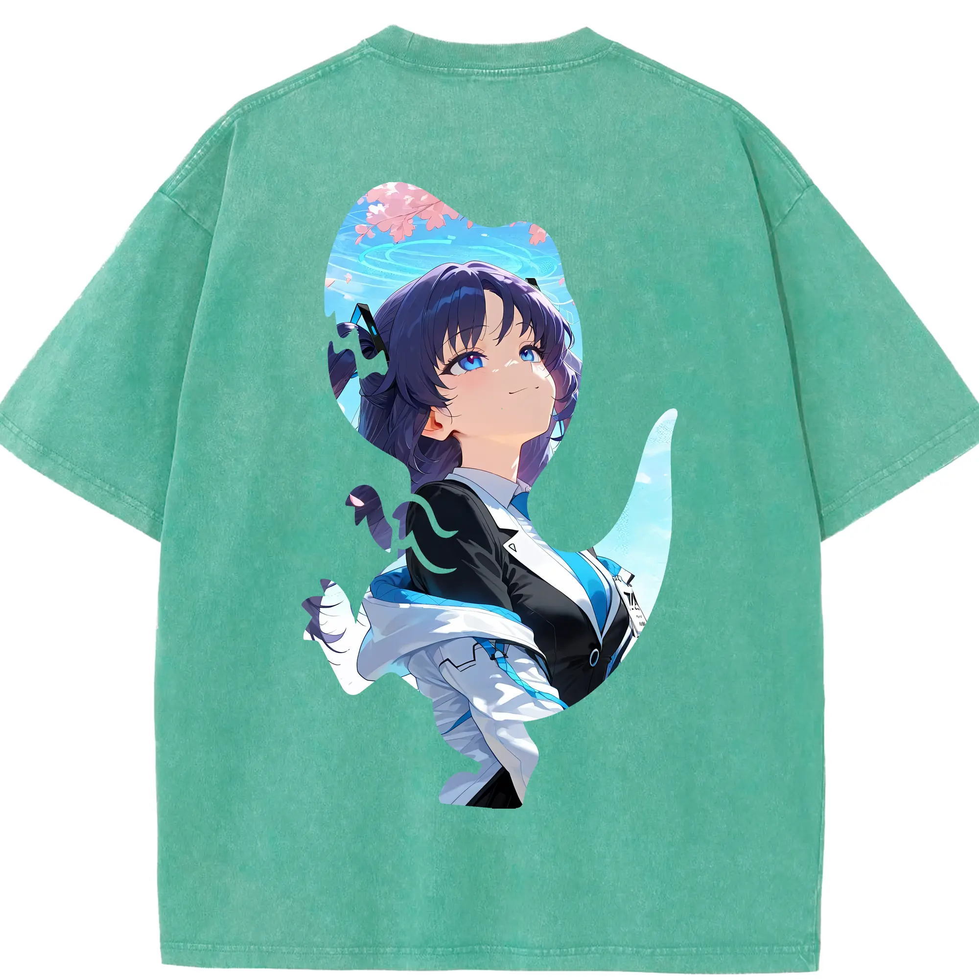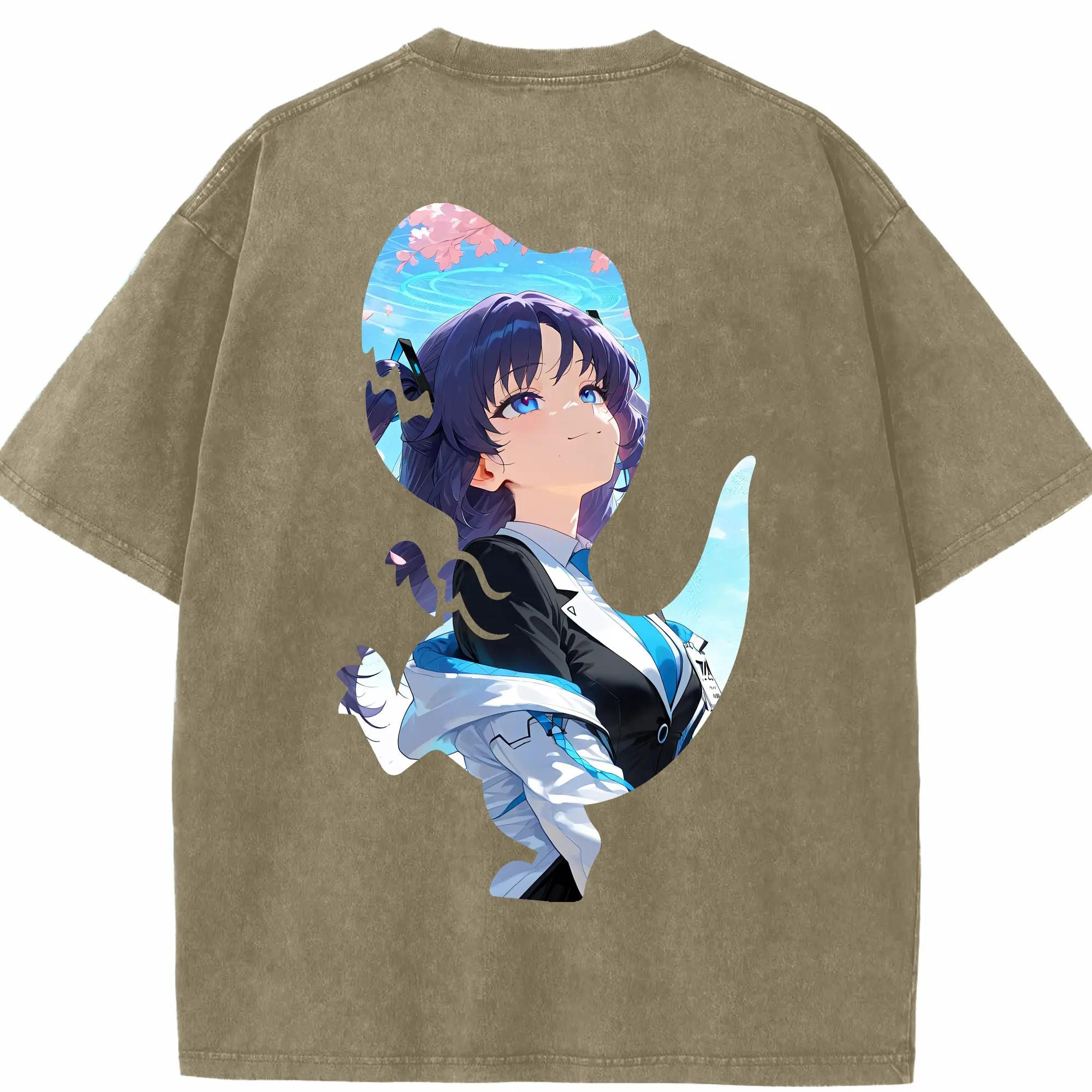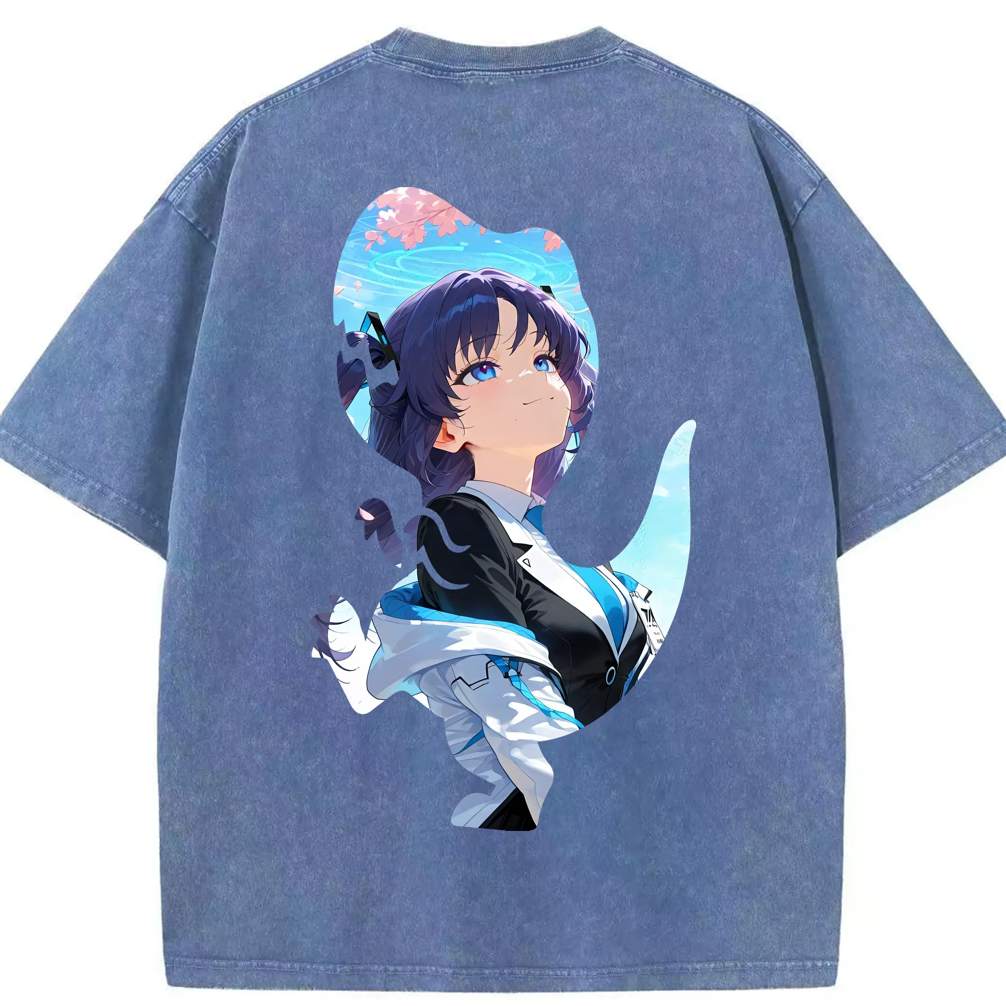 ブルーアーカイブ グッズ 早瀬 ユウカ - 綿100% ヴィンテージ風 半袖Tシャツ ・ フロントプリント ・ 柔らか肌触り ・ 通気性 快適 ・ スポーツ カジュアル 外出用