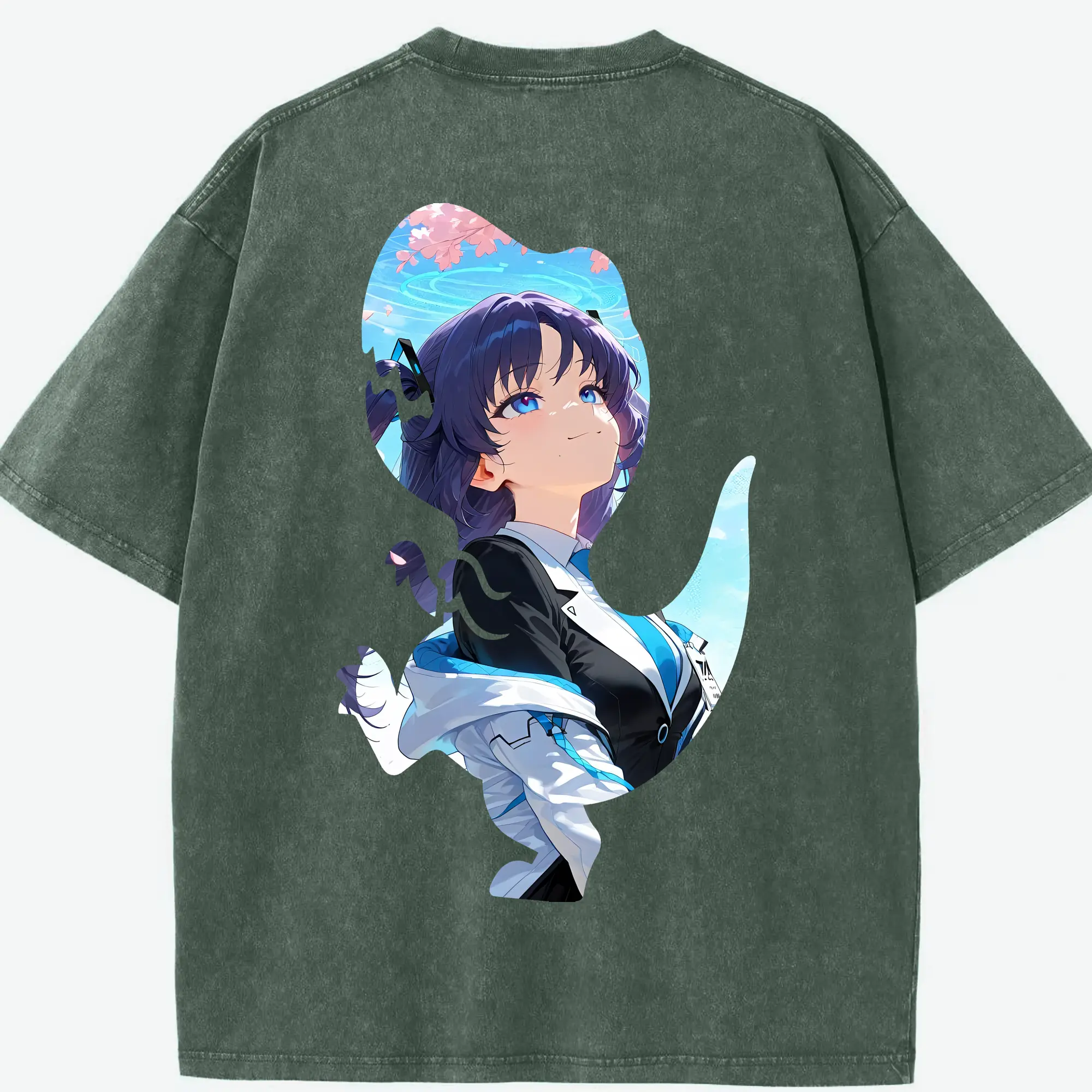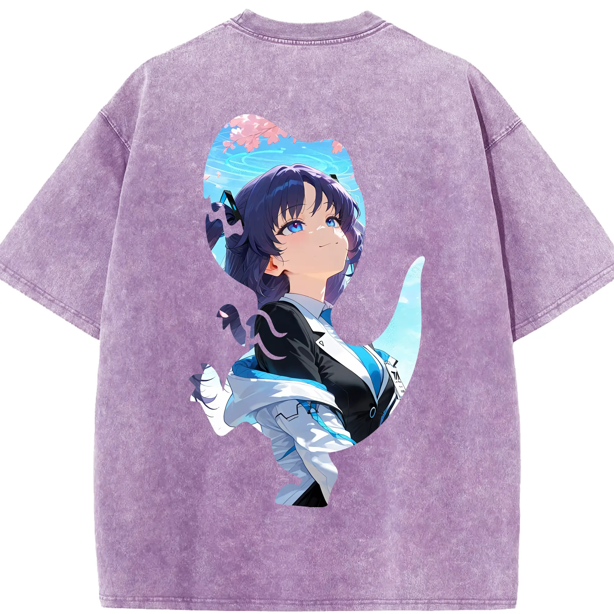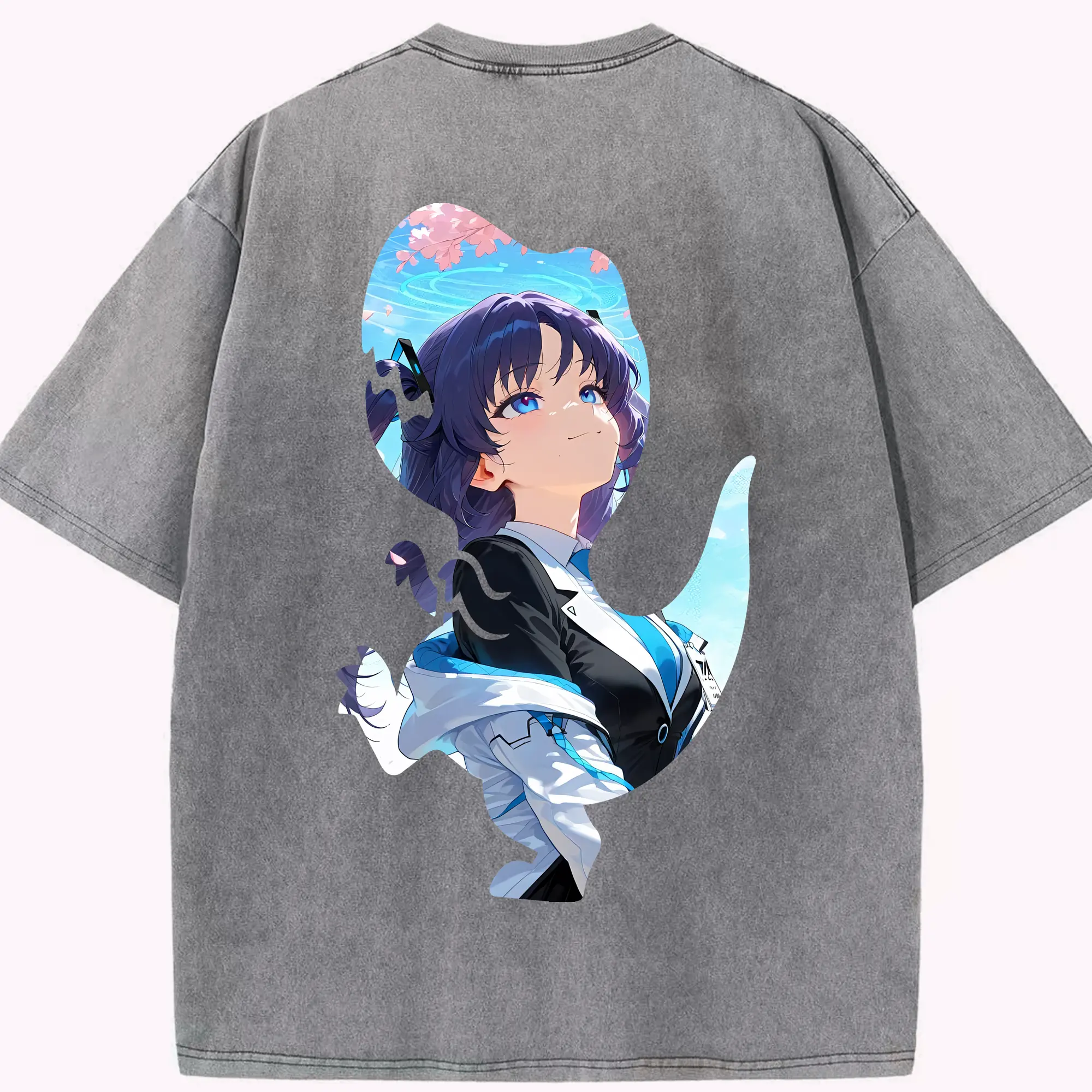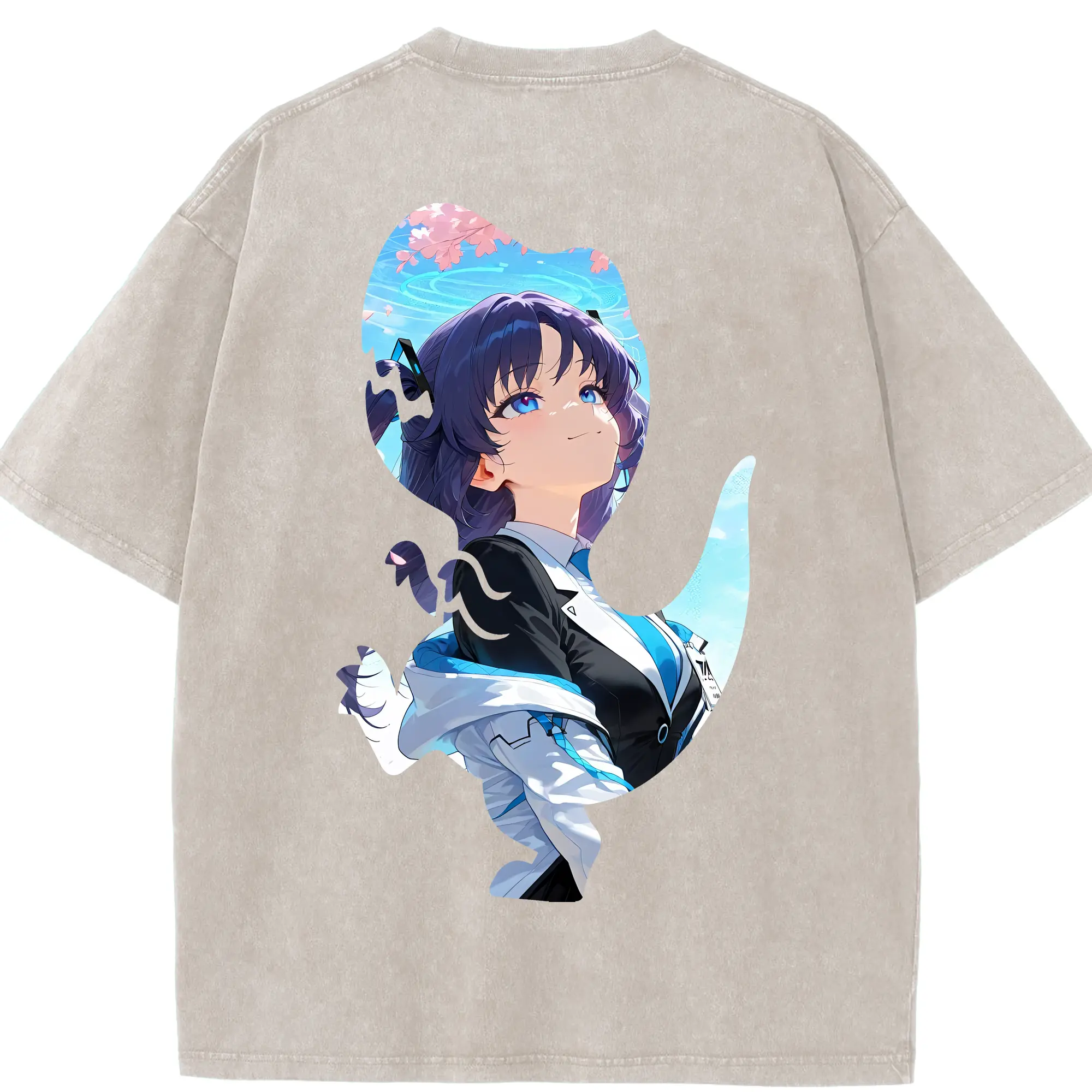 ブルーアーカイブ グッズ 早瀬 ユウカ - 綿100% ヴィンテージ風 半袖Tシャツ ・ フロントプリント ・ 柔らか肌触り ・ 通気性 快適 ・ スポーツ カジュアル 外出用