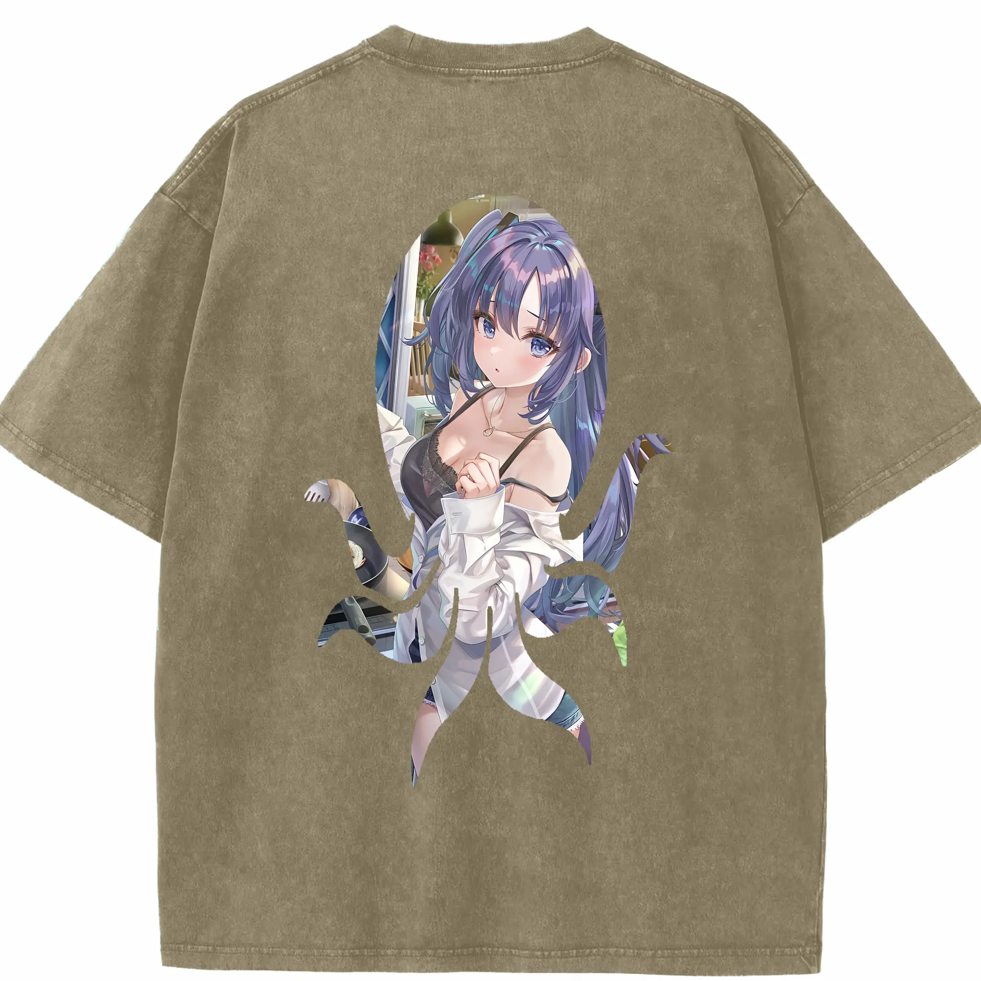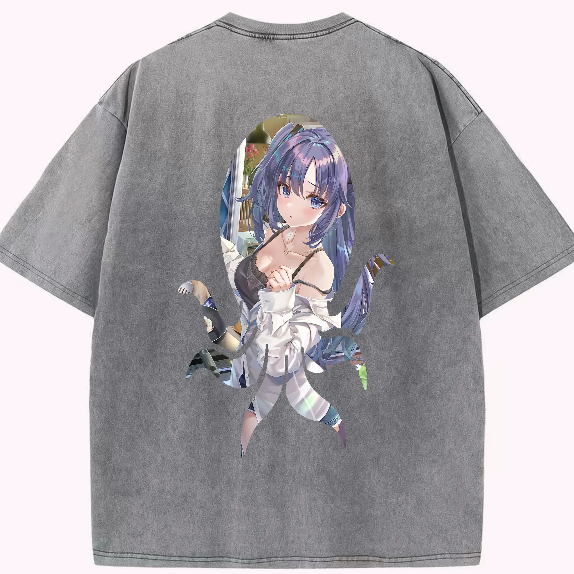 ブルーアーカイブ グッズ 早瀬 ユウカ - 綿100% ヴィンテージ風 半袖Tシャツ ・ フロントプリント ・ 柔らか肌触り ・ 通気性 快適 ・ スポーツ カジュアル 外出用