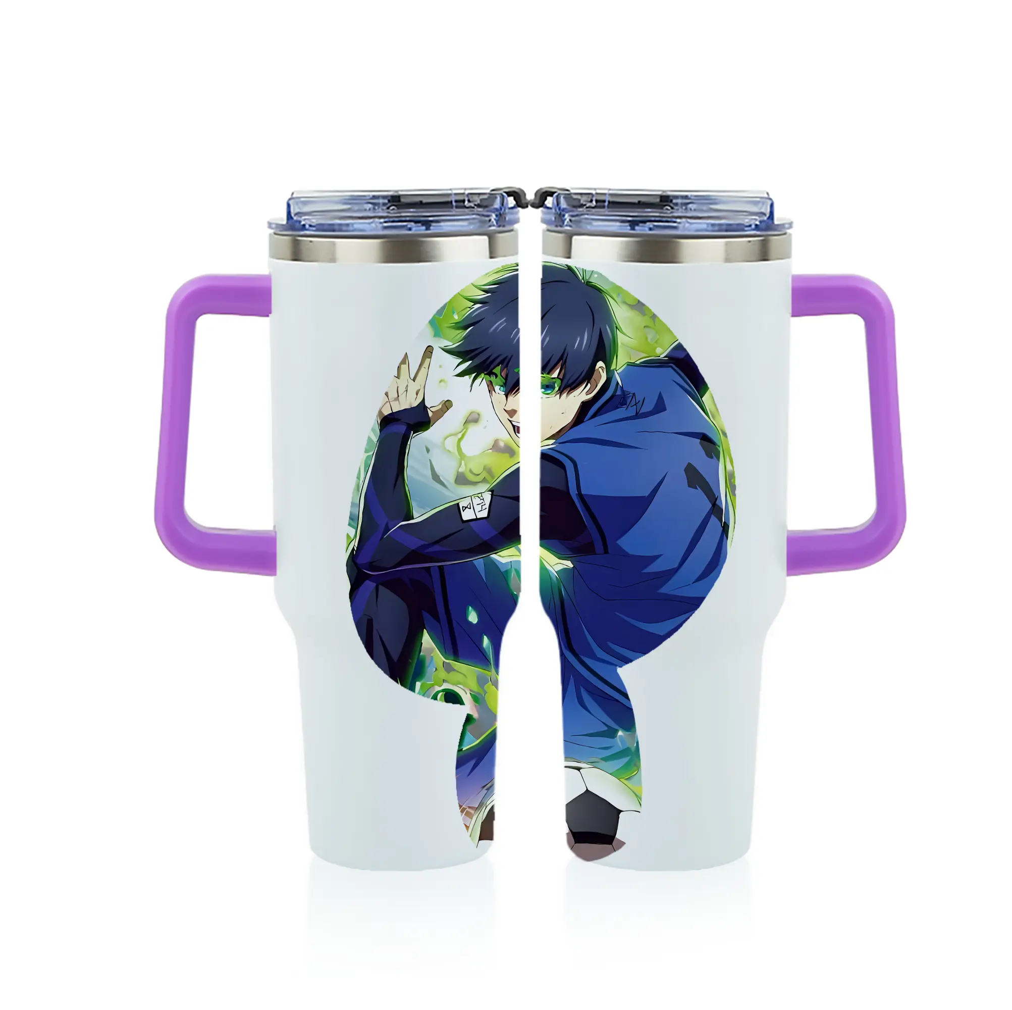 ブルーロック グッズ 潔 世一 - 1200mL フルプリント車用タンブラー ・ 304ステンレス 内側 ・ 201ステンレス 外側 ・ 保温 保冷 ・ 通勤 ドライブ アウトドア用