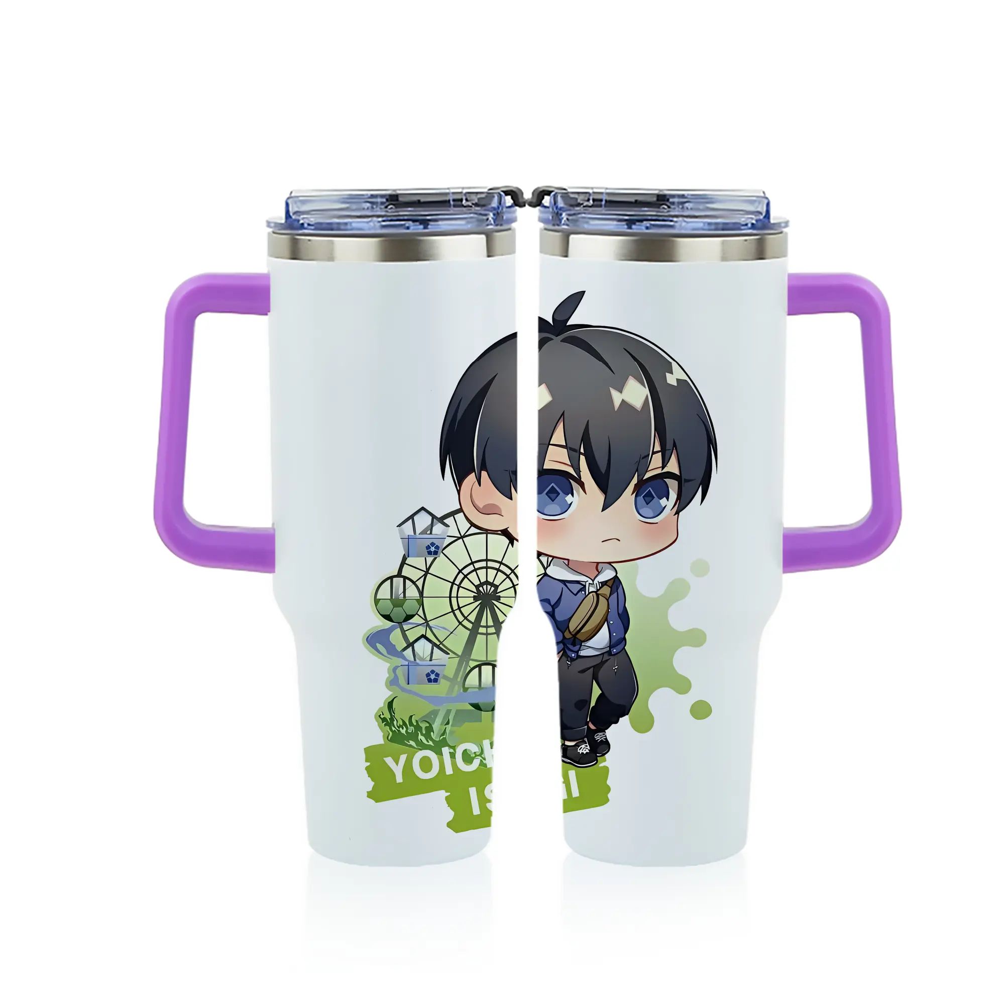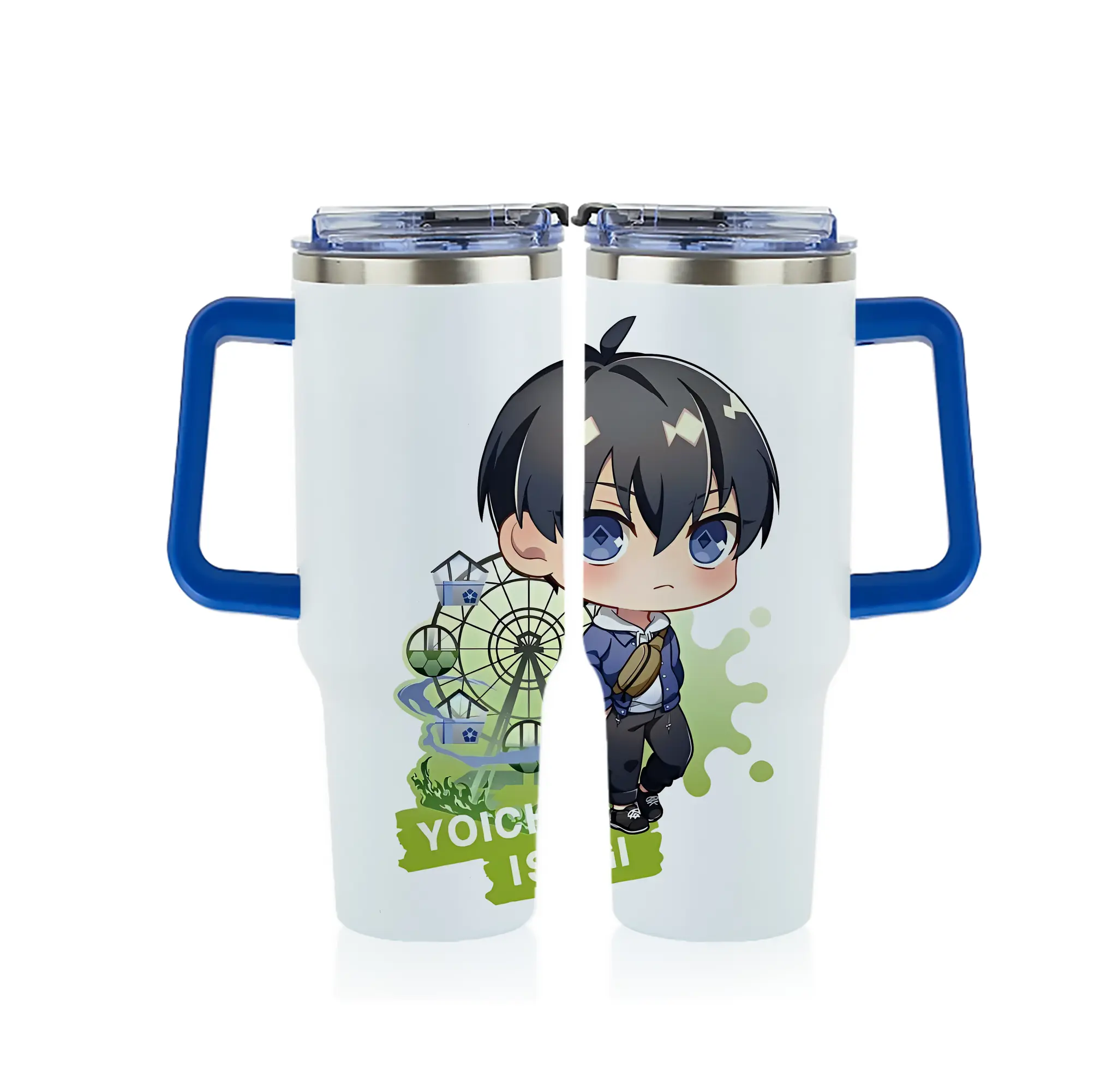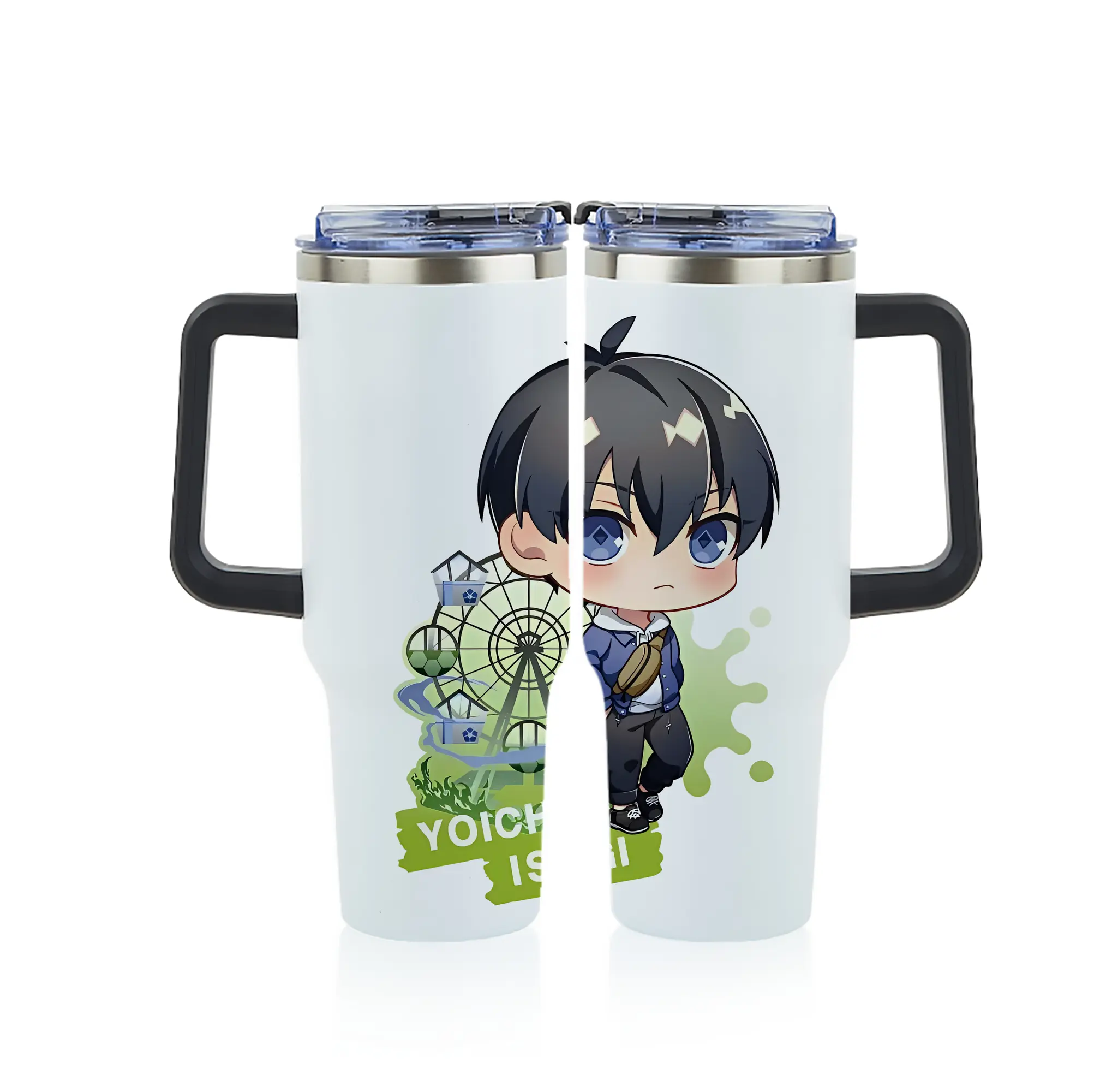 ブルーロック グッズ 潔 世一 - 1200mL フルプリント車用タンブラー ・ 304ステンレス 内側 ・ 201ステンレス 外側 ・ 保温 保冷 ・ 通勤 ドライブ アウトドア用