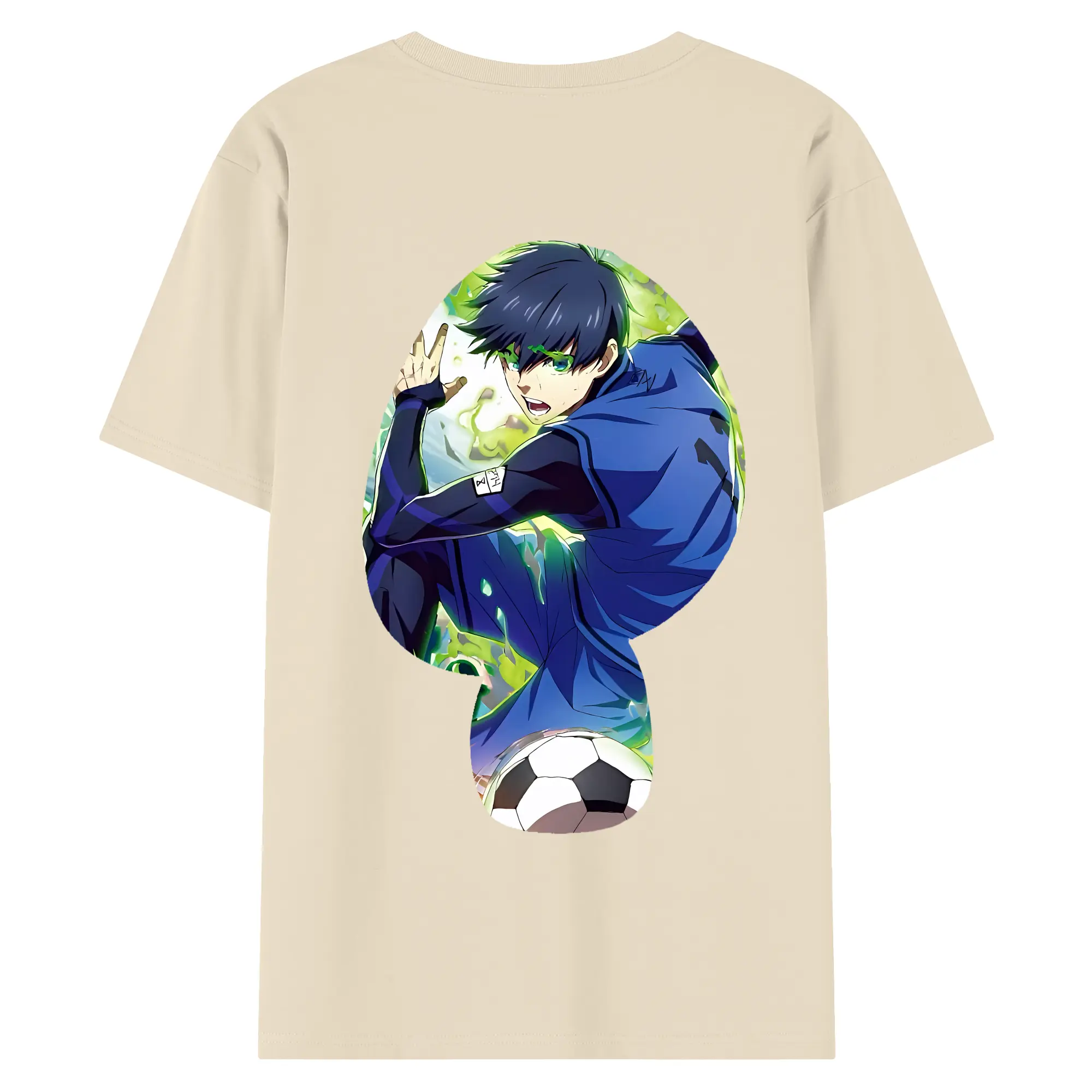 ブルーロック グッズ 潔 世一 - 綿100% ヴィンテージ風 半袖Tシャツ ・ 背面プリント ・ 柔らか肌触り ・ 通気性 快適 ・ スポーツ カジュアル 外出用