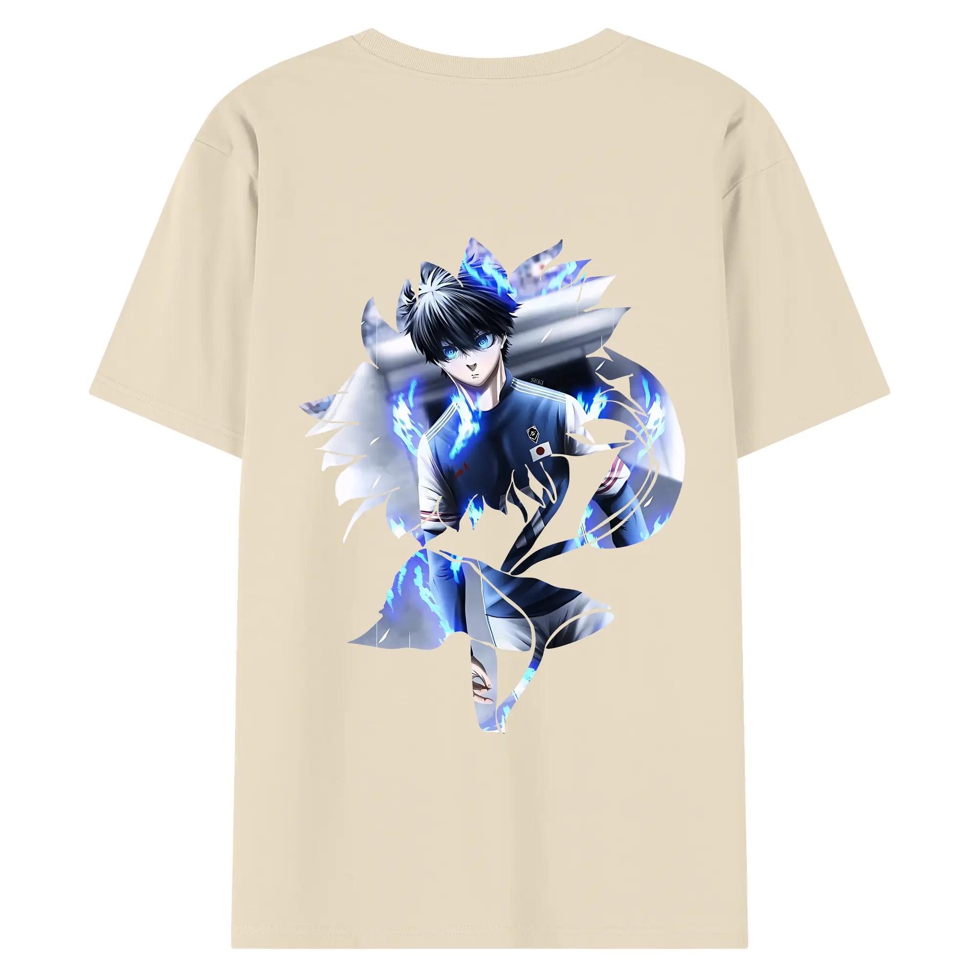 ブルーロック グッズ 潔 世一 - 綿100% ヴィンテージ風 半袖Tシャツ ・ 背面プリント ・ 柔らか肌触り ・ 通気性 快適 ・ スポーツ カジュアル 外出用