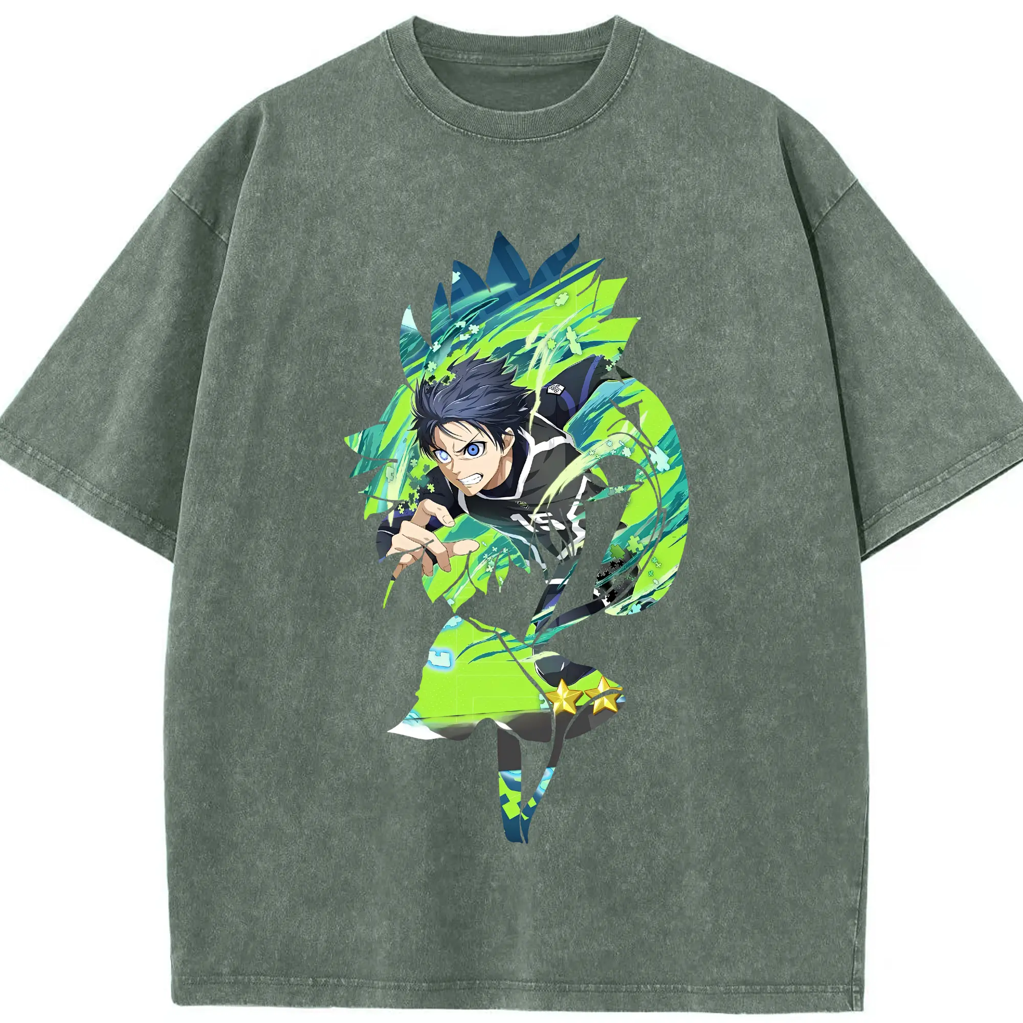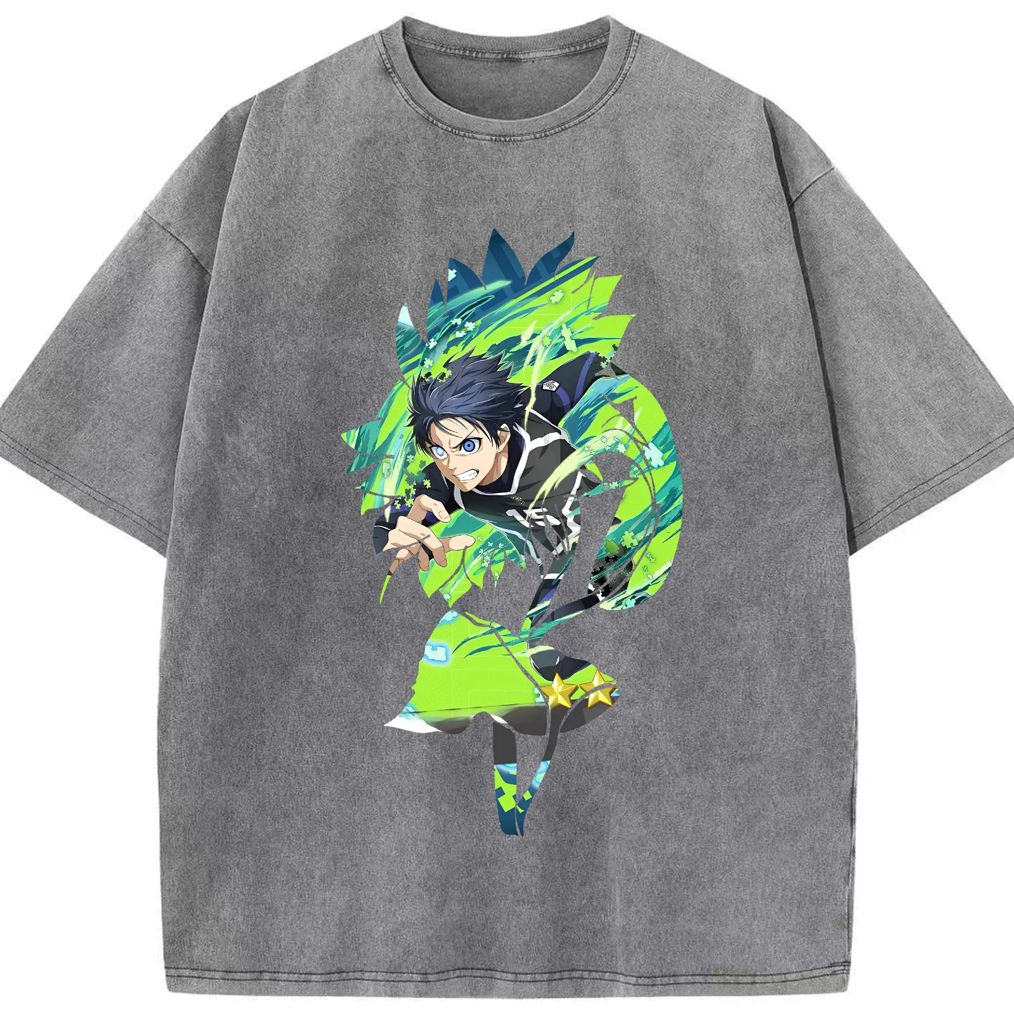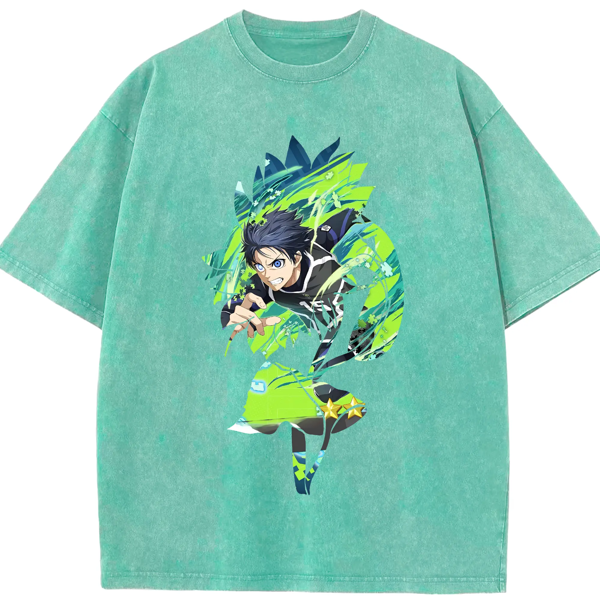 ブルーロック グッズ 潔 世一 - 綿100% ヴィンテージ風 半袖Tシャツ ・ 背面プリント ・ 柔らか肌触り ・ 通気性 快適 ・ スポーツ カジュアル 外出用
