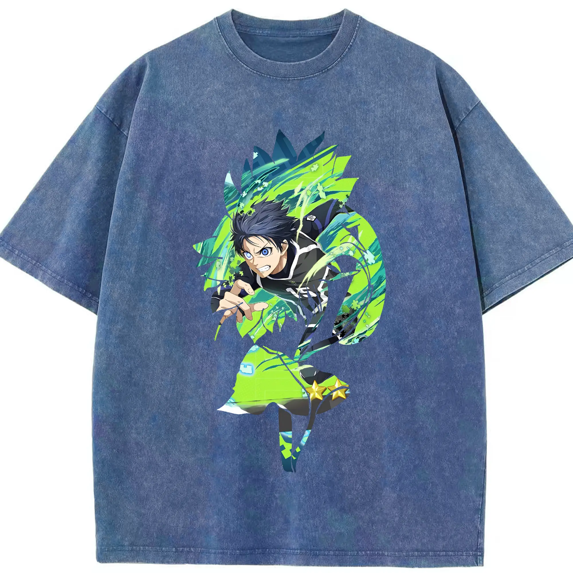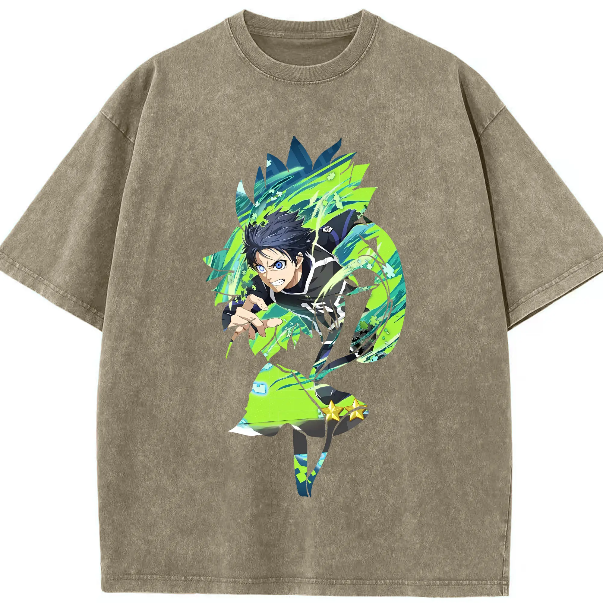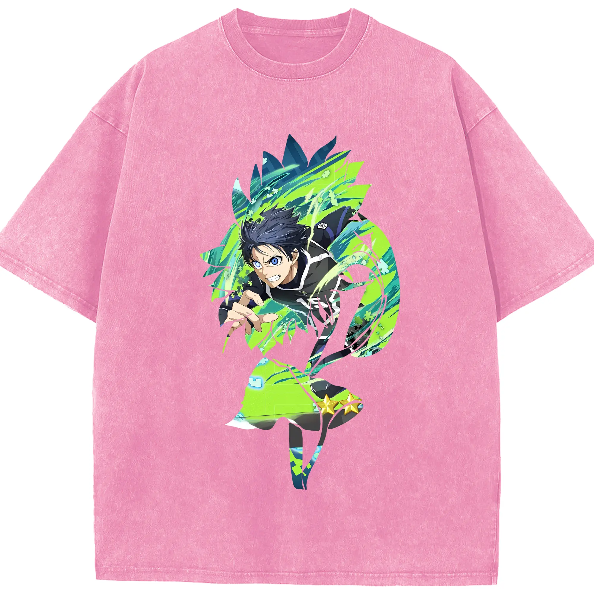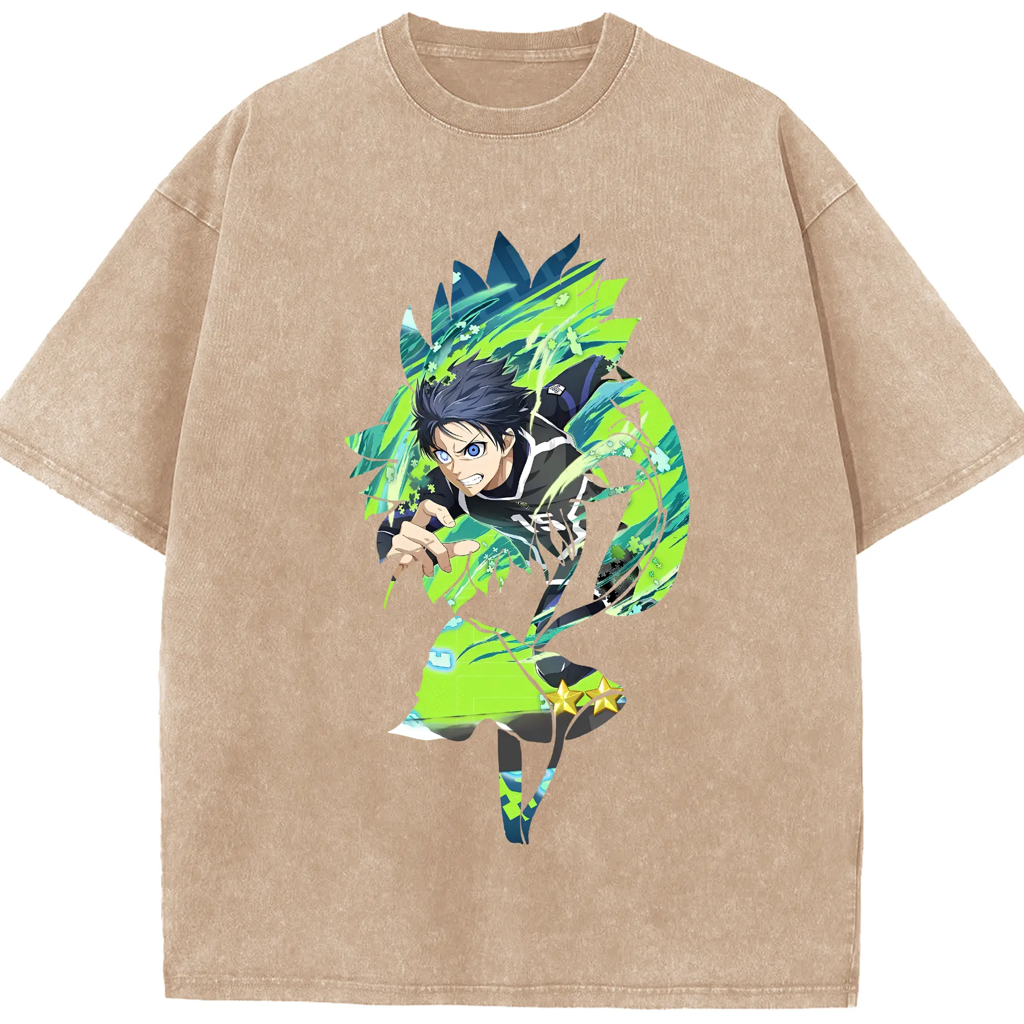 ブルーロック グッズ 潔 世一 - 綿100% ヴィンテージ風 半袖Tシャツ ・ 背面プリント ・ 柔らか肌触り ・ 通気性 快適 ・ スポーツ カジュアル 外出用