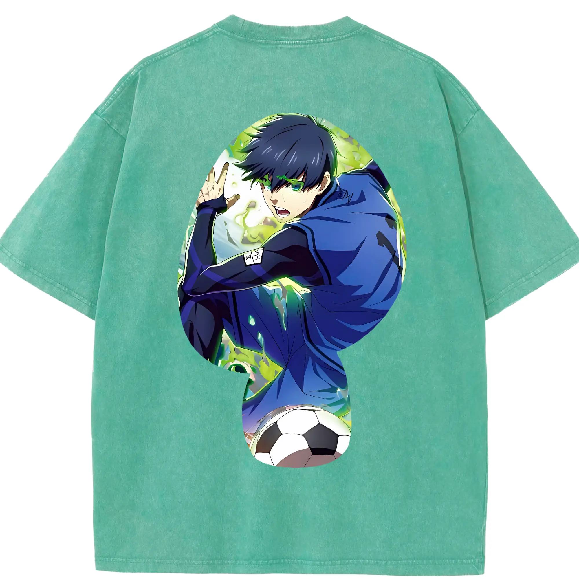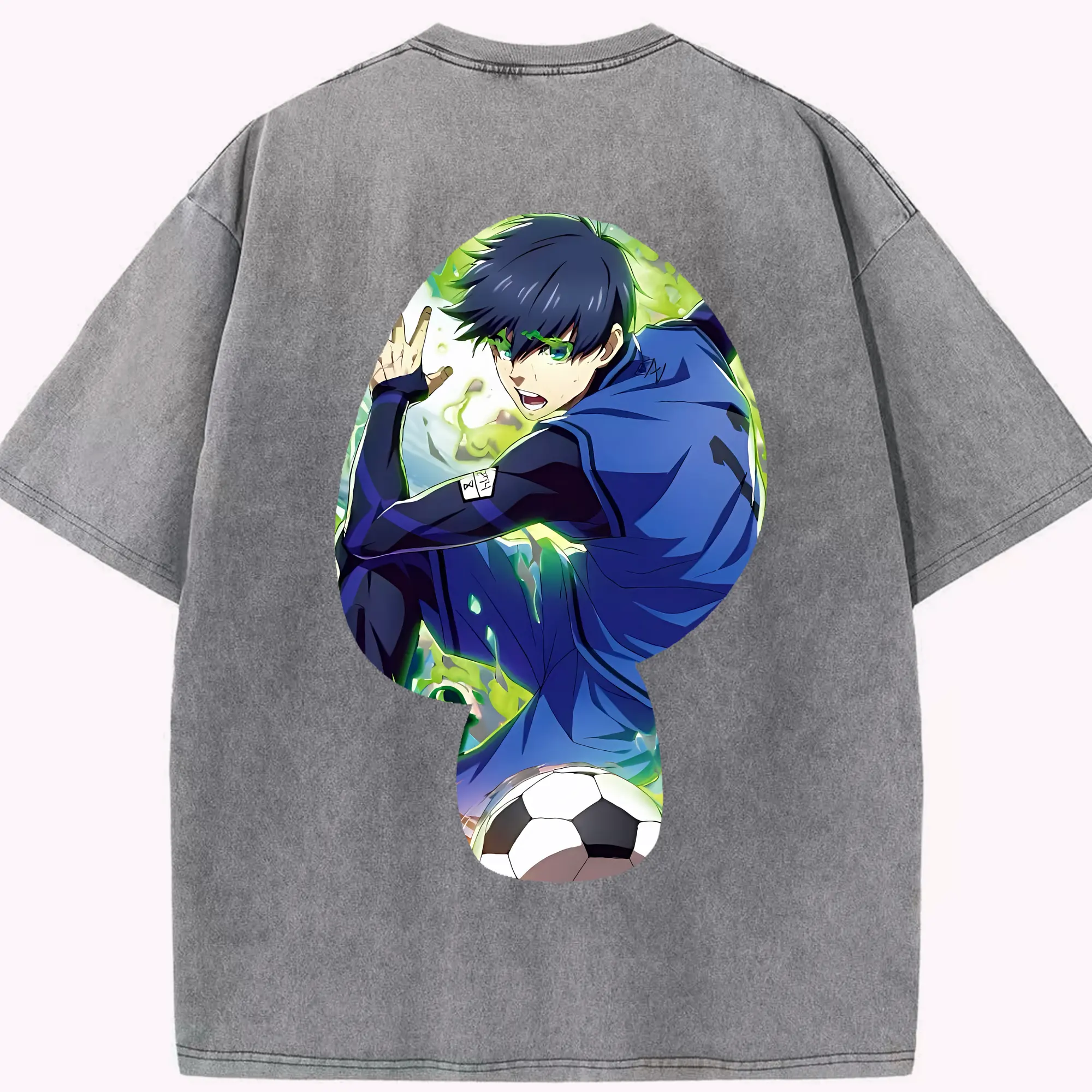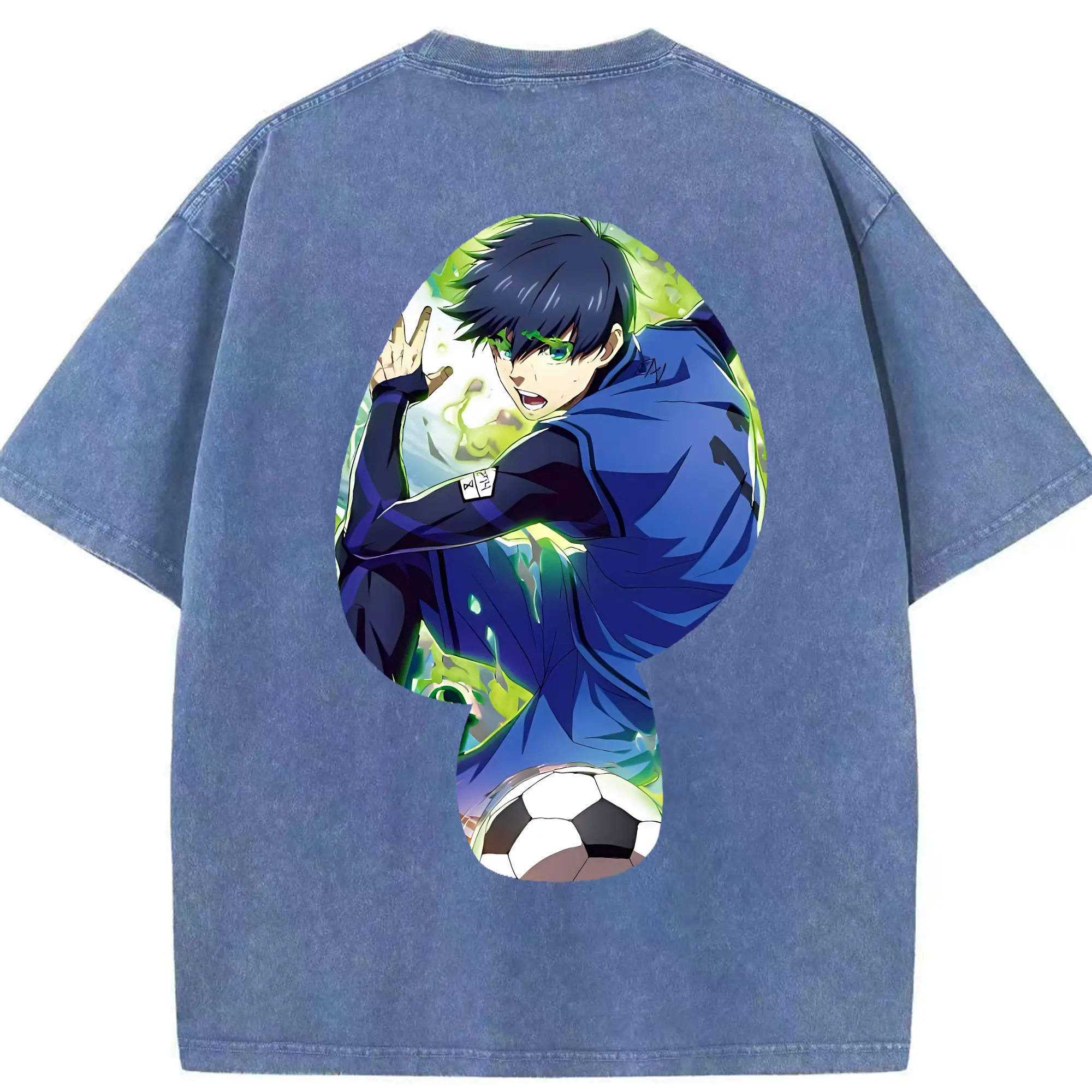 ブルーロック グッズ 潔 世一 - 綿100% ヴィンテージ風 半袖Tシャツ ・ フロントプリント ・ 柔らか肌触り ・ 通気性 快適 ・ スポーツ カジュアル 外出用