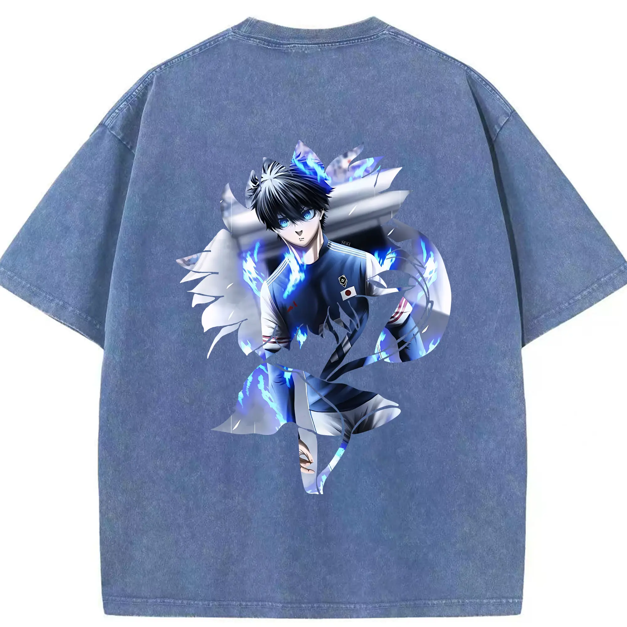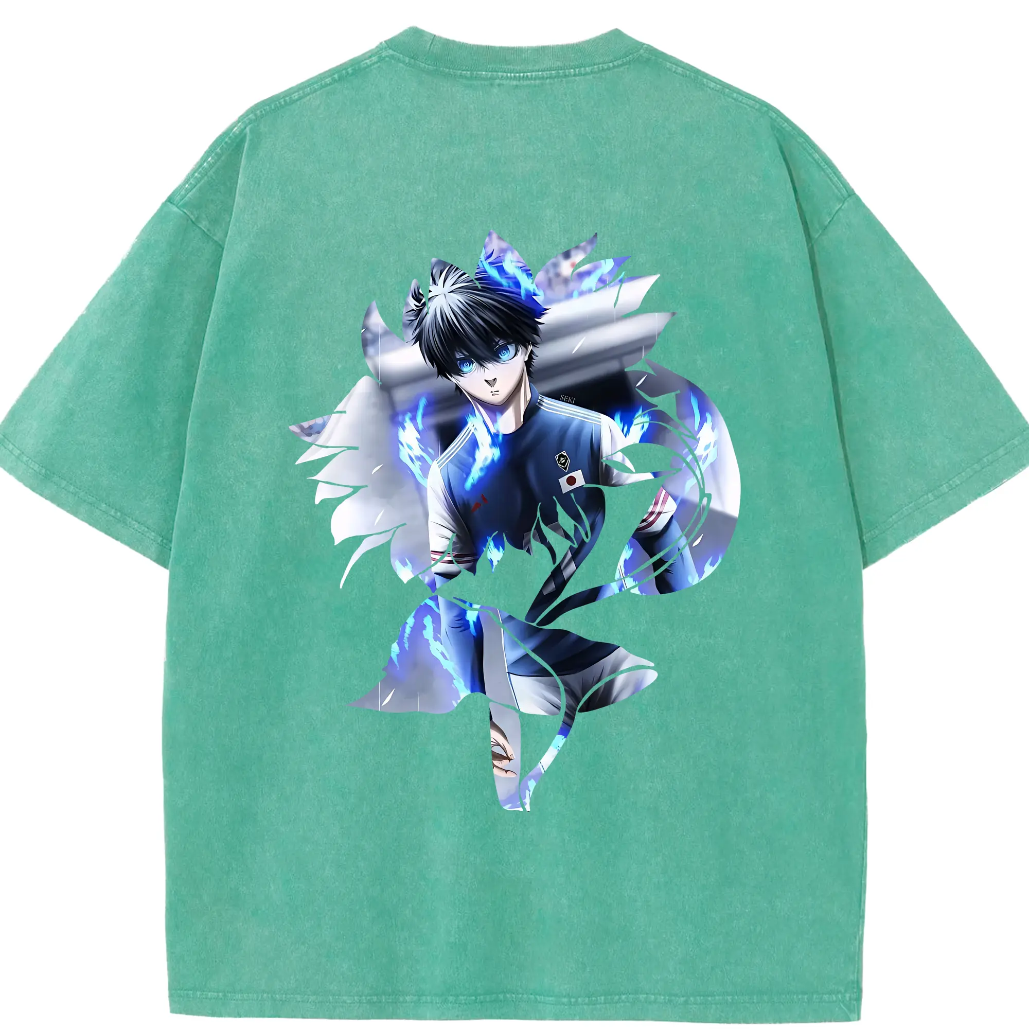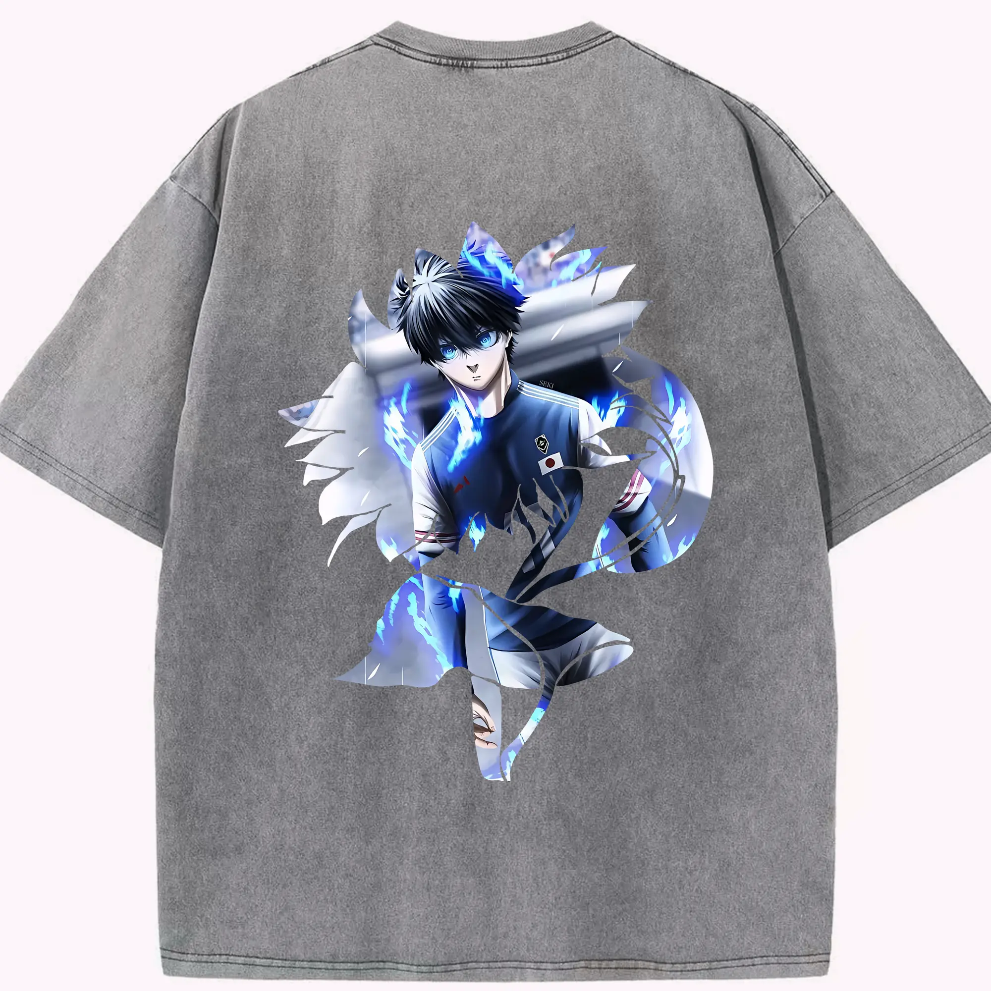 ブルーロック グッズ 潔 世一 - 綿100% ヴィンテージ風 半袖Tシャツ ・ フロントプリント ・ 柔らか肌触り ・ 通気性 快適 ・ スポーツ カジュアル 外出用