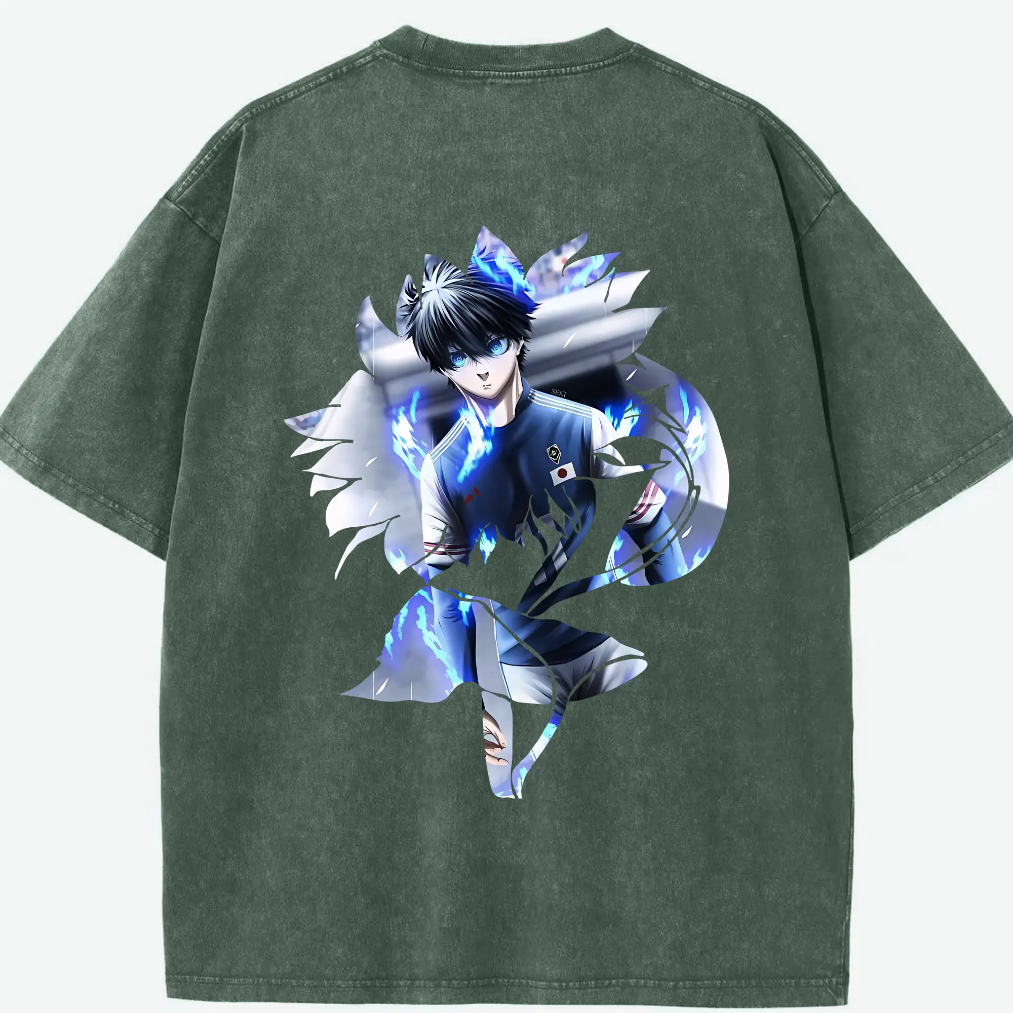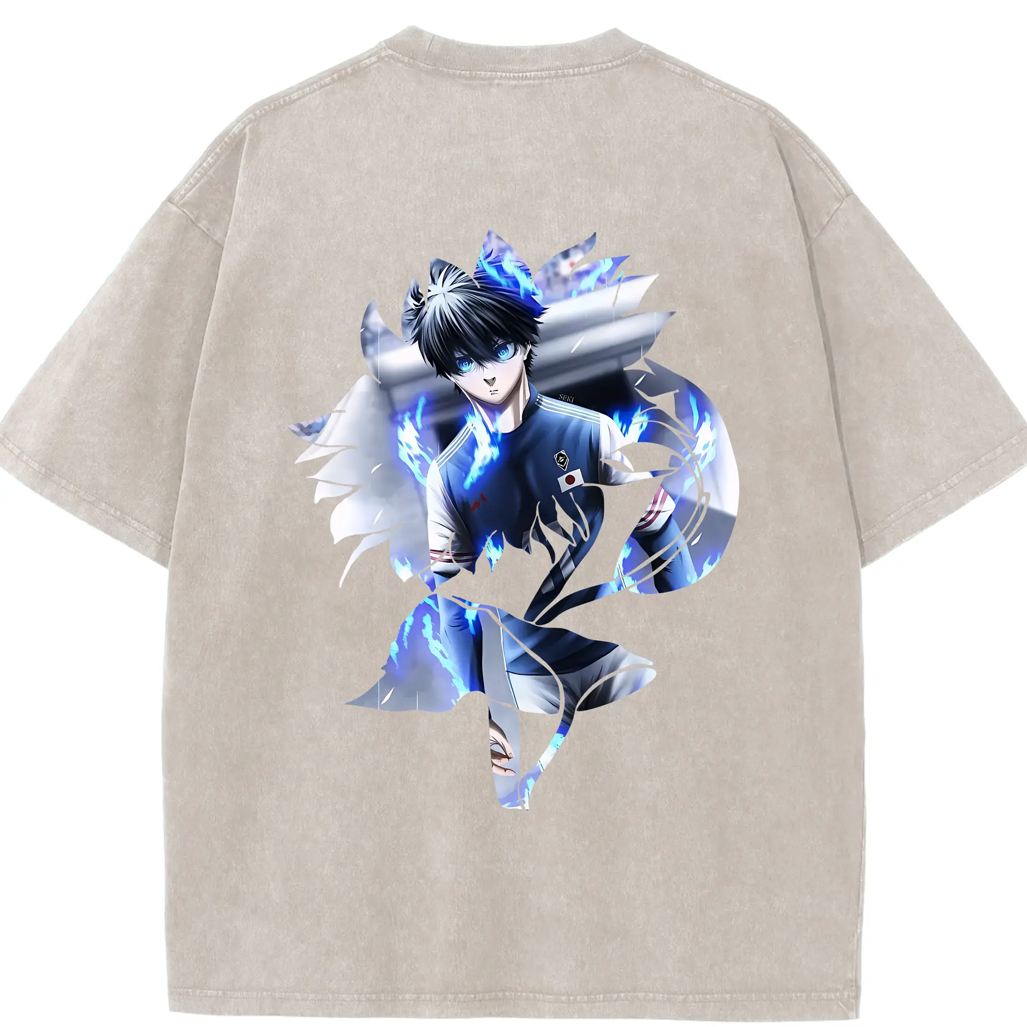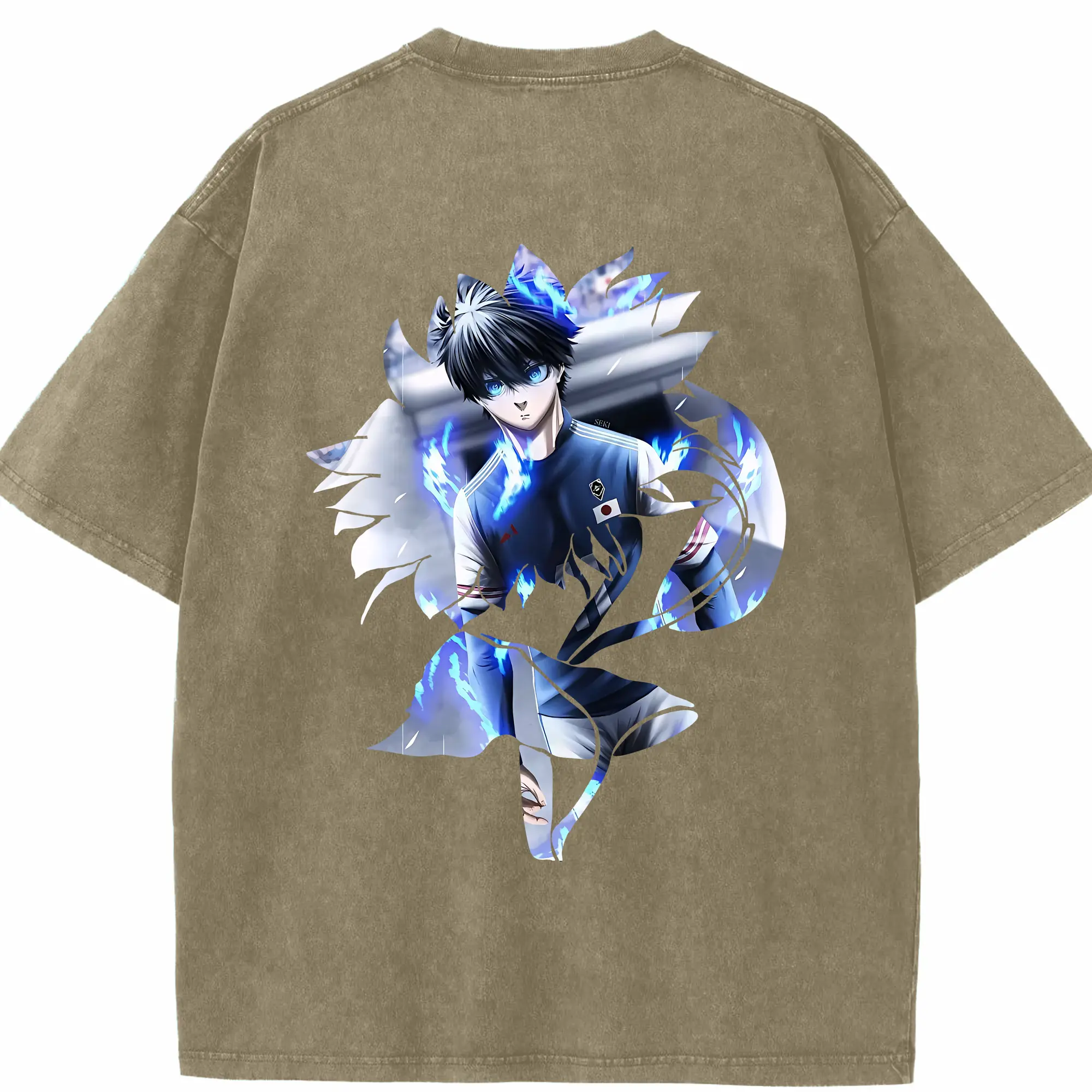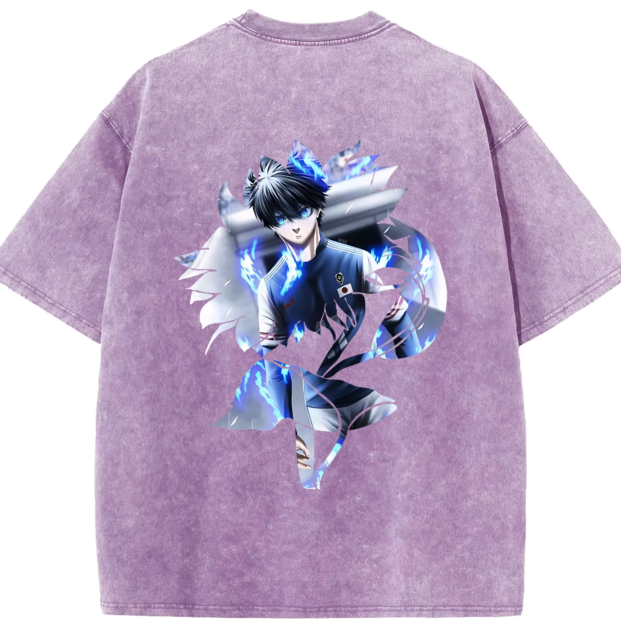 ブルーロック グッズ 潔 世一 - 綿100% ヴィンテージ風 半袖Tシャツ ・ フロントプリント ・ 柔らか肌触り ・ 通気性 快適 ・ スポーツ カジュアル 外出用