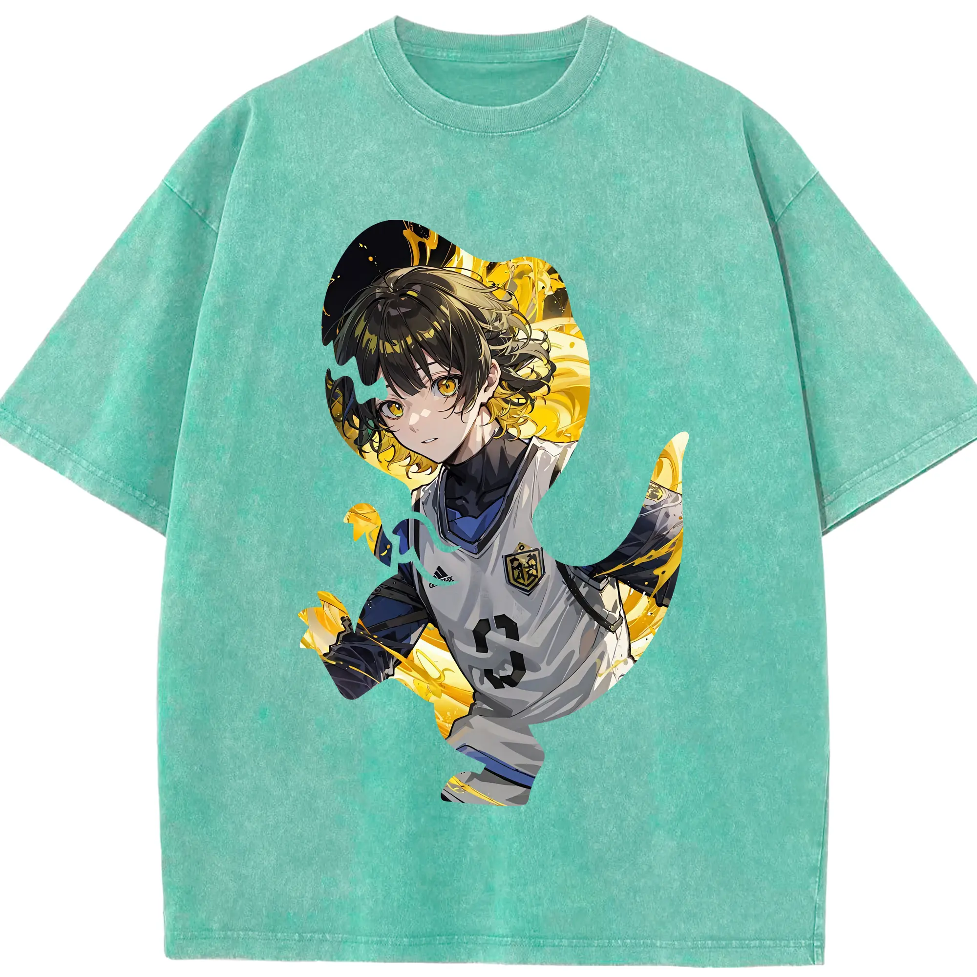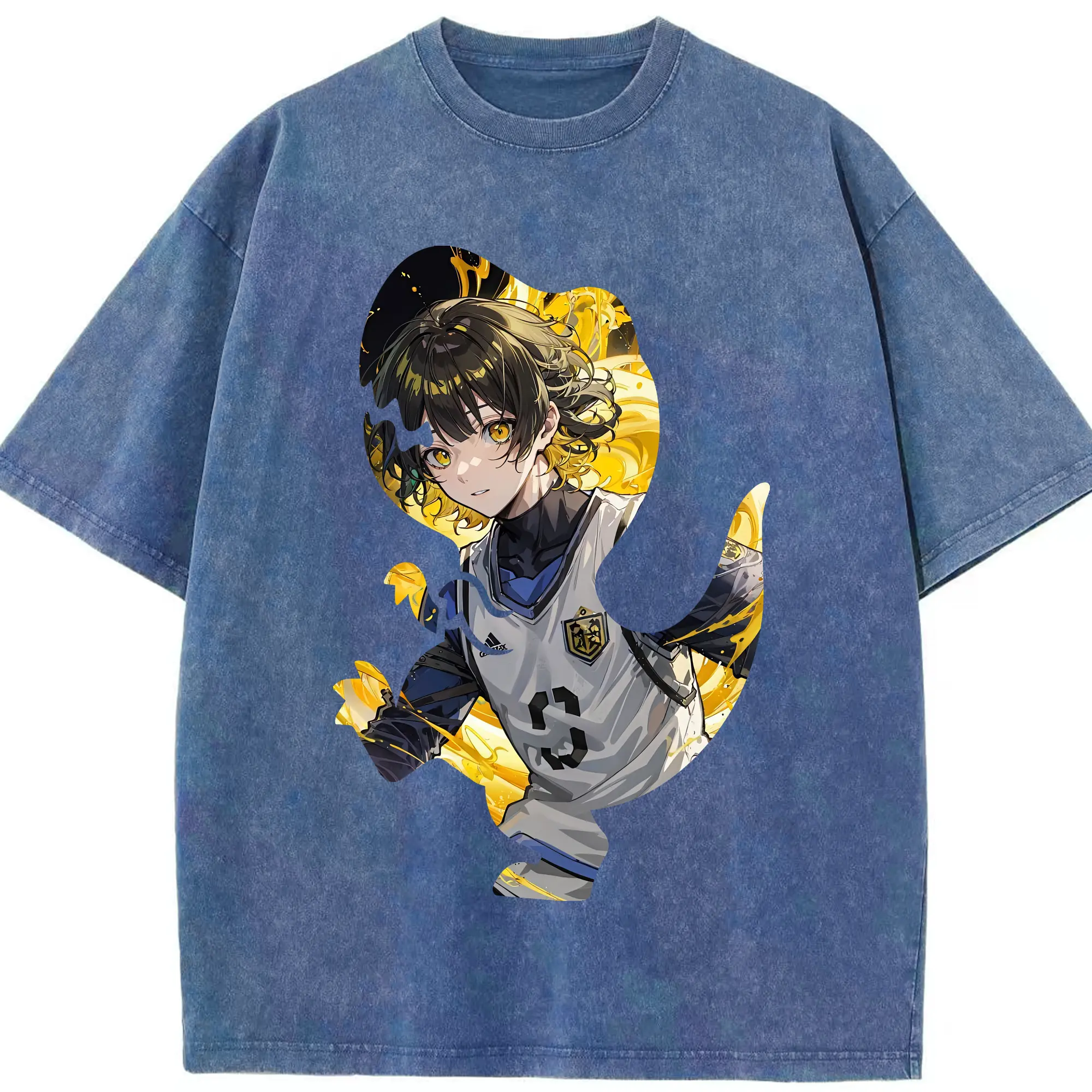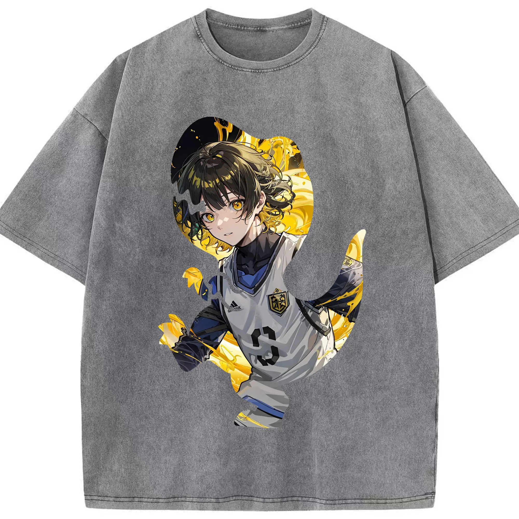 ブルーロック グッズ 蜂楽 廻 - 綿100% ヴィンテージ風 半袖Tシャツ ・ 背面プリント ・ 柔らか肌触り ・ 通気性 快適 ・ スポーツ カジュアル 外出用