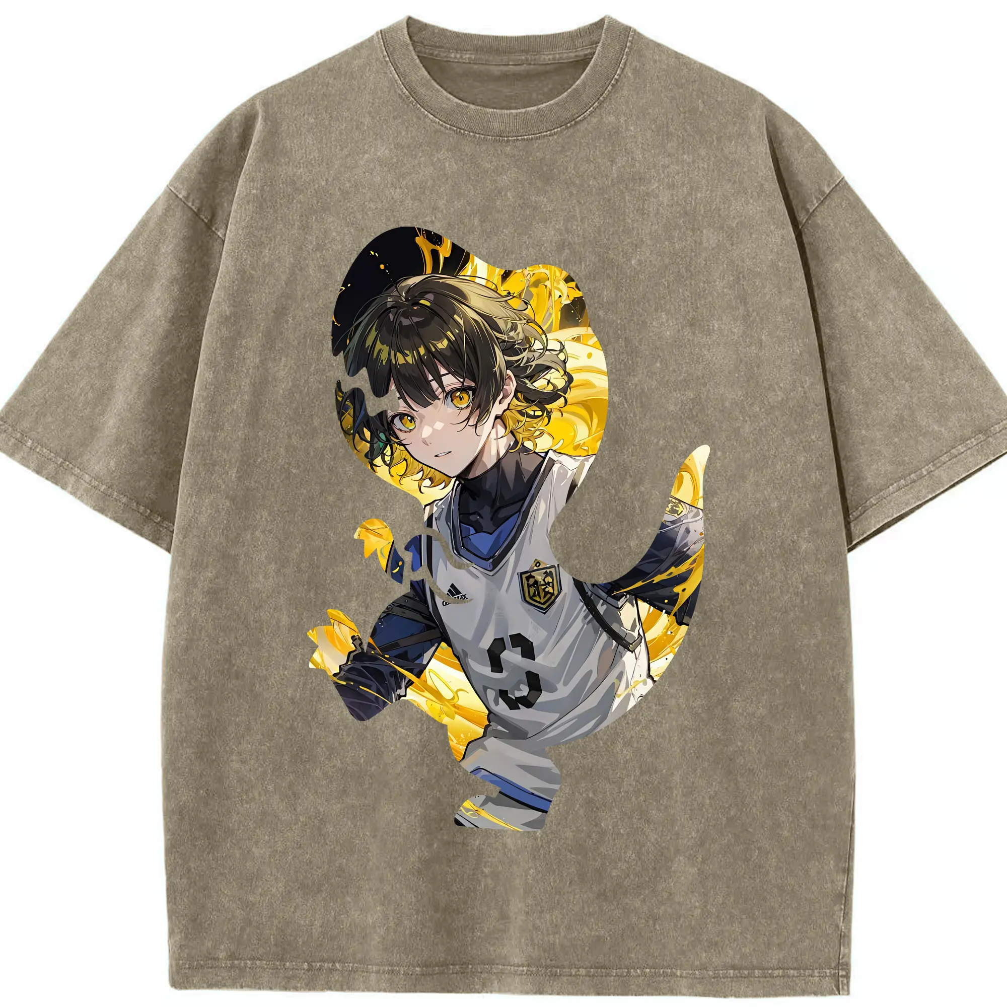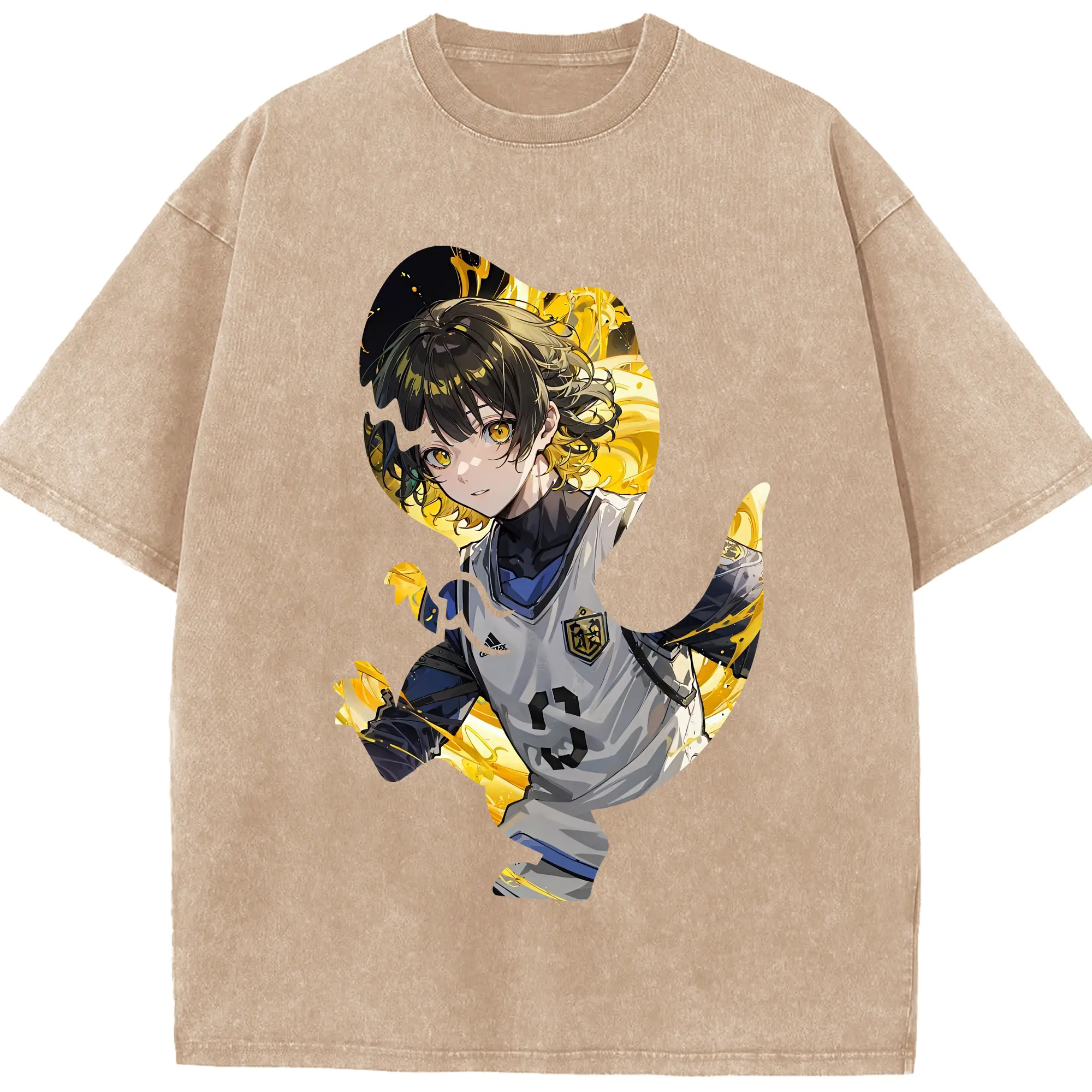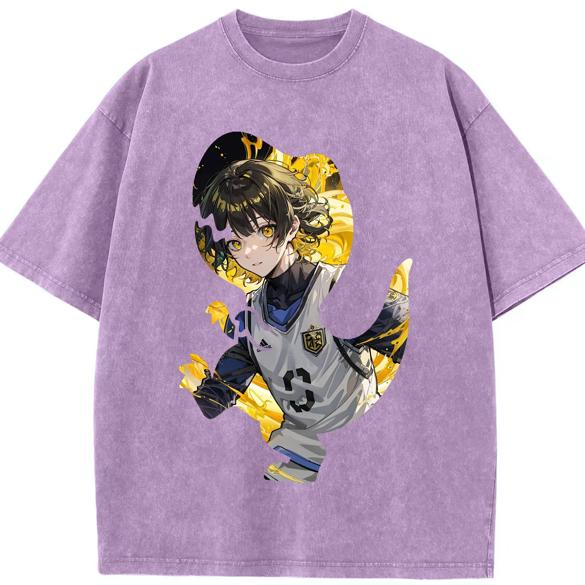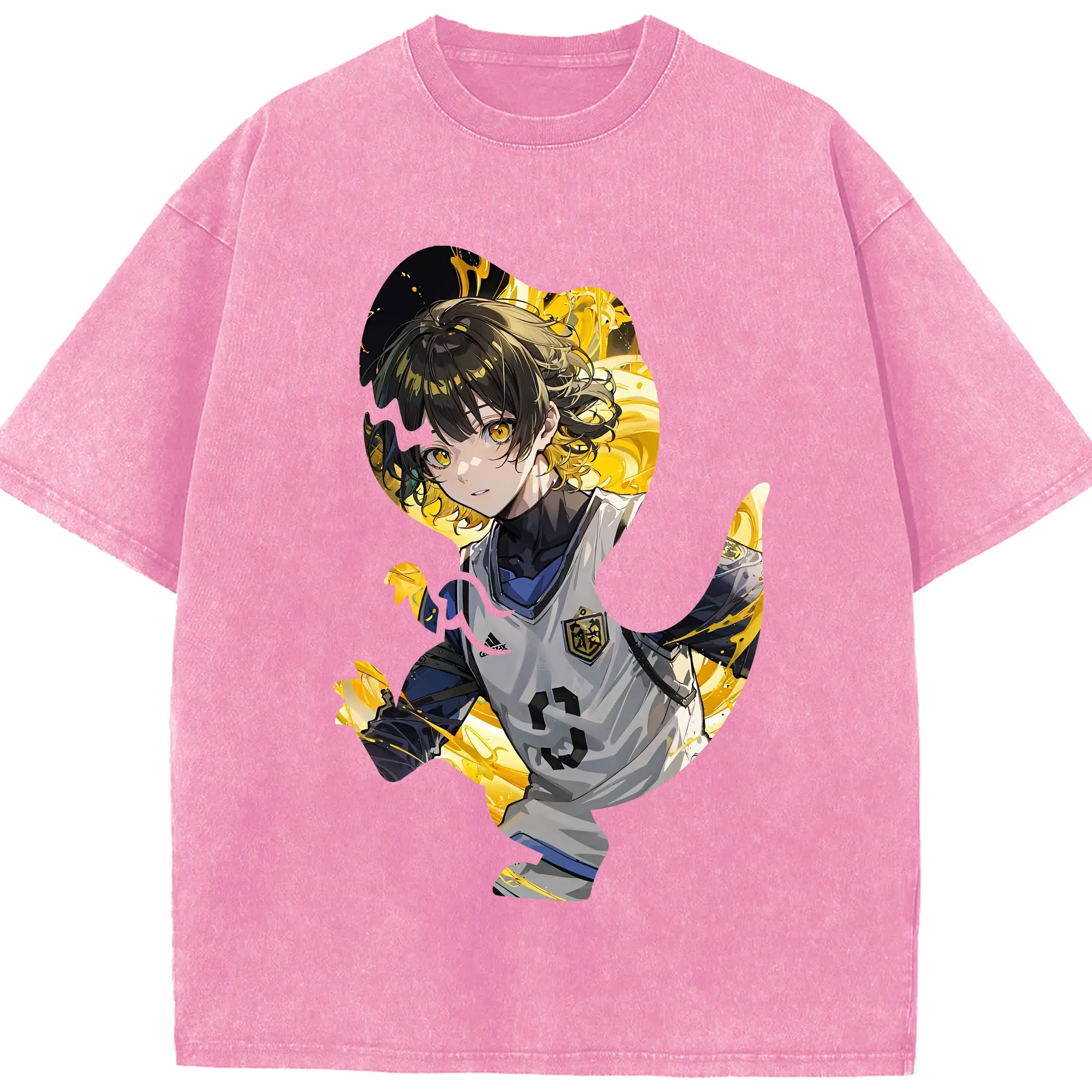 ブルーロック グッズ 蜂楽 廻 - 綿100% ヴィンテージ風 半袖Tシャツ ・ 背面プリント ・ 柔らか肌触り ・ 通気性 快適 ・ スポーツ カジュアル 外出用