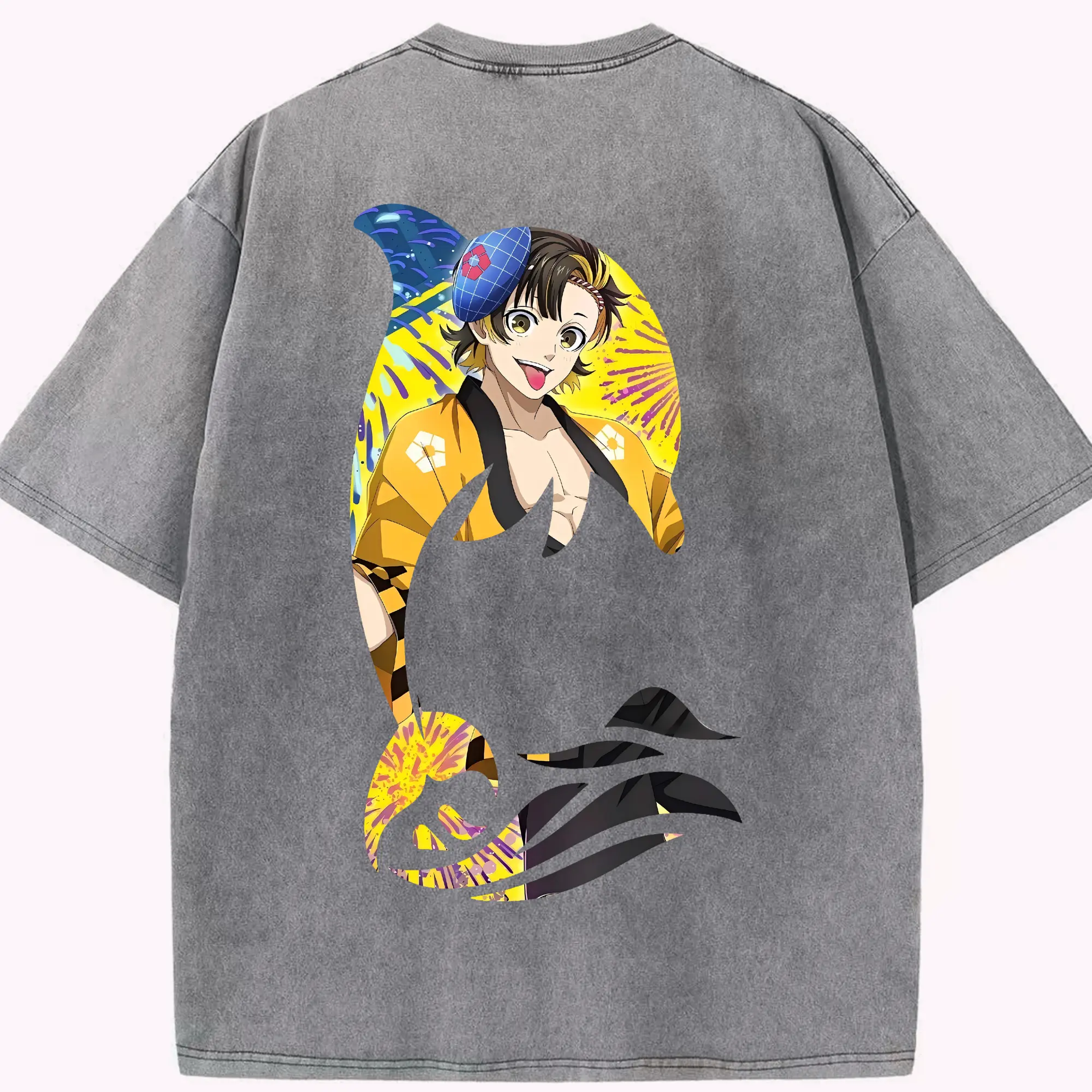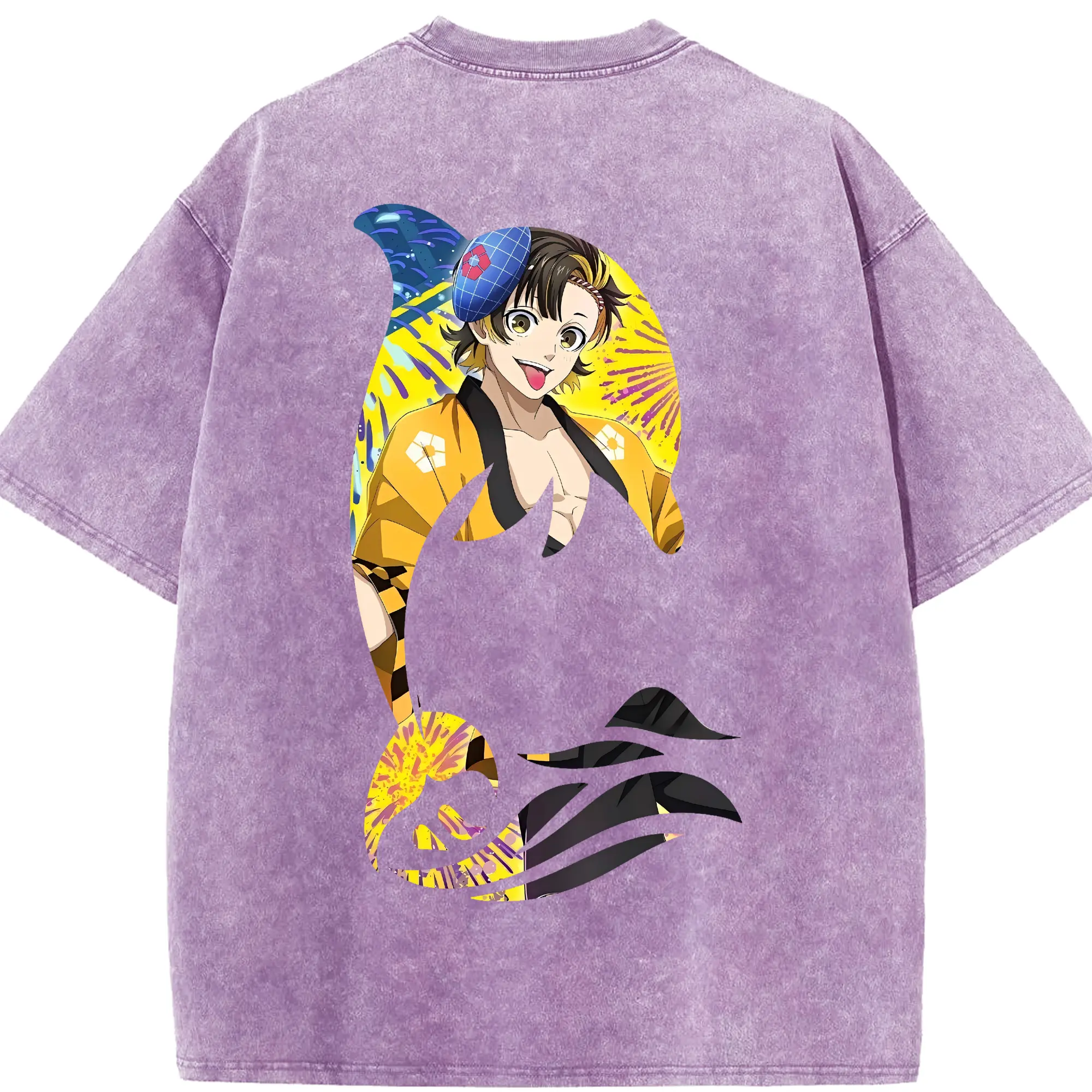 鬼滅の刃 グッズ,童磨 - 綿100% ヴィンテージ風 半袖Tシャツ ・ 背面プリント ・ 柔らか肌触り ・ 通気性 快適 ・ スポーツ カジュアル 外出用