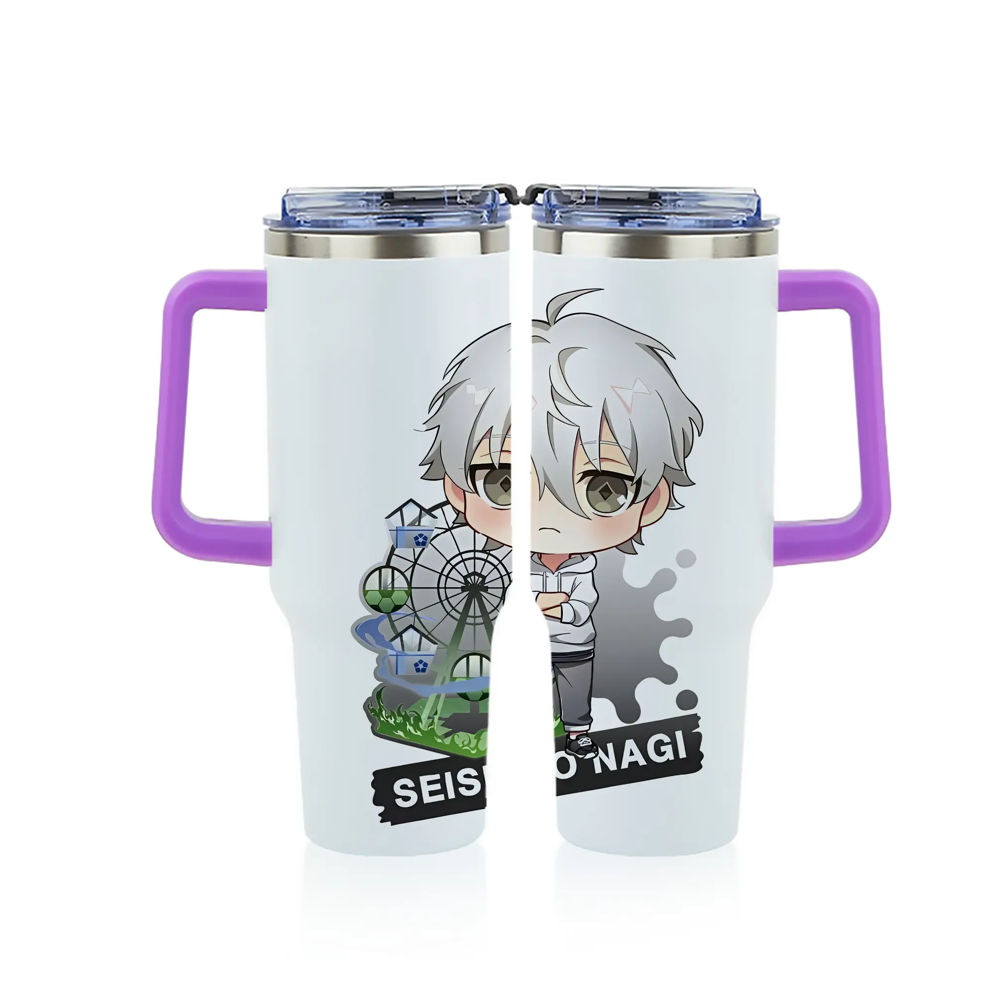 ブルーロック グッズ 凪 誠士郎 - 1200mL フルプリント車用タンブラー ・ 304ステンレス 内側 ・ 201ステンレス 外側 ・ 保温 保冷 ・ 通勤 ドライブ アウトドア用