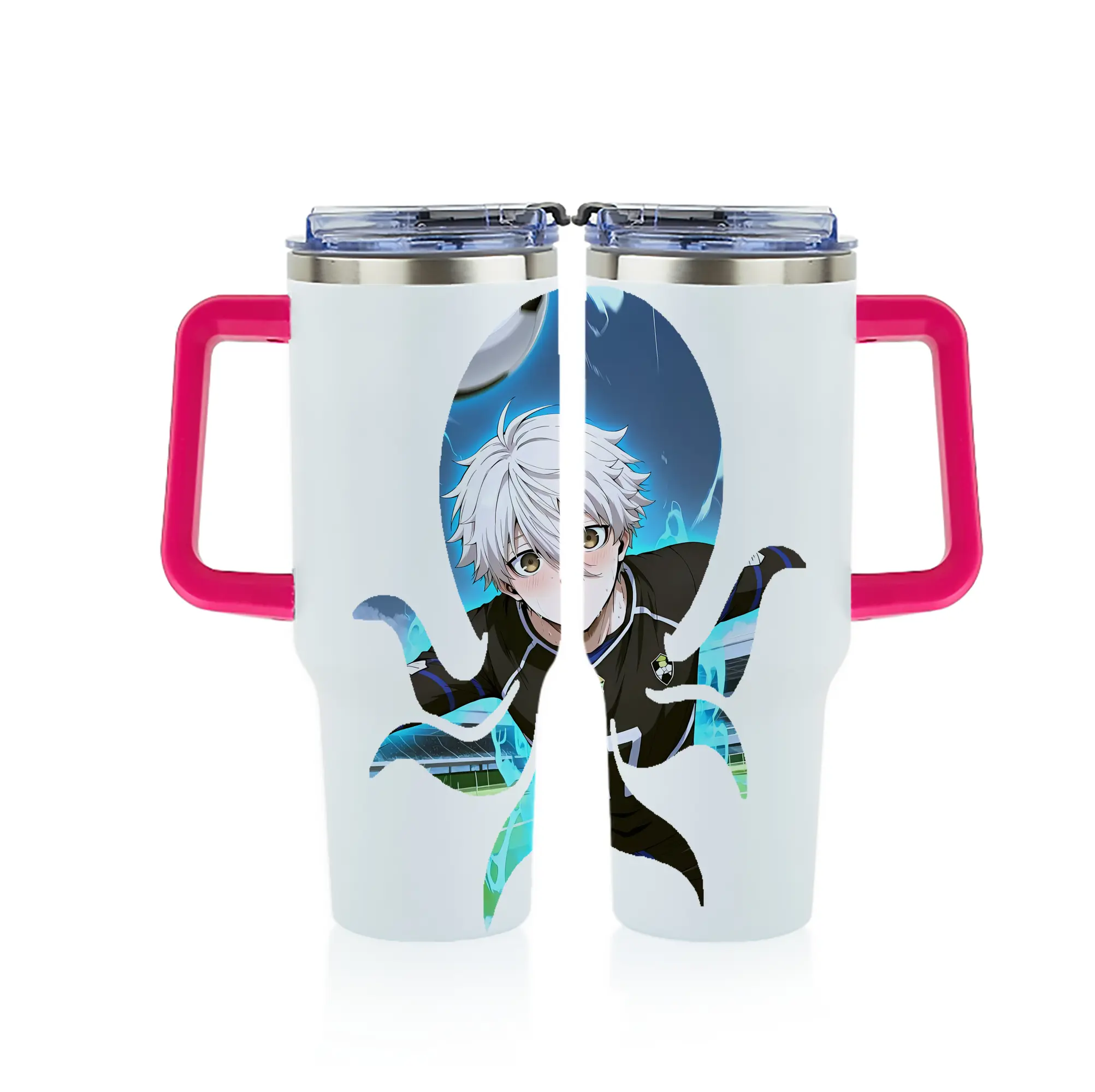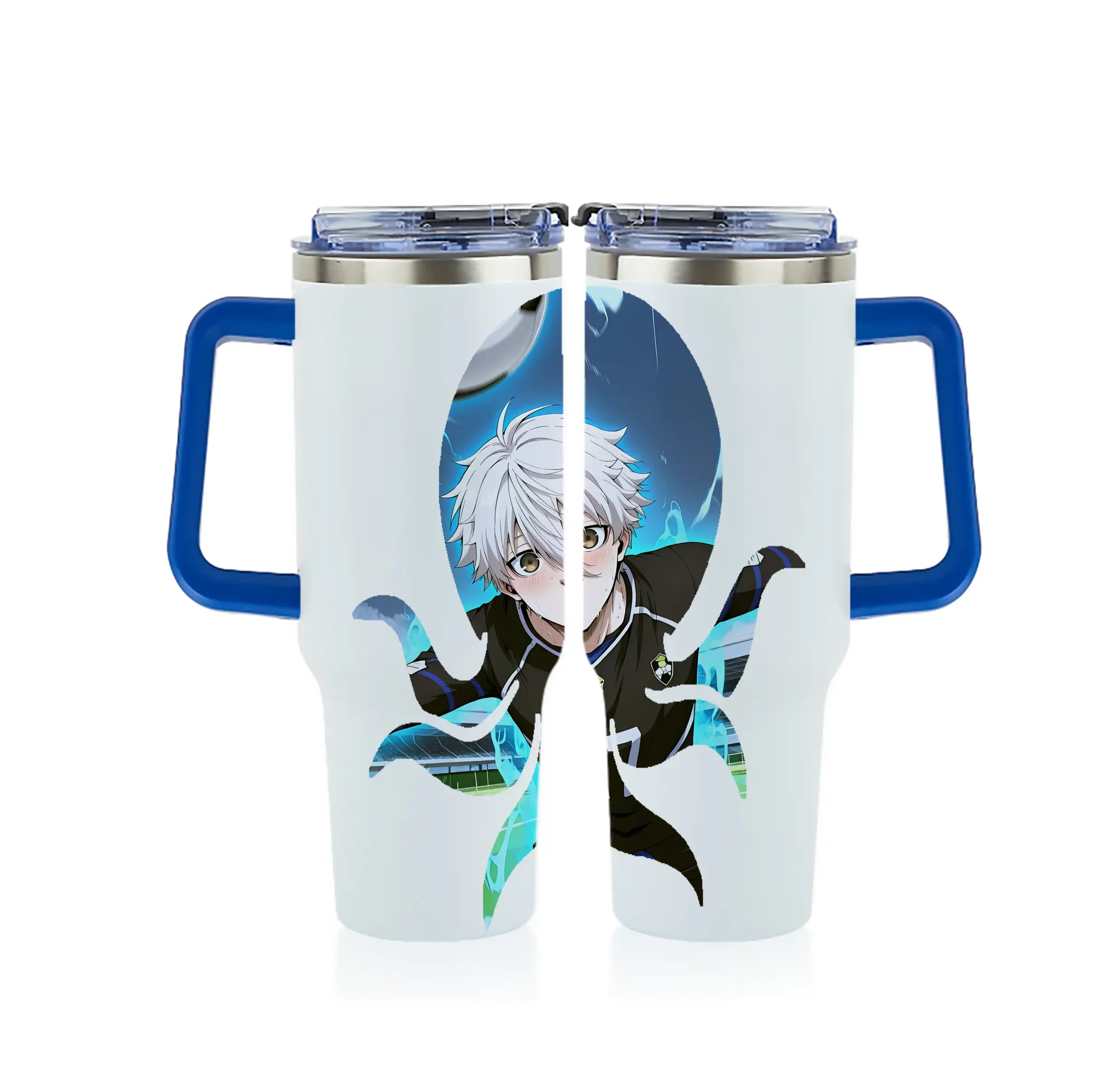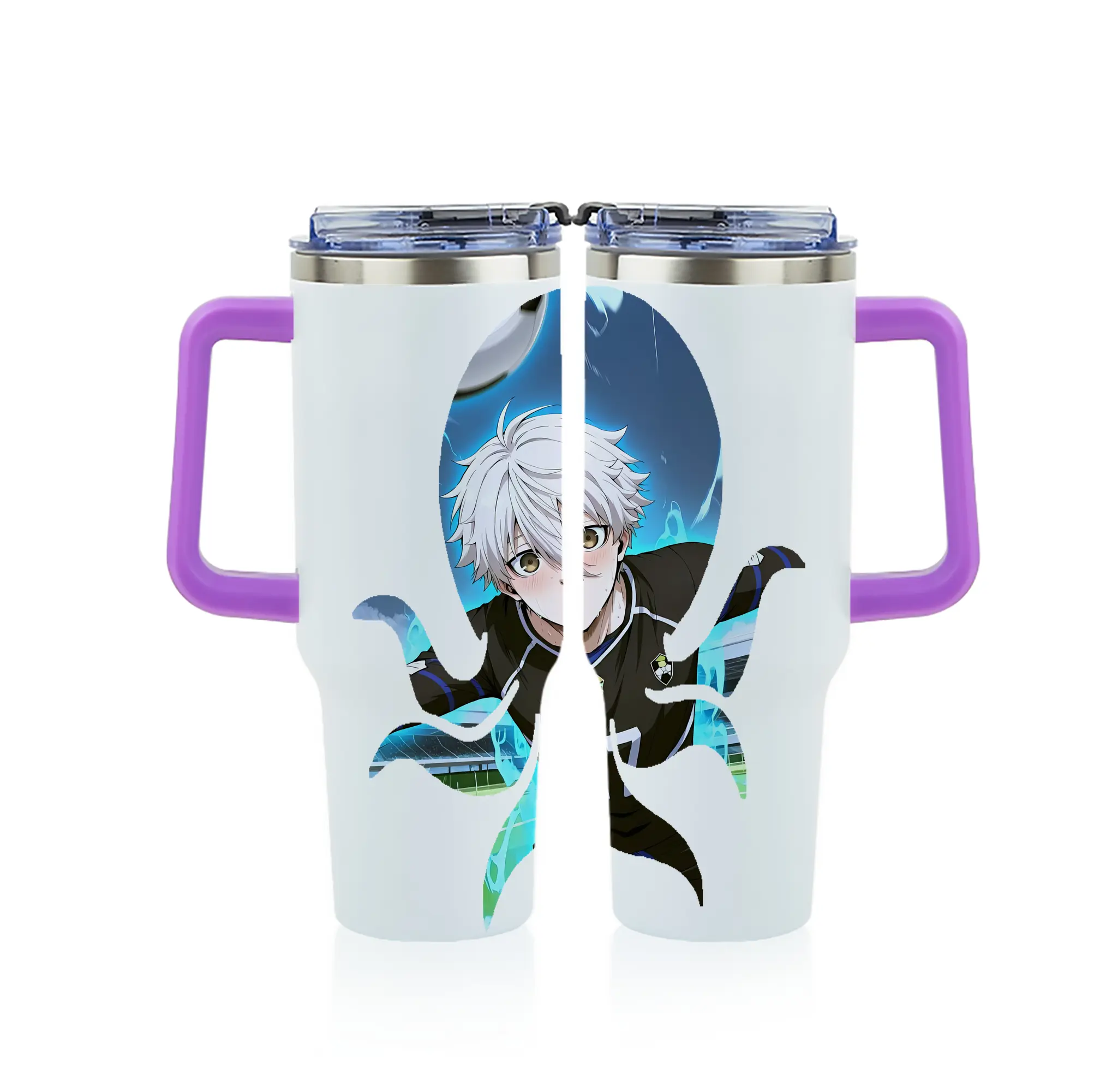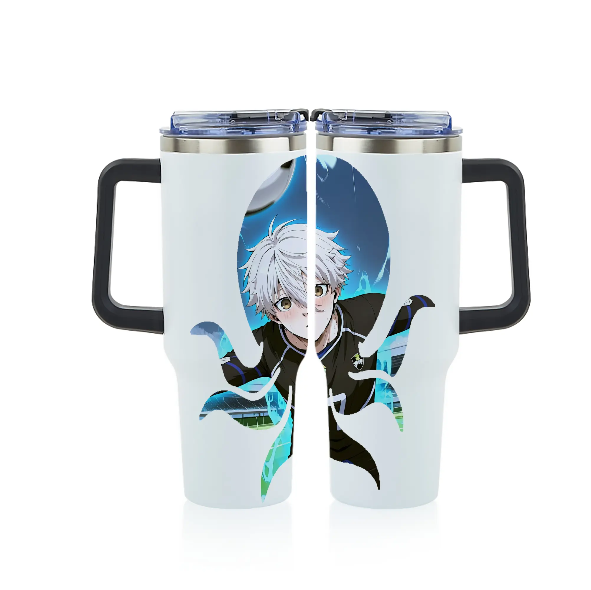 ブルーロック グッズ 凪 誠士郎 - 1200mL フルプリント車用タンブラー ・ 304ステンレス 内側 ・ 201ステンレス 外側 ・ 保温 保冷 ・ 通勤 ドライブ アウトドア用