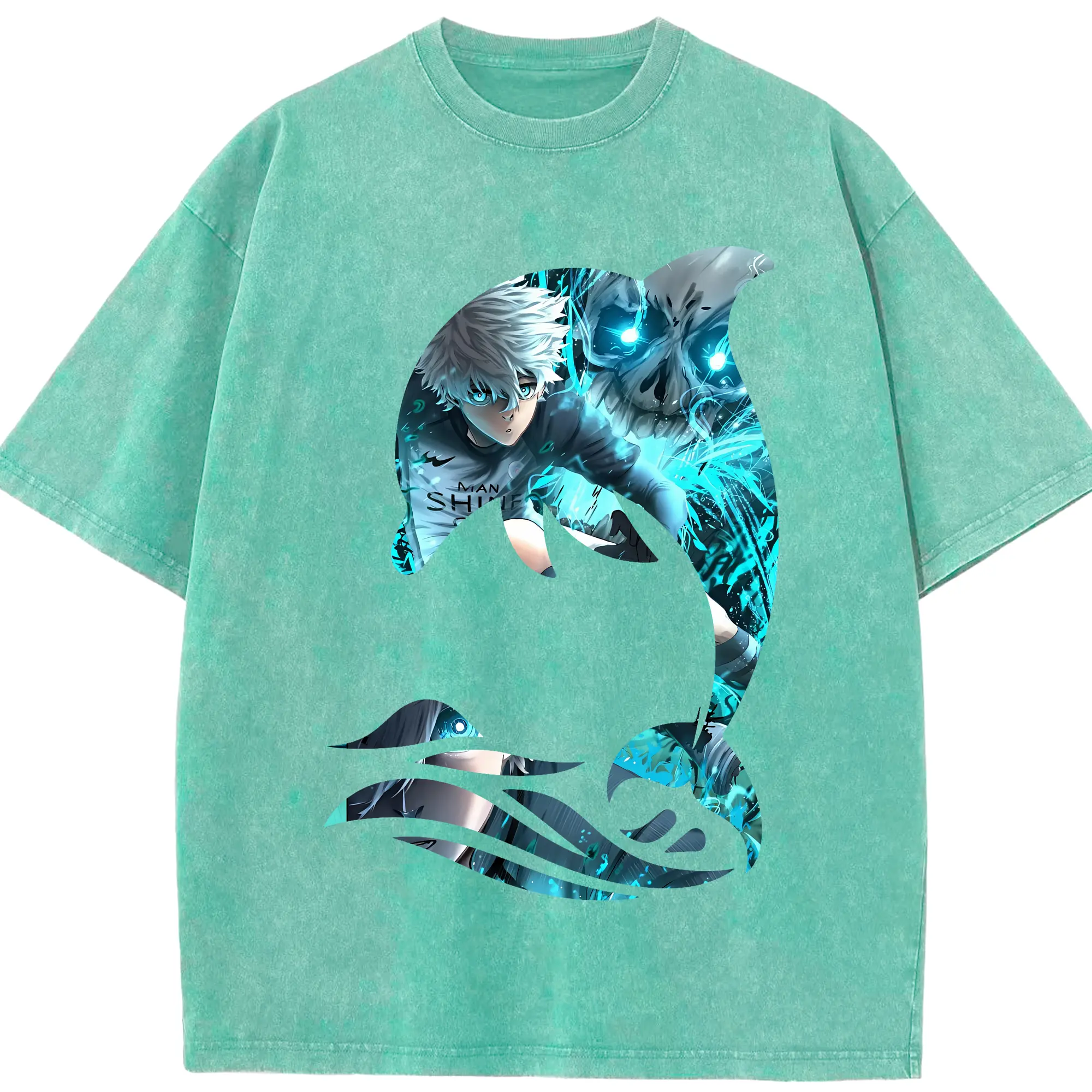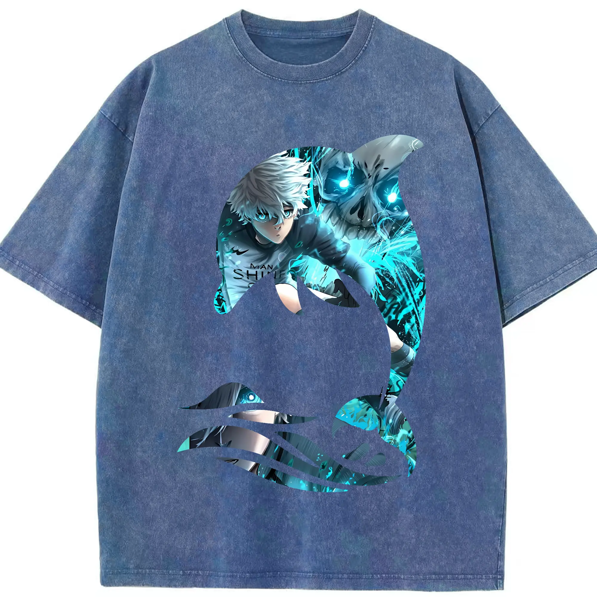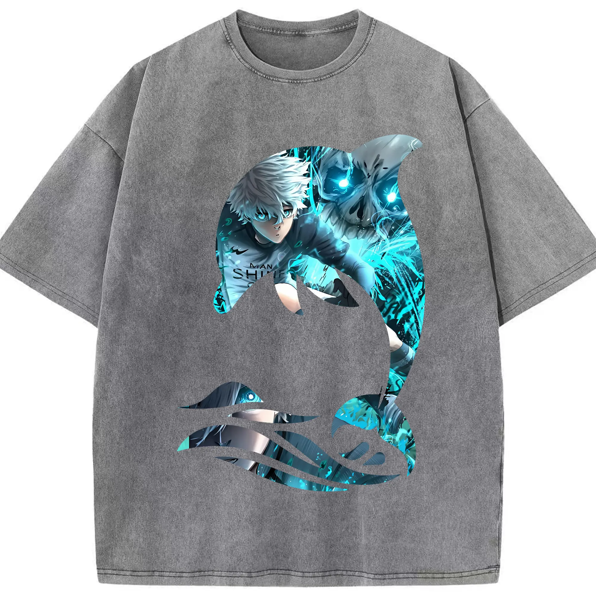 ワンパンマン グッズ ジェノス - 綿100% ヴィンテージ風 半袖Tシャツ ・ フロントプリント ・ 柔らか肌触り ・ 通気性 快適 ・ スポーツ カジュアル 外出用