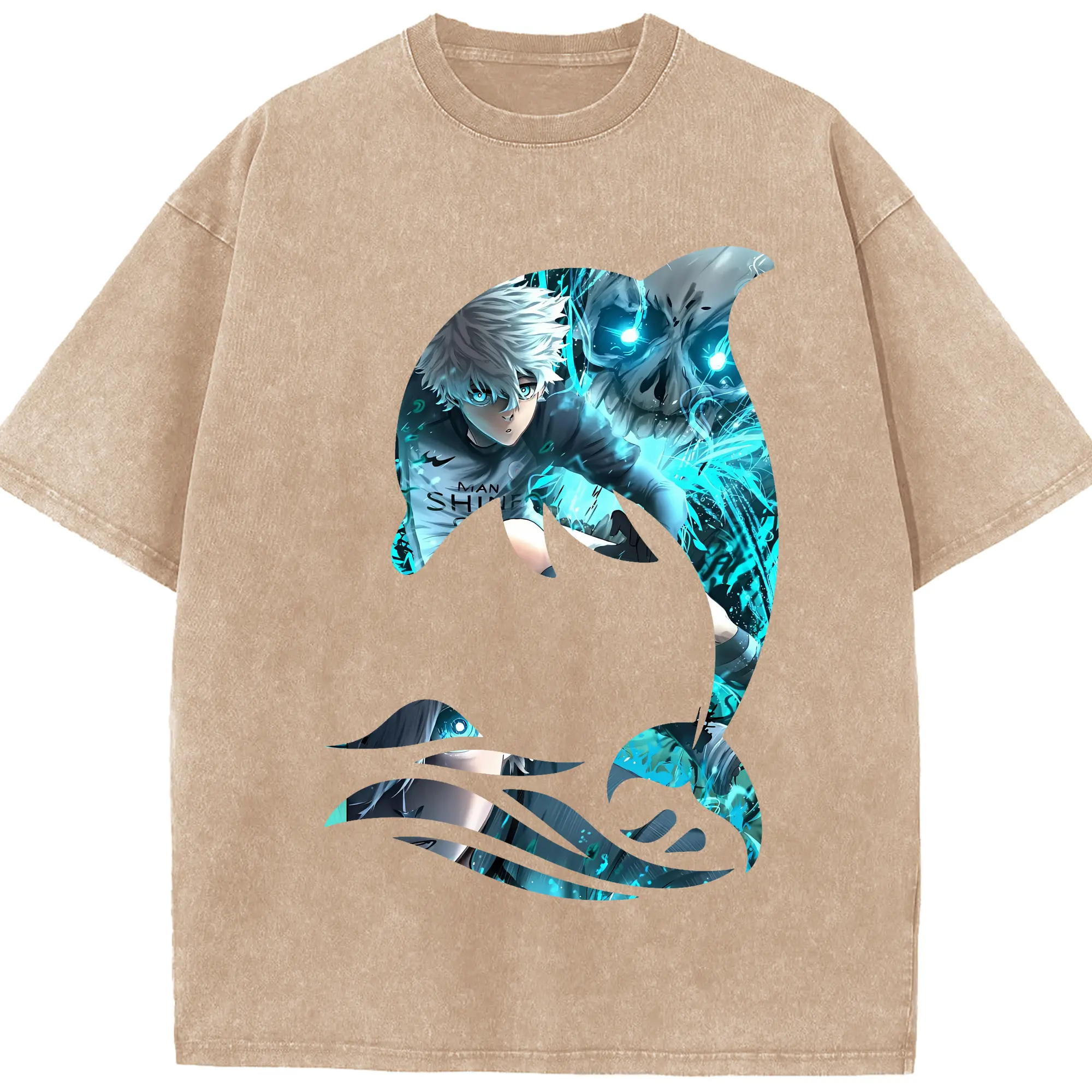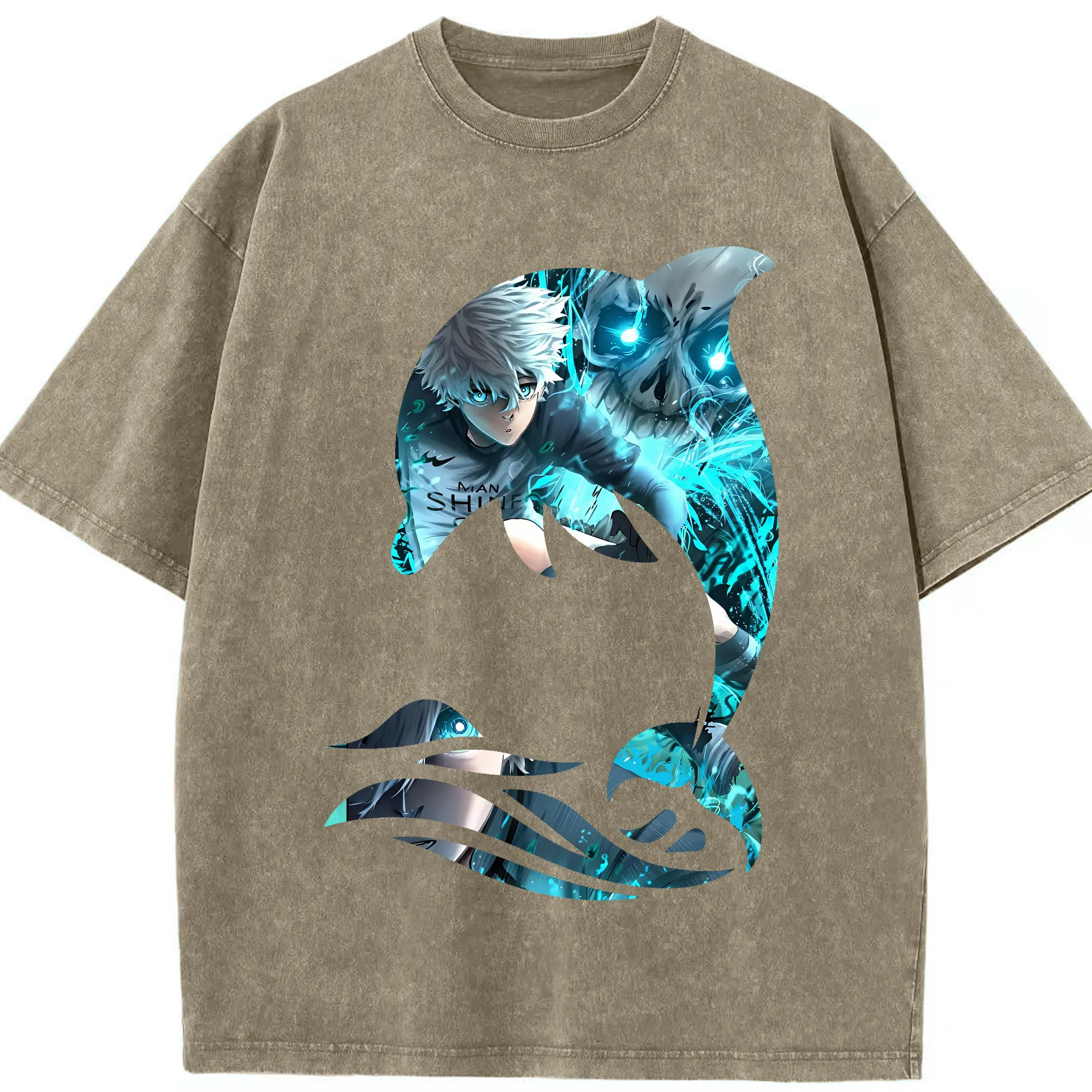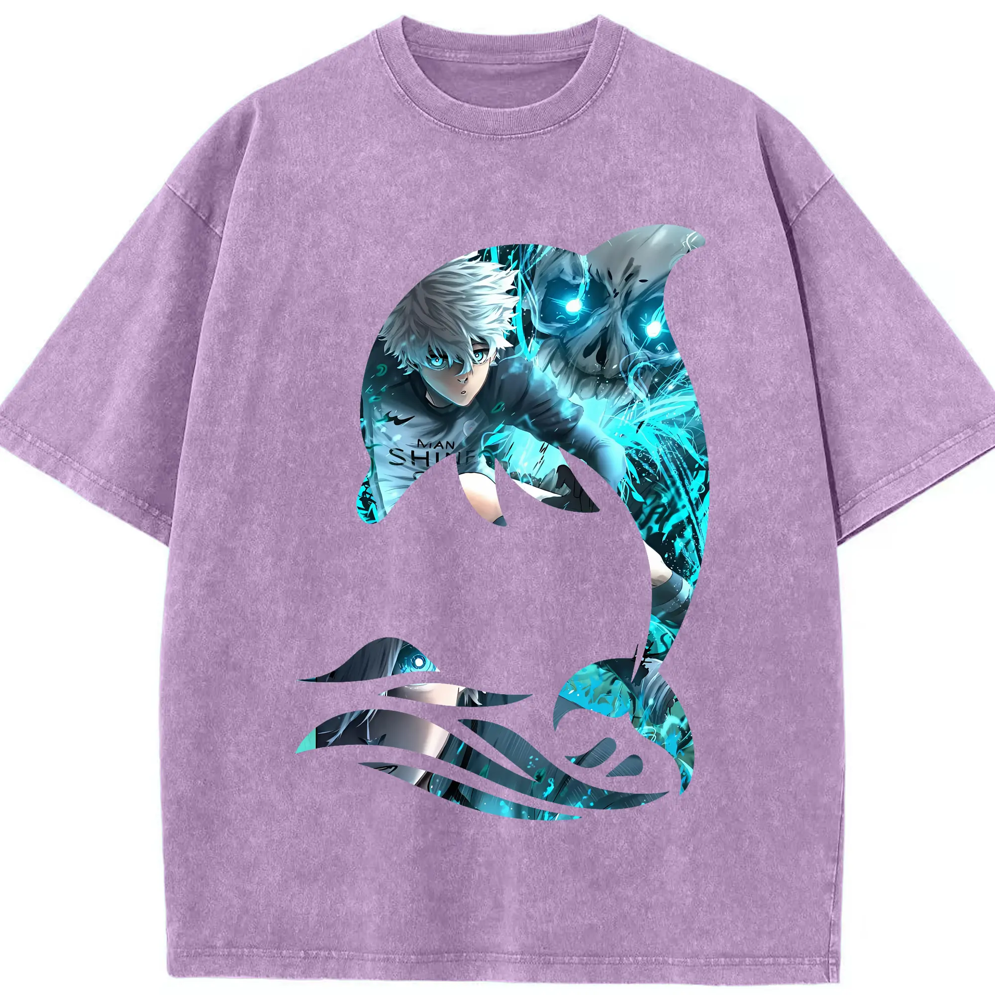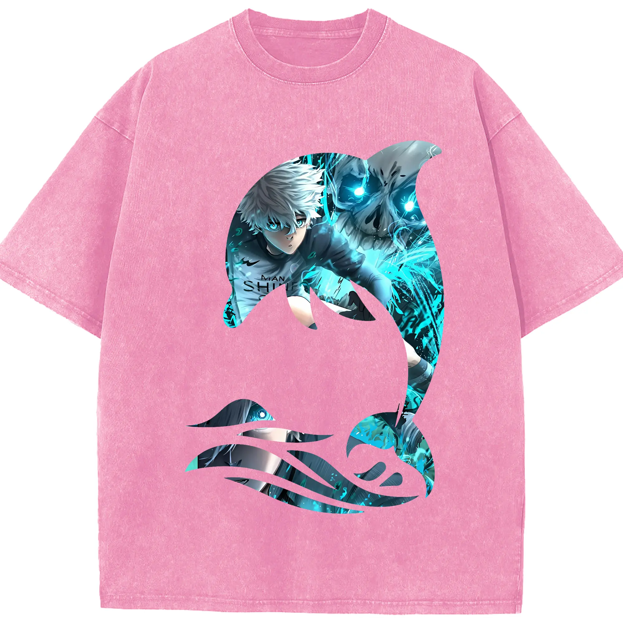 ワンパンマン グッズ ジェノス - 綿100% ヴィンテージ風 半袖Tシャツ ・ フロントプリント ・ 柔らか肌触り ・ 通気性 快適 ・ スポーツ カジュアル 外出用