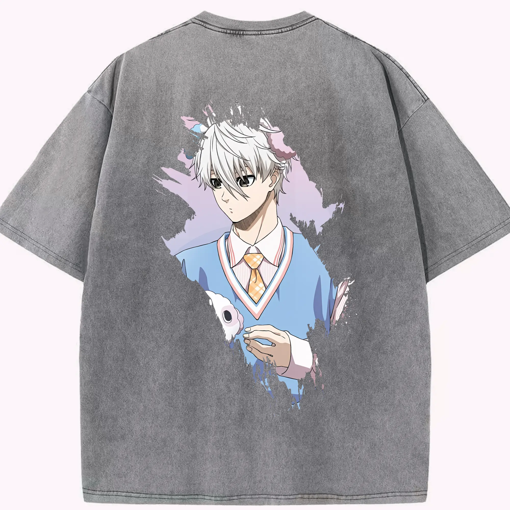 ハンター×ハンター グッズ クロロ=ルシルフル - 綿100% ヴィンテージ風 半袖Tシャツ ・ 背面プリント ・ 柔らか肌触り ・ 通気性 快適 ・ スポーツ カジュアル 外出用