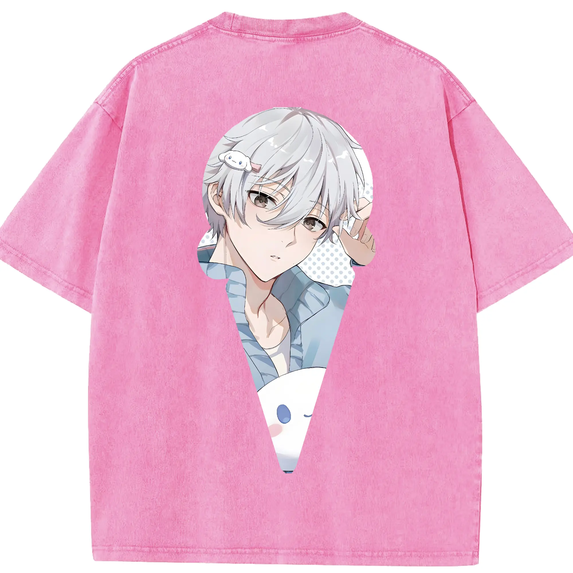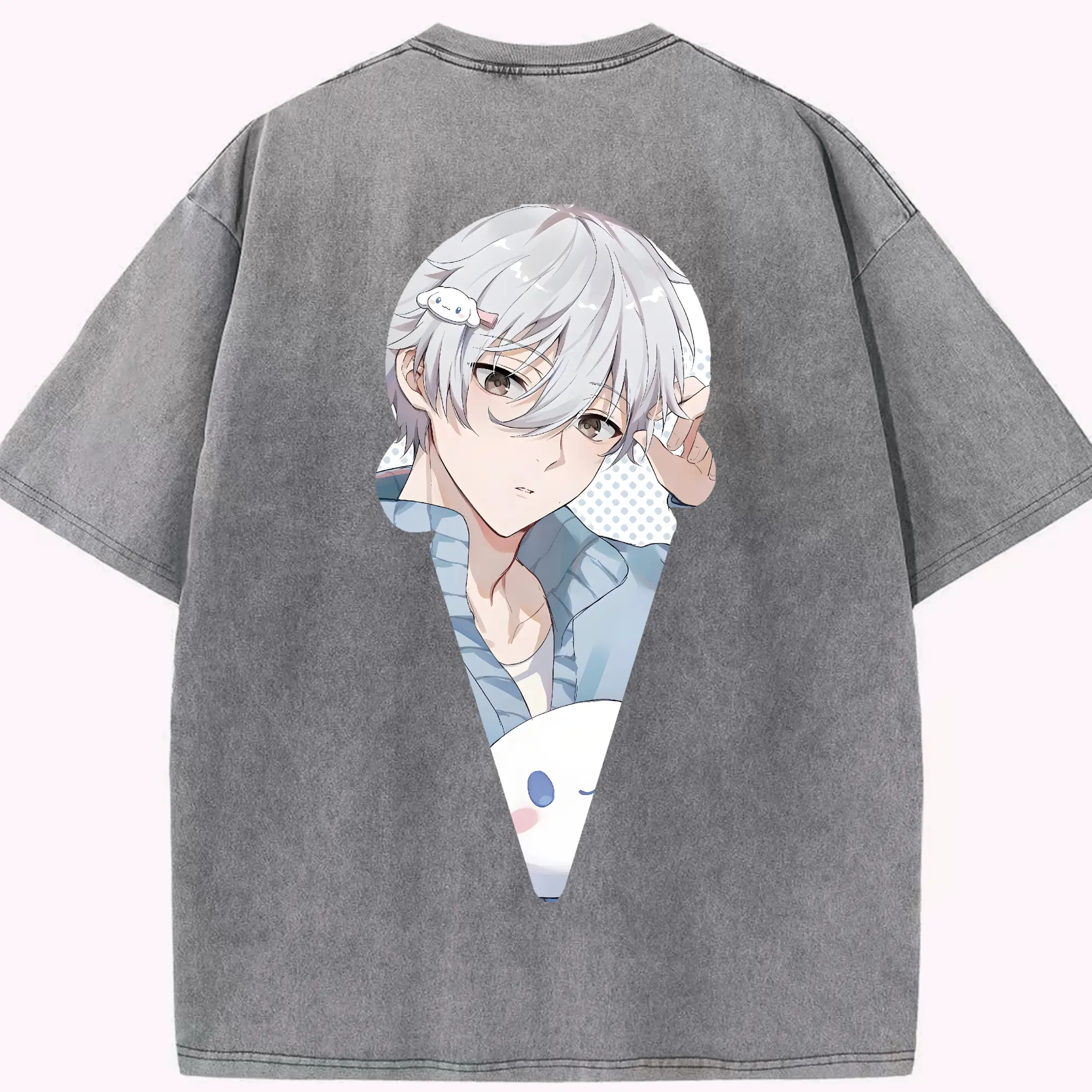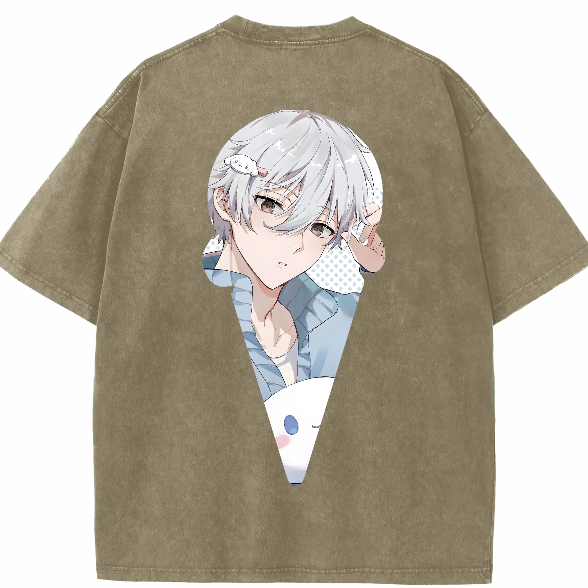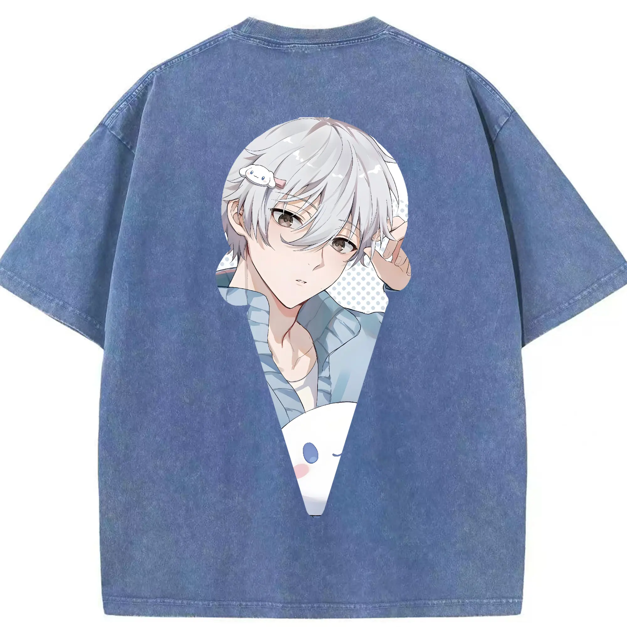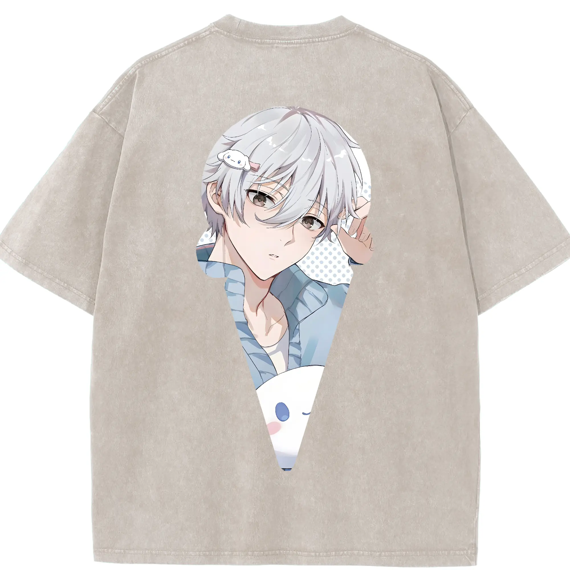 ちい が わ グッズ うさぎ - 綿100% ヴィンテージ風 半袖Tシャツ ・ 背面プリント ・ 柔らか肌触り ・ 通気性 快適 ・ スポーツ カジュアル 外出用