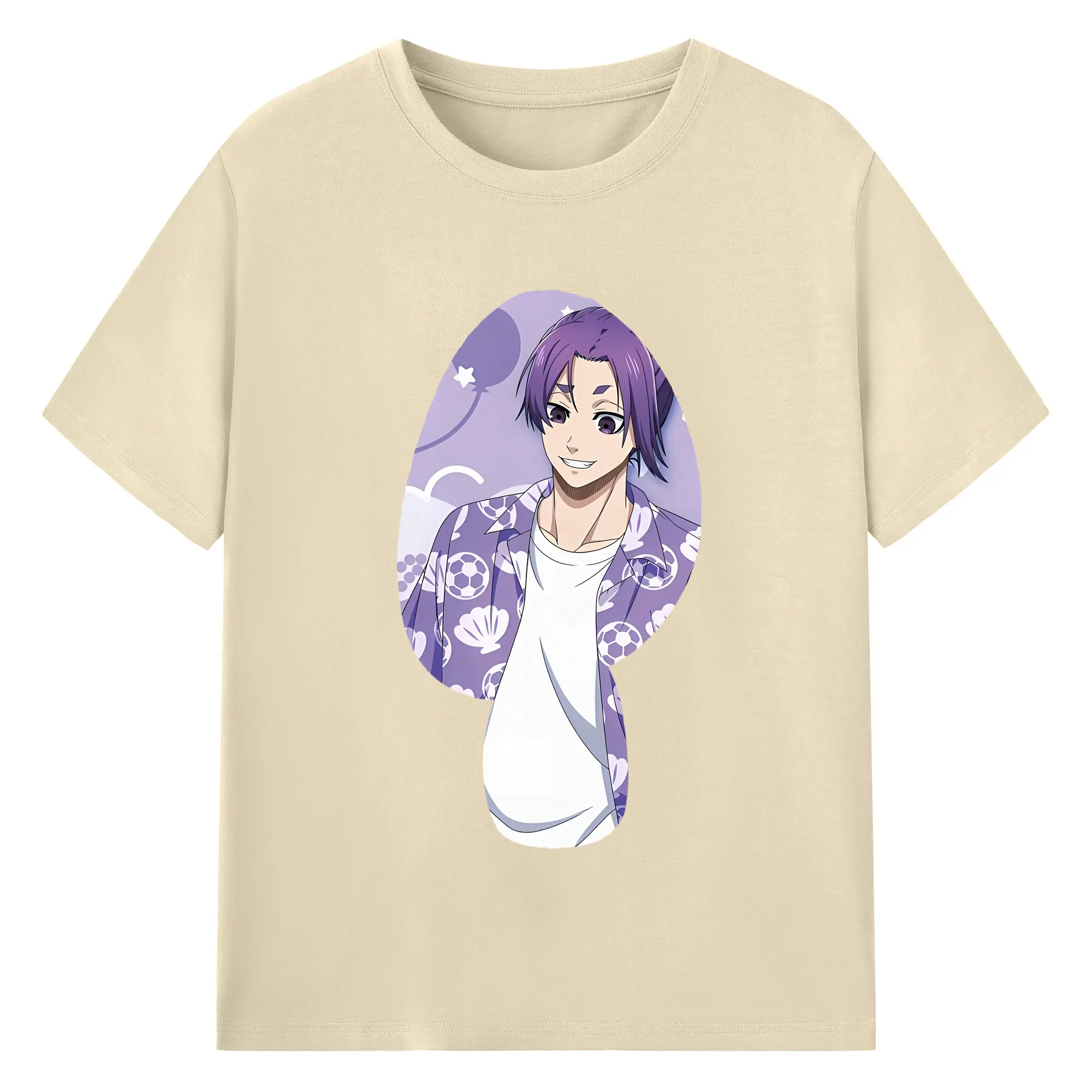 ブルーロック グッズ 御影 玲王 - 綿100% ヴィンテージ風 半袖Tシャツ ・ 背面プリント ・ 柔らか肌触り ・ 通気性 快適 ・ スポーツ カジュアル 外出用