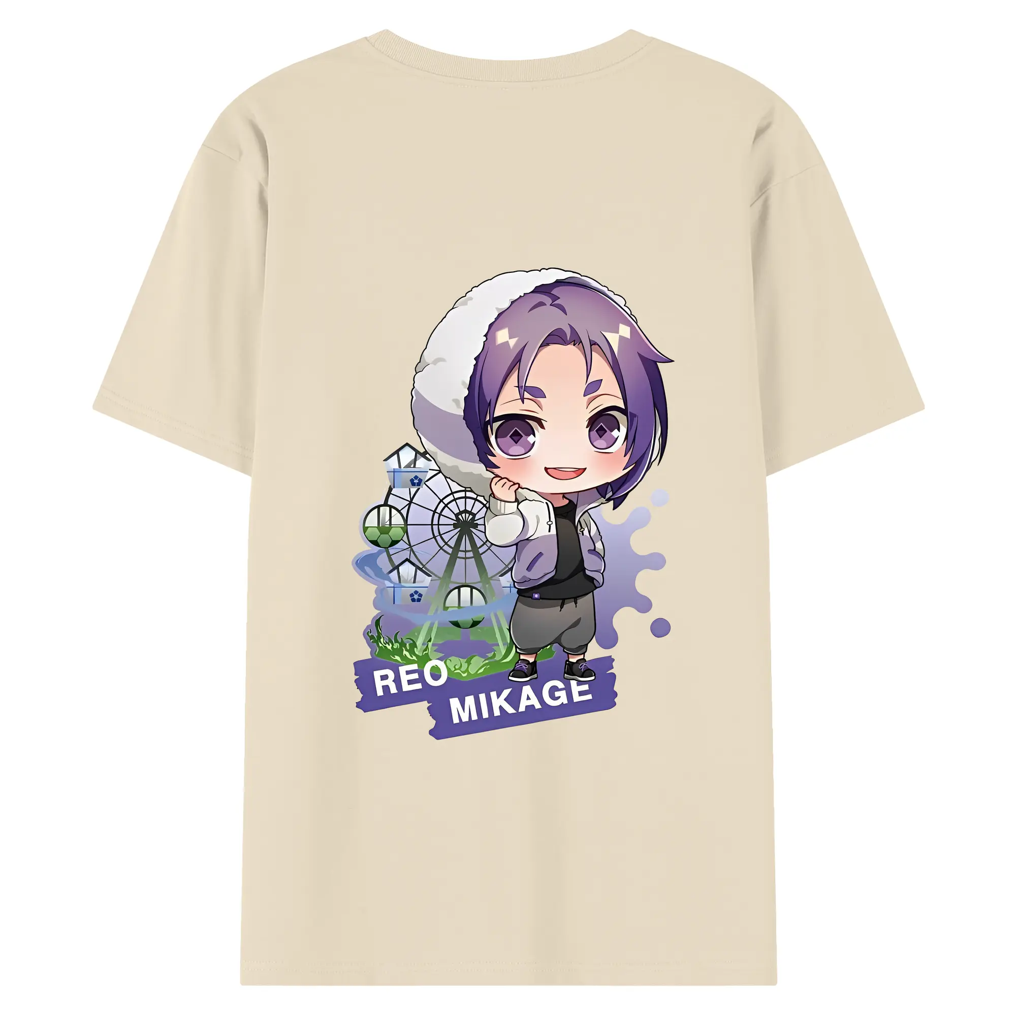ブルーロック グッズ 御影 玲王 - 綿100% ヴィンテージ風 半袖Tシャツ ・ 背面プリント ・ 柔らか肌触り ・ 通気性 快適 ・ スポーツ カジュアル 外出用