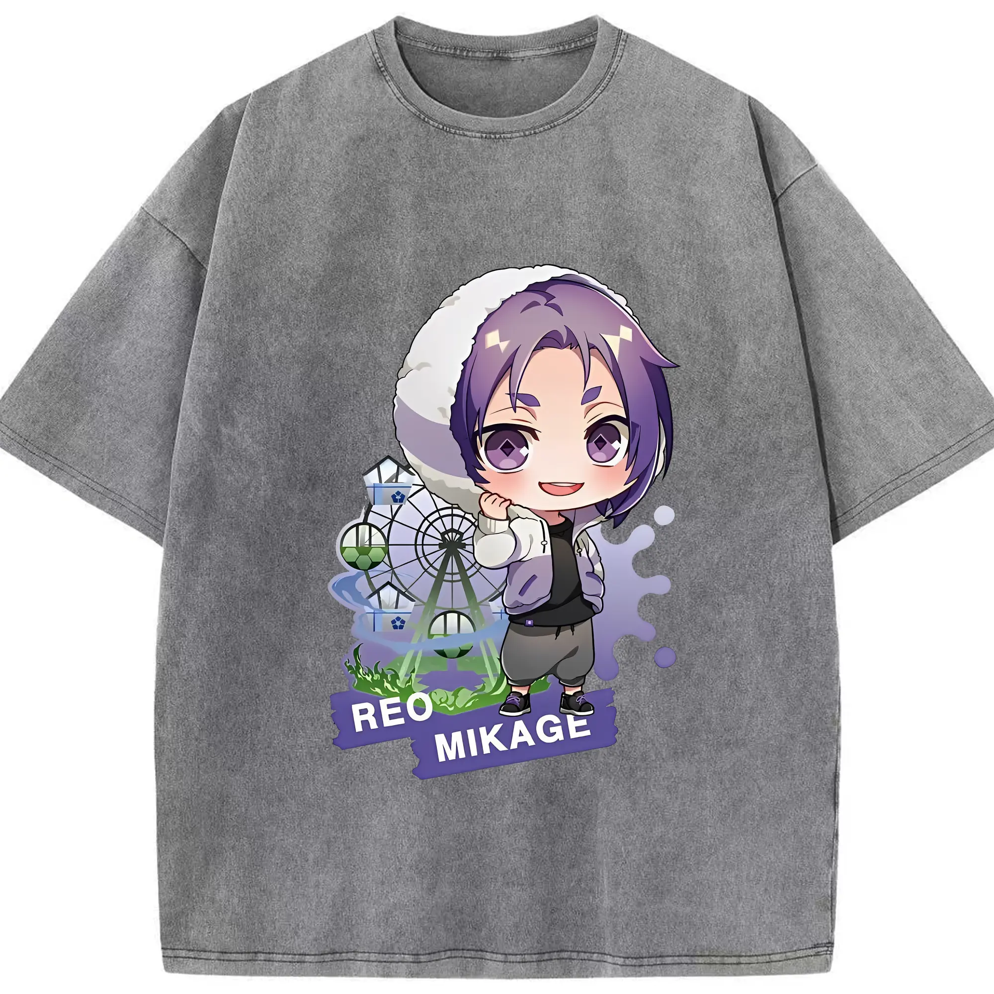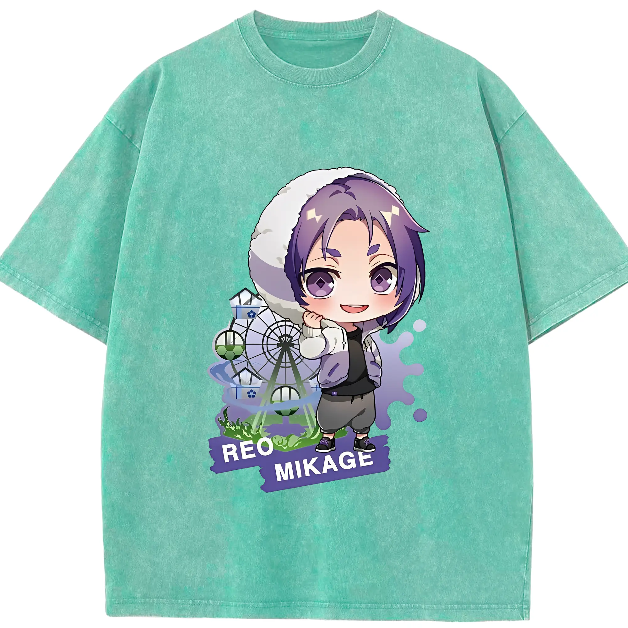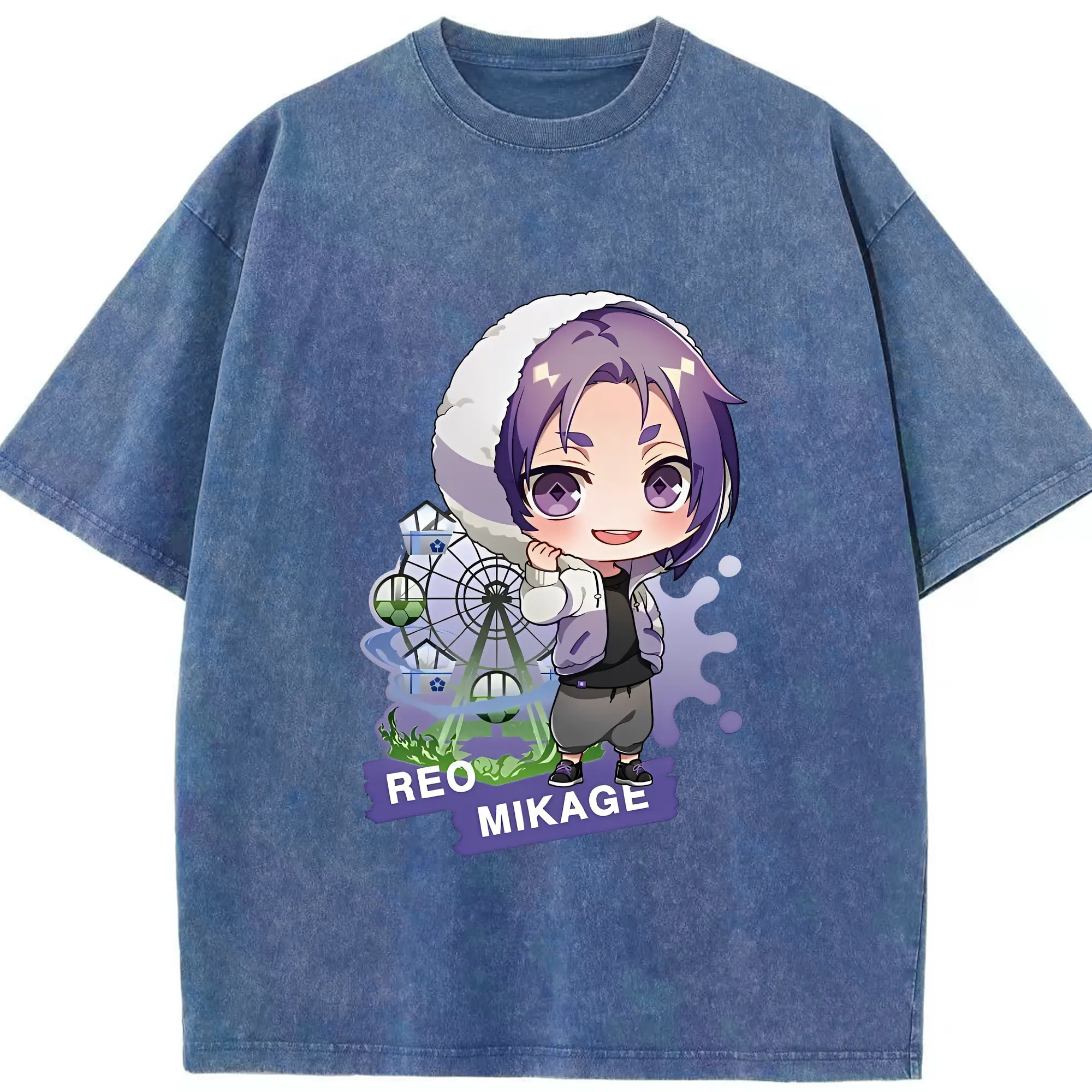 ブルーロック グッズ 御影 玲王 - 綿100% ヴィンテージ風 半袖Tシャツ ・ 背面プリント ・ 柔らか肌触り ・ 通気性 快適 ・ スポーツ カジュアル 外出用