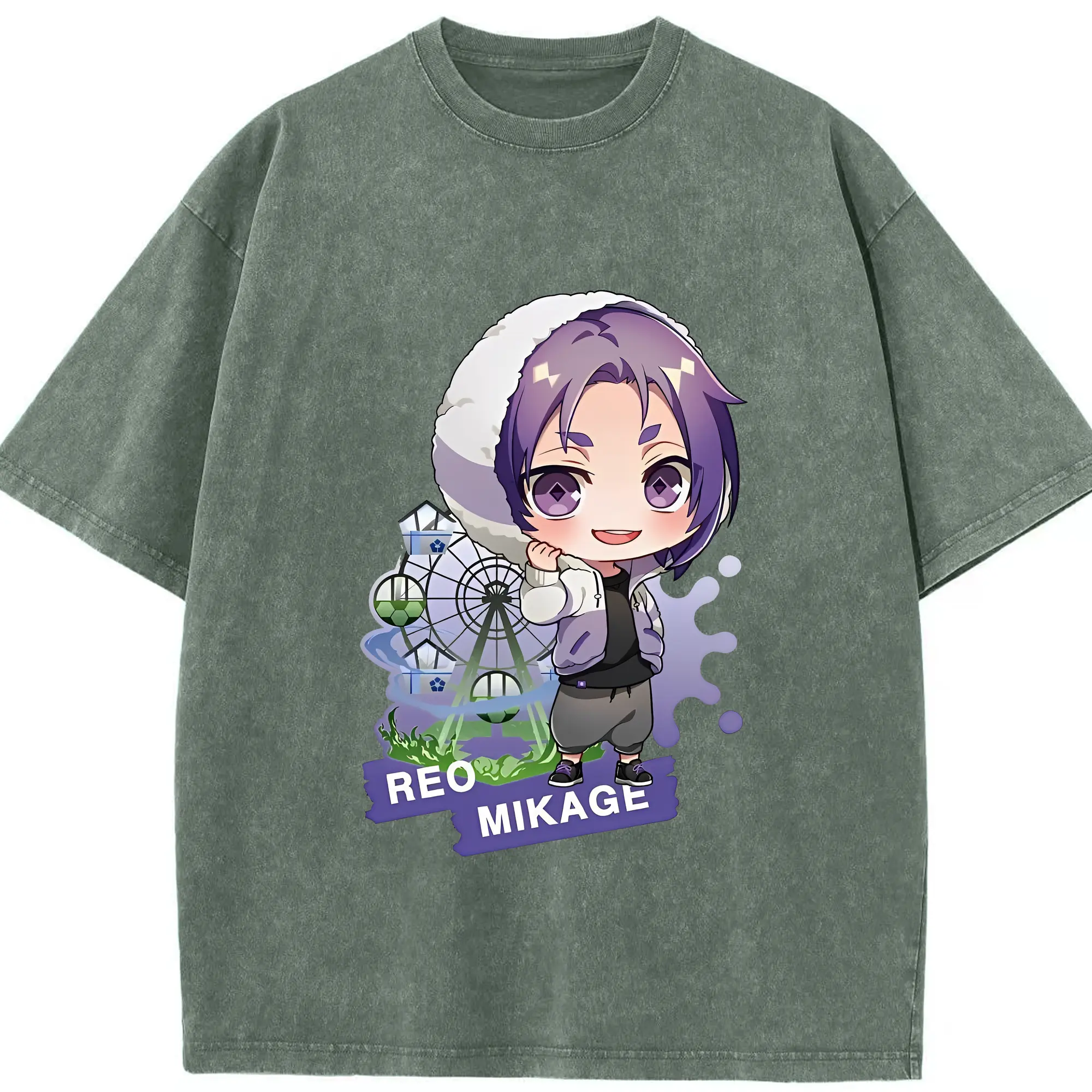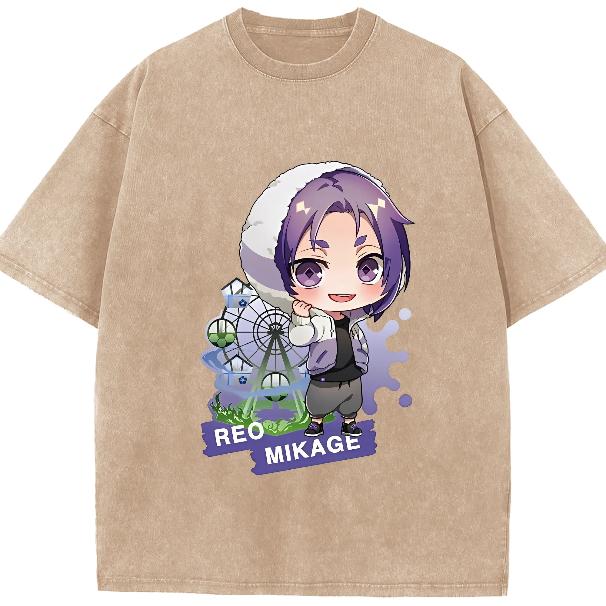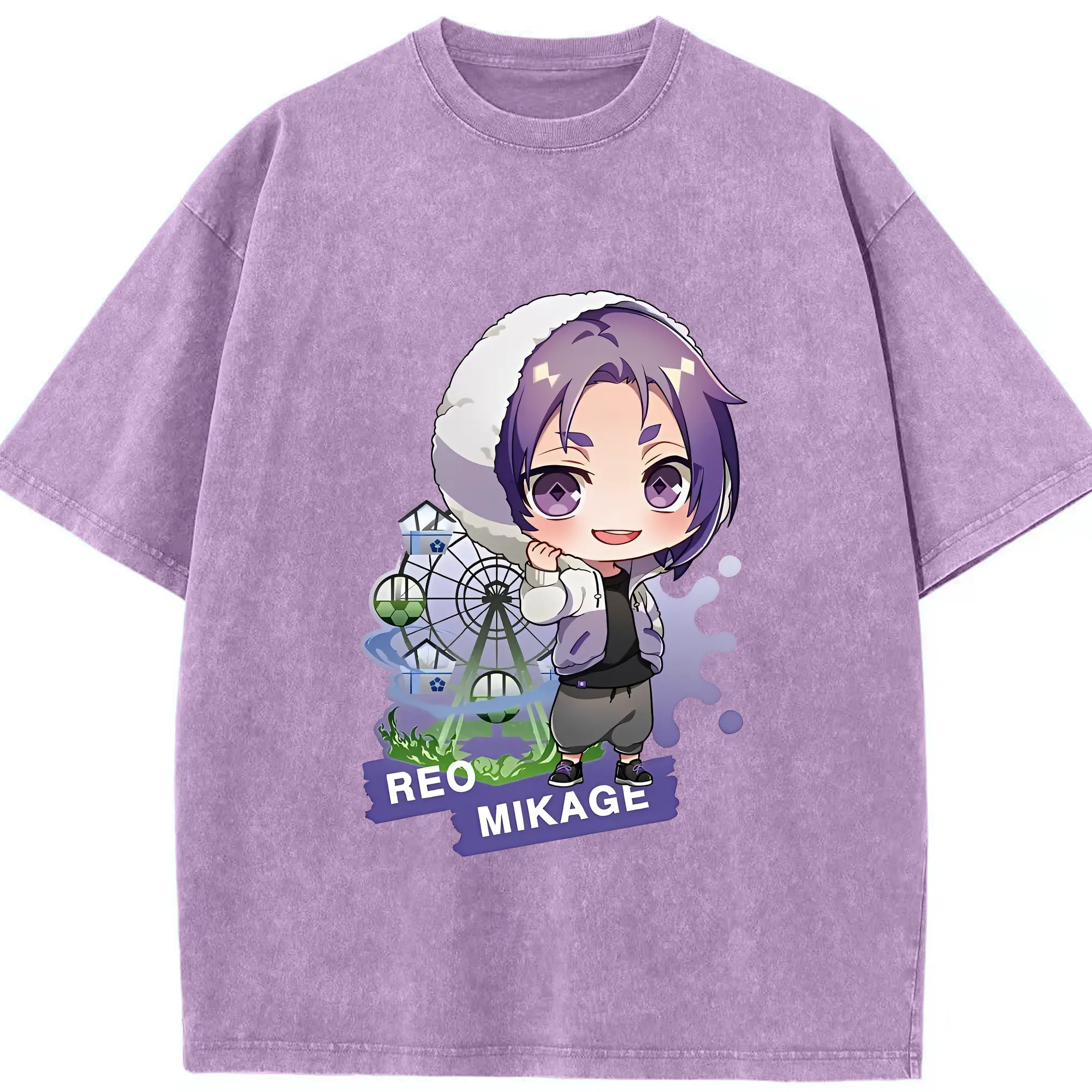 ブルーロック グッズ 御影 玲王 - 綿100% ヴィンテージ風 半袖Tシャツ ・ 背面プリント ・ 柔らか肌触り ・ 通気性 快適 ・ スポーツ カジュアル 外出用