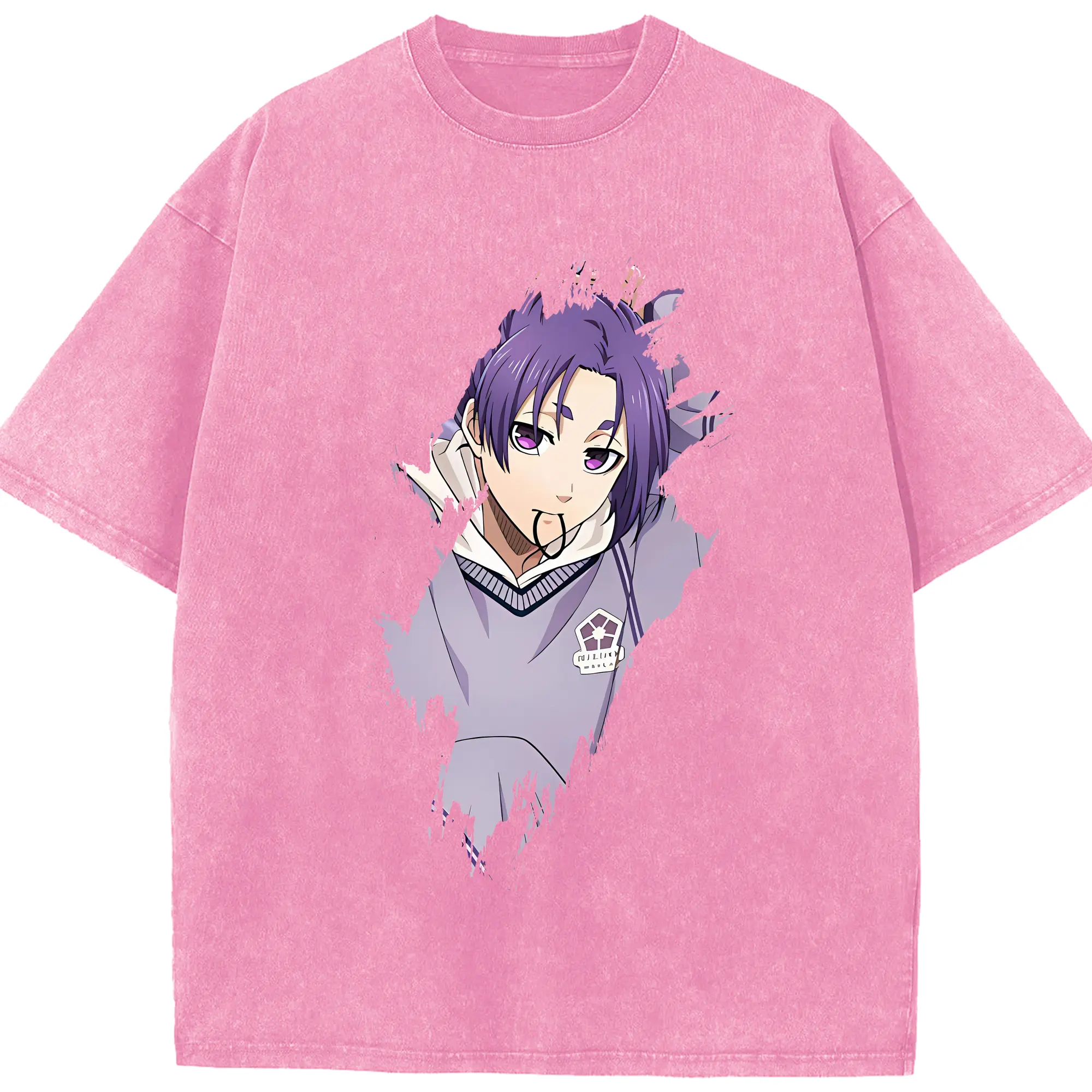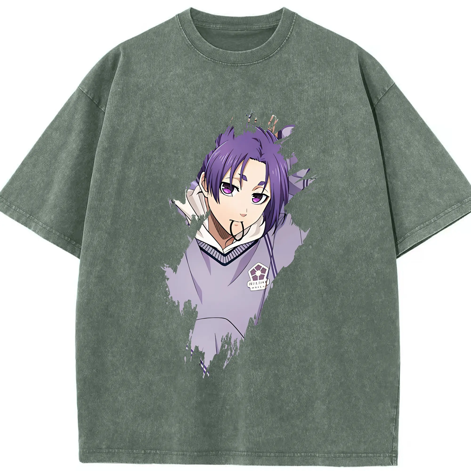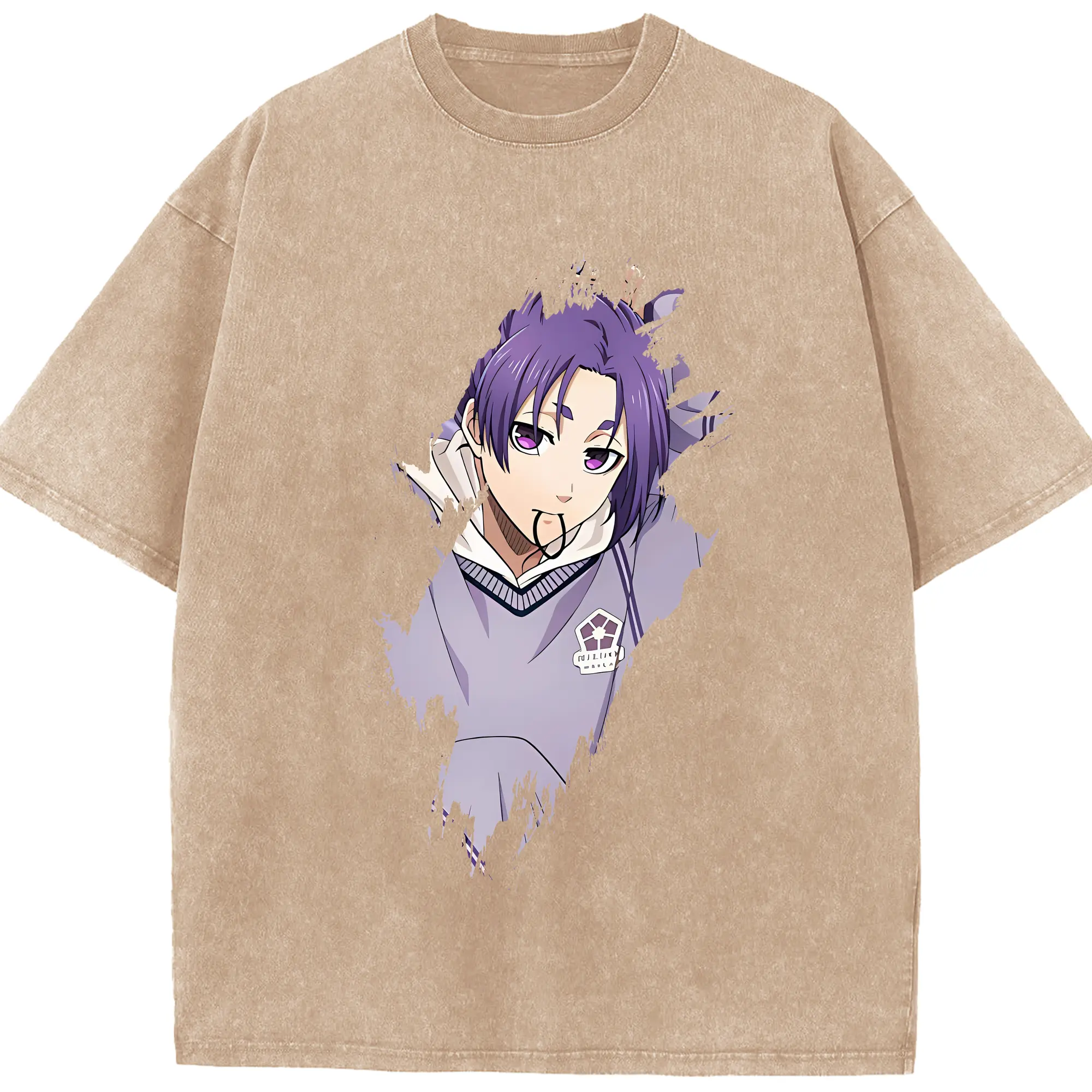 ブルーロック グッズ 御影 玲王 - 綿100% ヴィンテージ風 半袖Tシャツ ・ 背面プリント ・ 柔らか肌触り ・ 通気性 快適 ・ スポーツ カジュアル 外出用