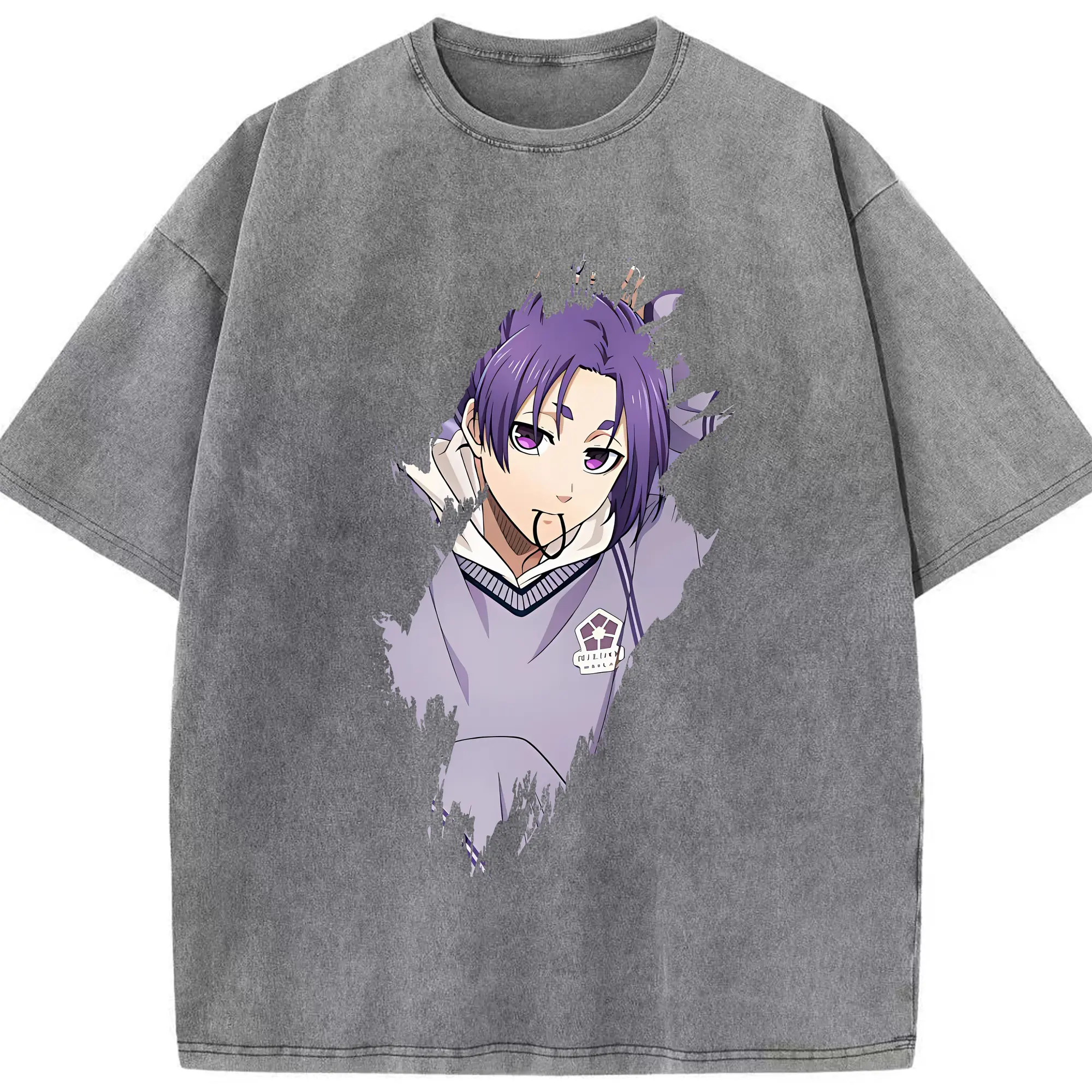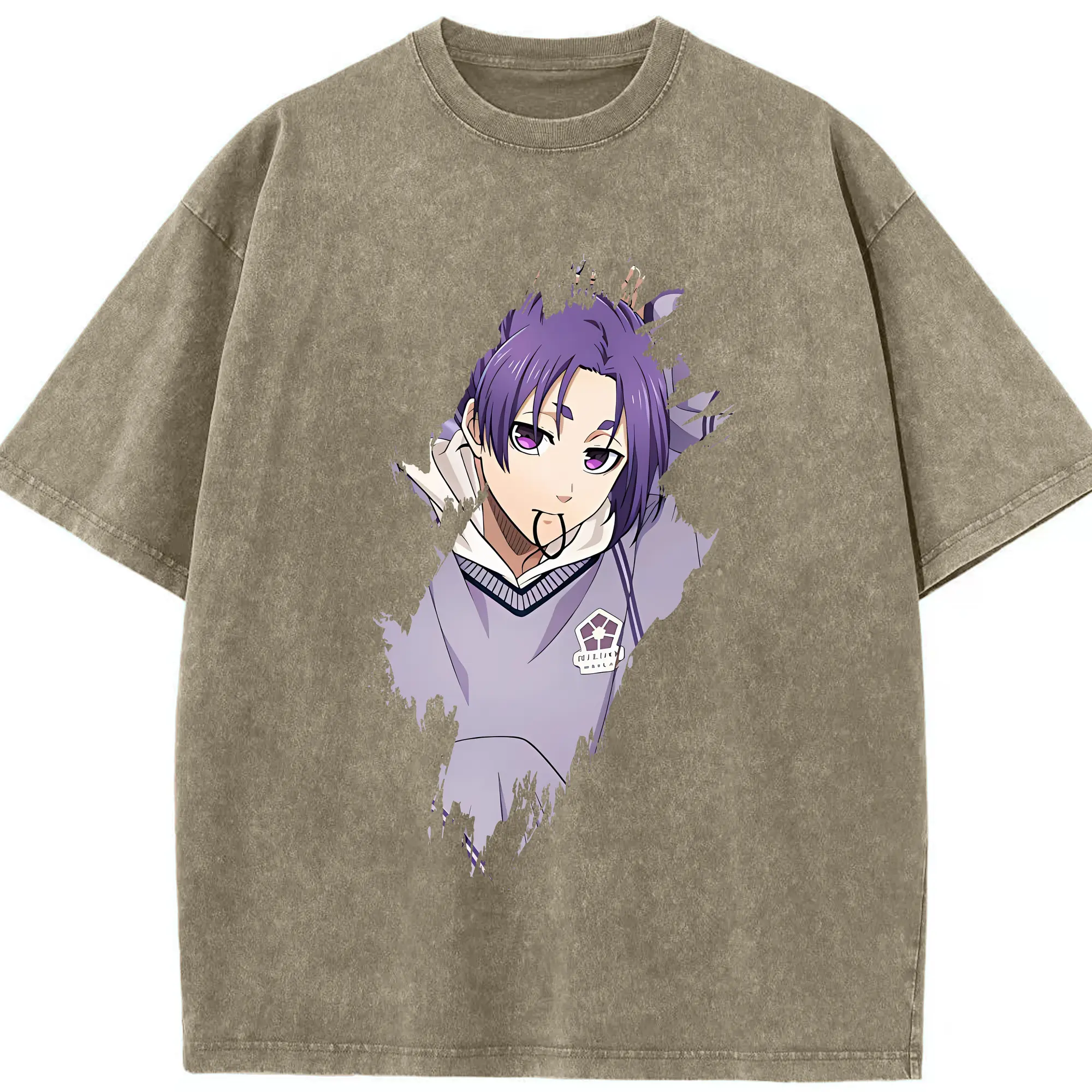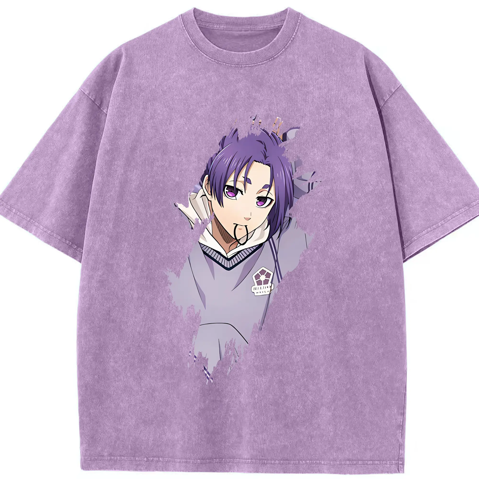 ブルーロック グッズ 御影 玲王 - 綿100% ヴィンテージ風 半袖Tシャツ ・ 背面プリント ・ 柔らか肌触り ・ 通気性 快適 ・ スポーツ カジュアル 外出用