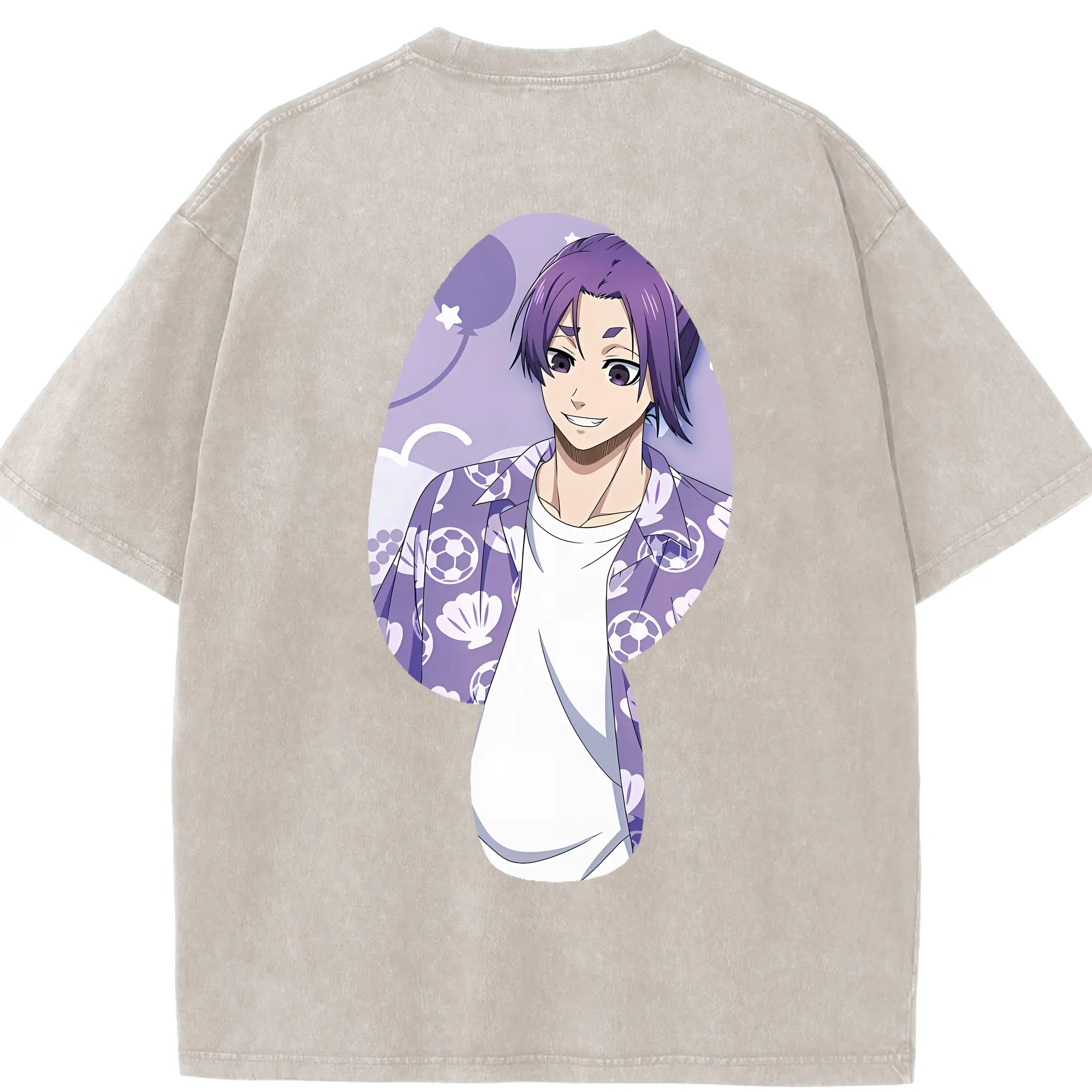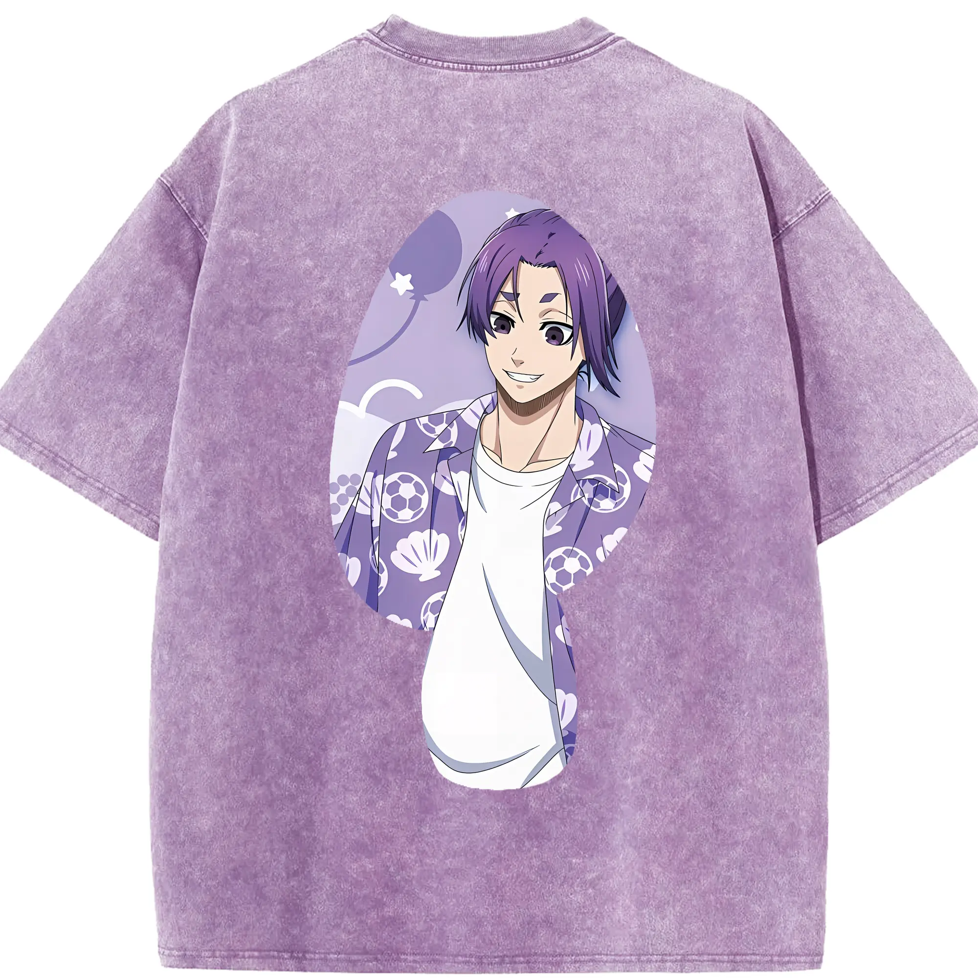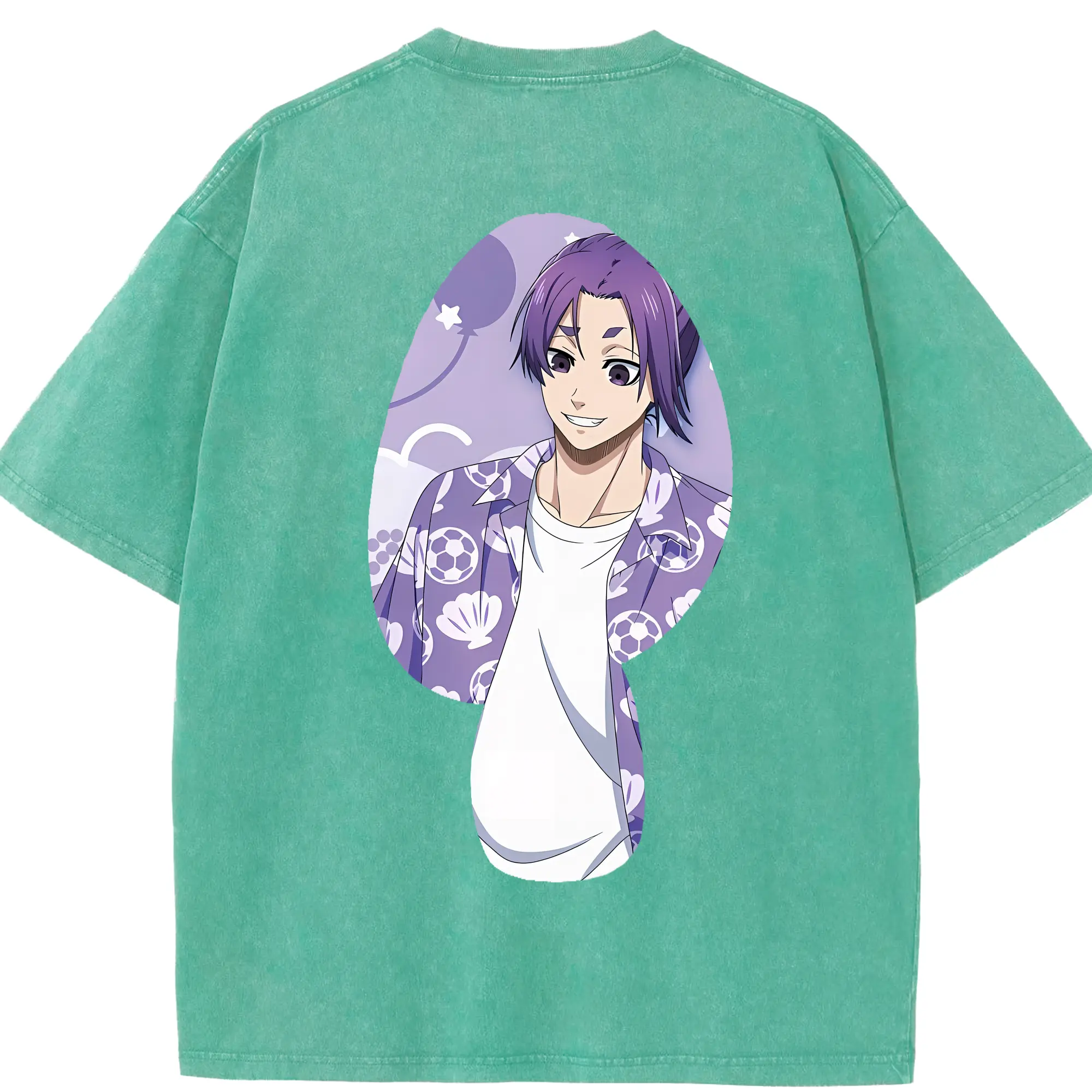 ブルーロック グッズ 御影 玲王 - 綿100% ヴィンテージ風 半袖Tシャツ ・ フロントプリント ・ 柔らか肌触り ・ 通気性 快適 ・ スポーツ カジュアル 外出用