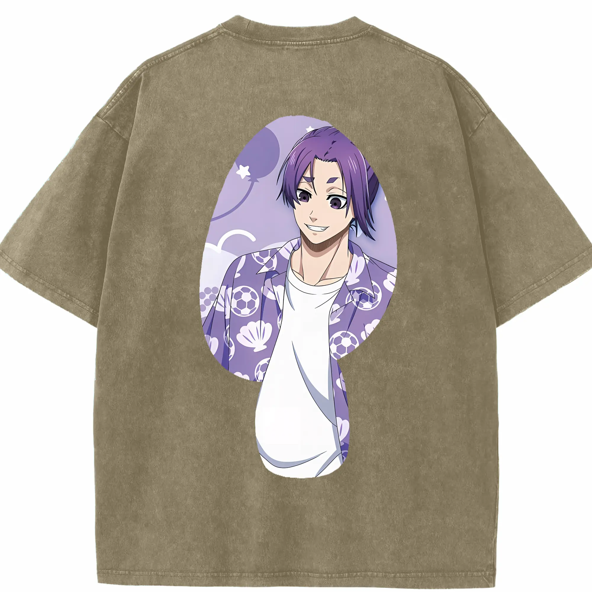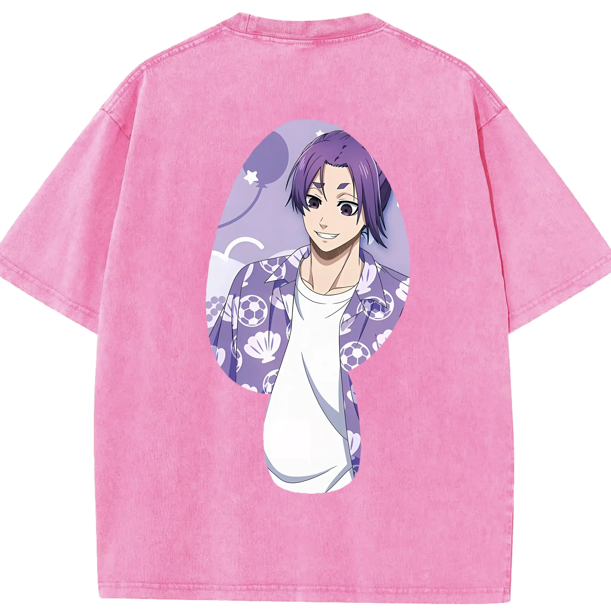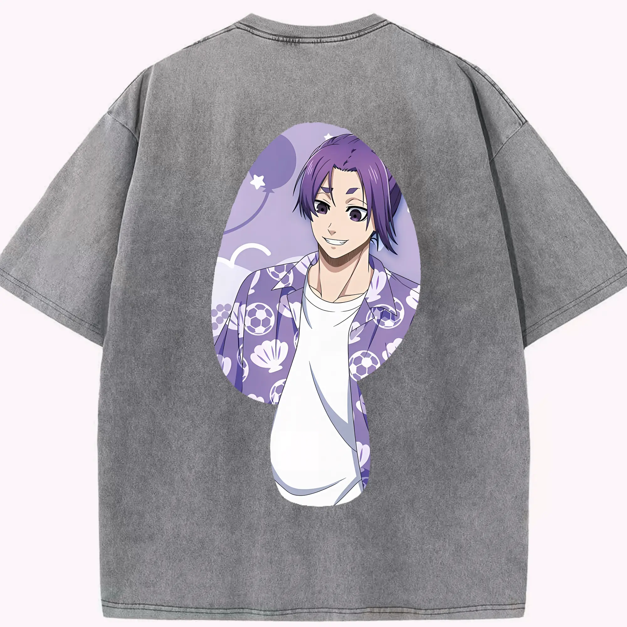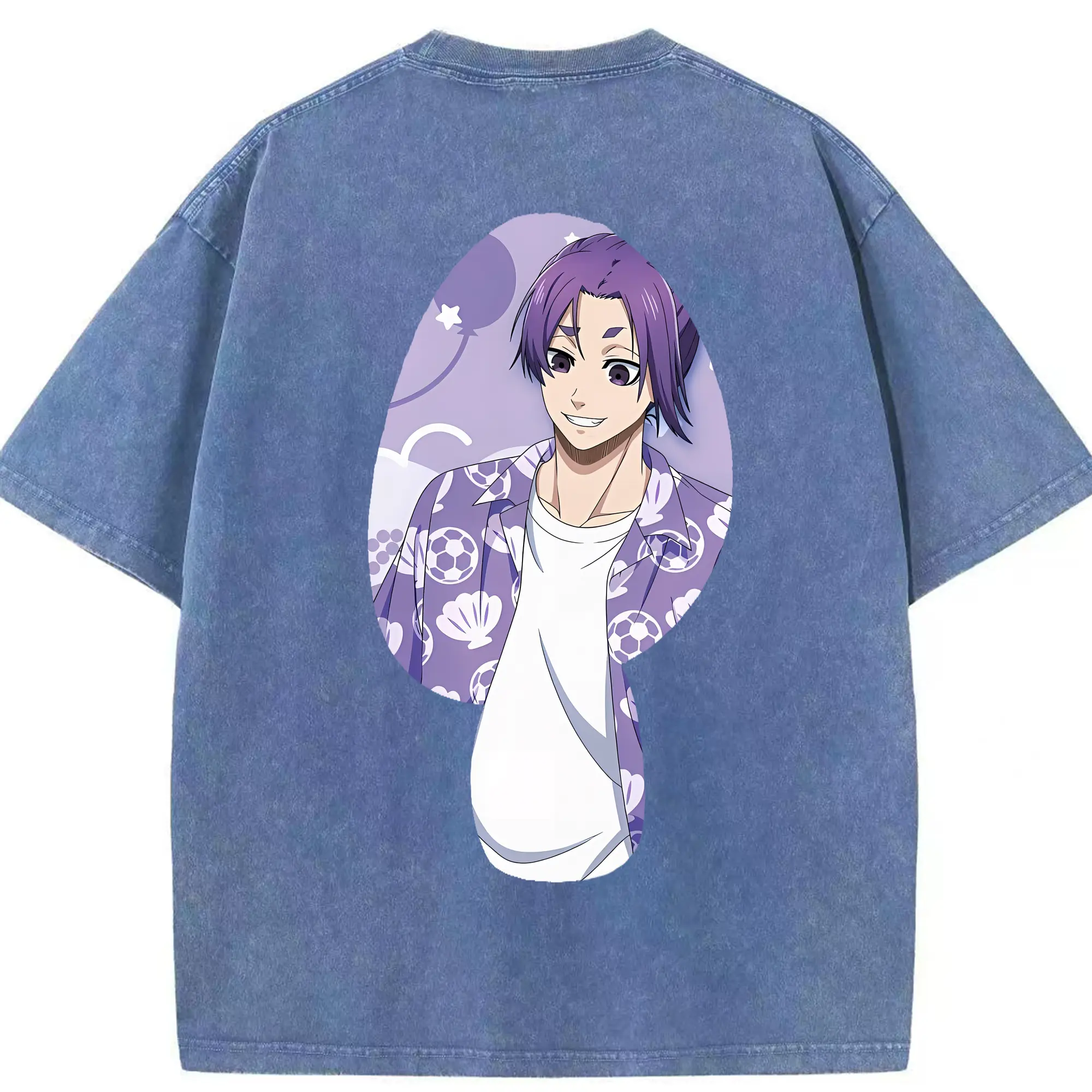 ブルーロック グッズ 御影 玲王 - 綿100% ヴィンテージ風 半袖Tシャツ ・ フロントプリント ・ 柔らか肌触り ・ 通気性 快適 ・ スポーツ カジュアル 外出用